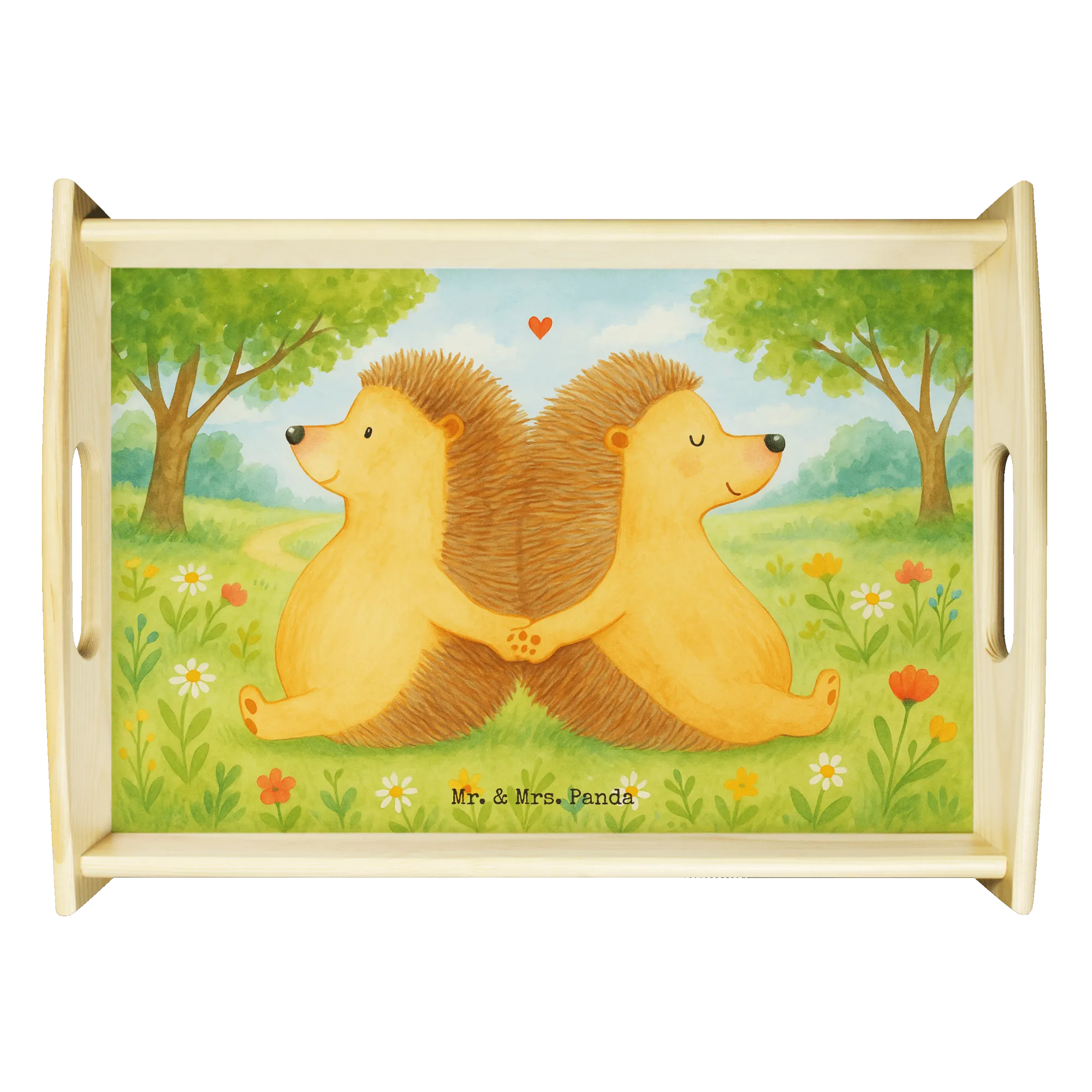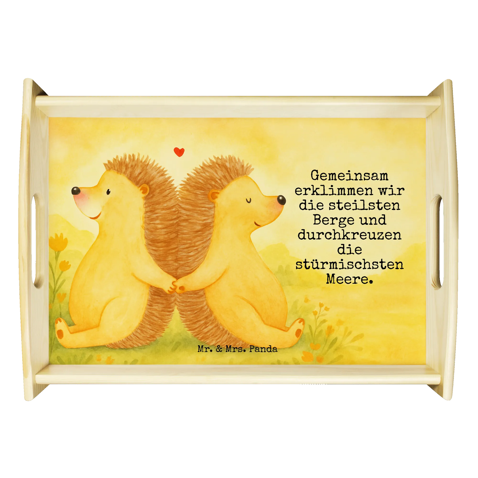 tablett aus holz Igel händchenhaltend Design - mit Spruch