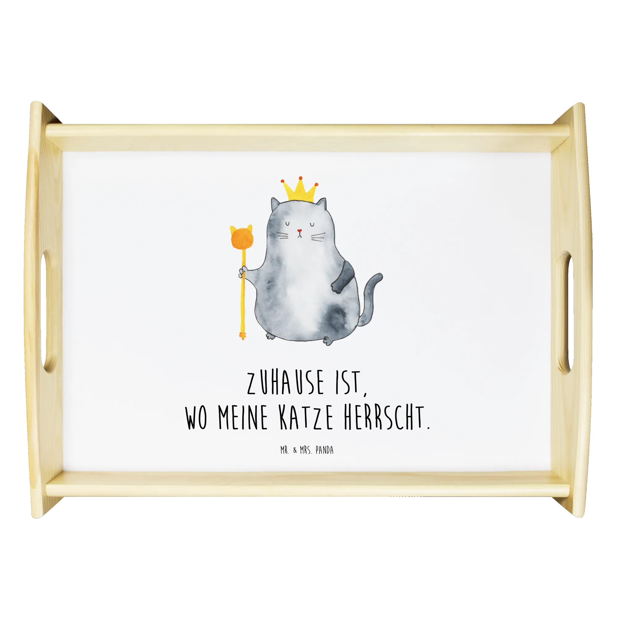 Entdecke das wunderschöne Serviertablett mit dem Katzen König Motiv von Mr. & Mrs. Panda! Dieses einzigartige Holztablett ist der perfekte Begleiter für dein Frühstück im Bett oder eine gemütliche Snackrunde auf dem Sofa. Mit seinen seitlichen Griffmulden liegt es angenehm in der Hand und sorgt dafür, dass du alles sicher transportieren kannst.