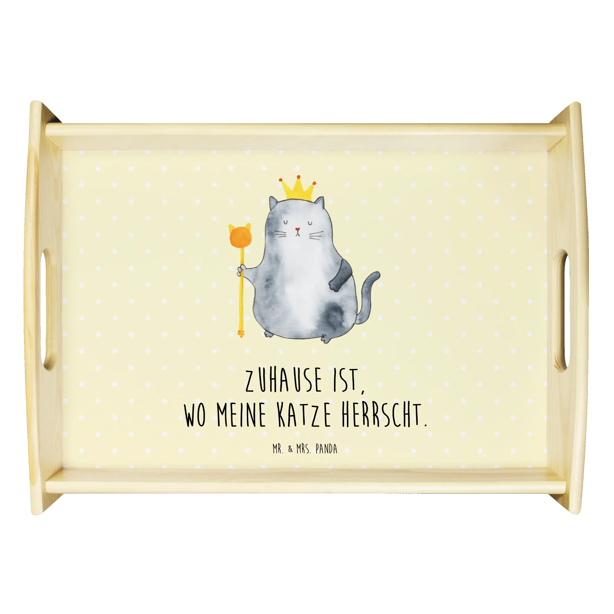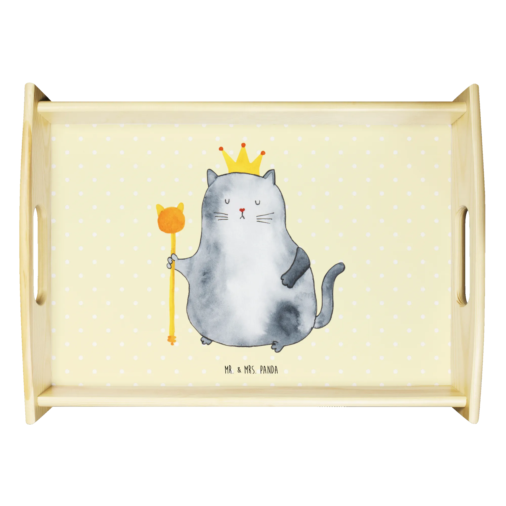 Deko Tablett Katze König - mit Spruch - Gelb Pastell