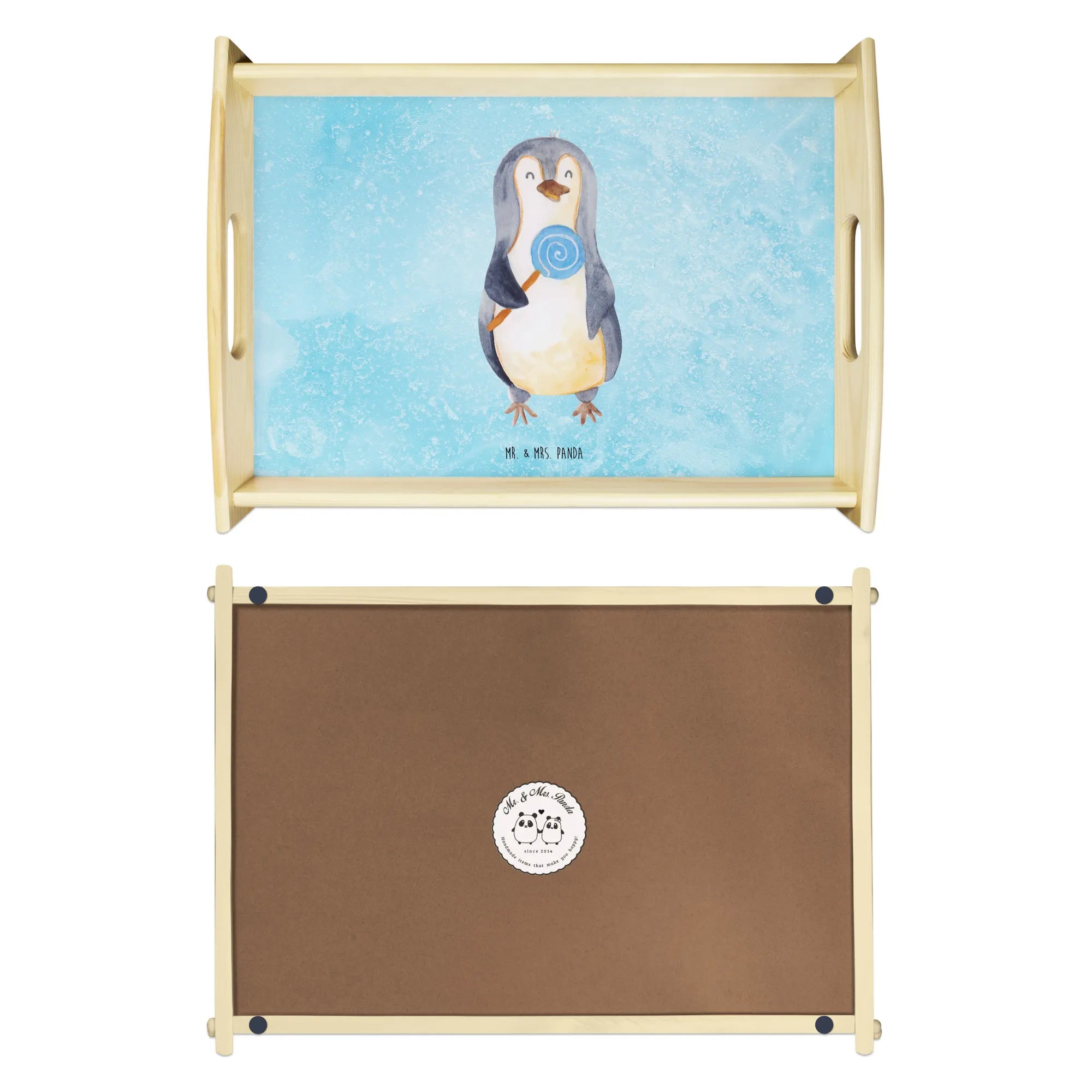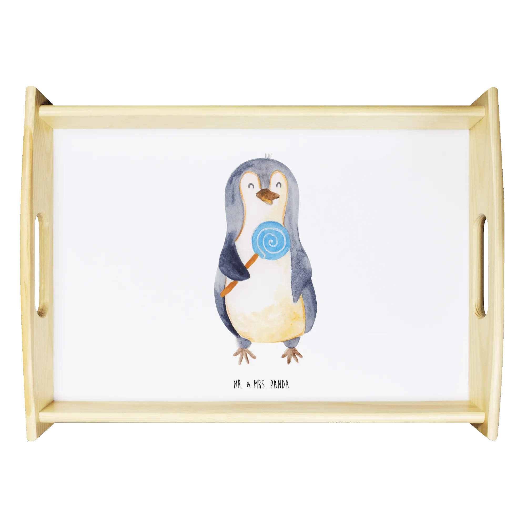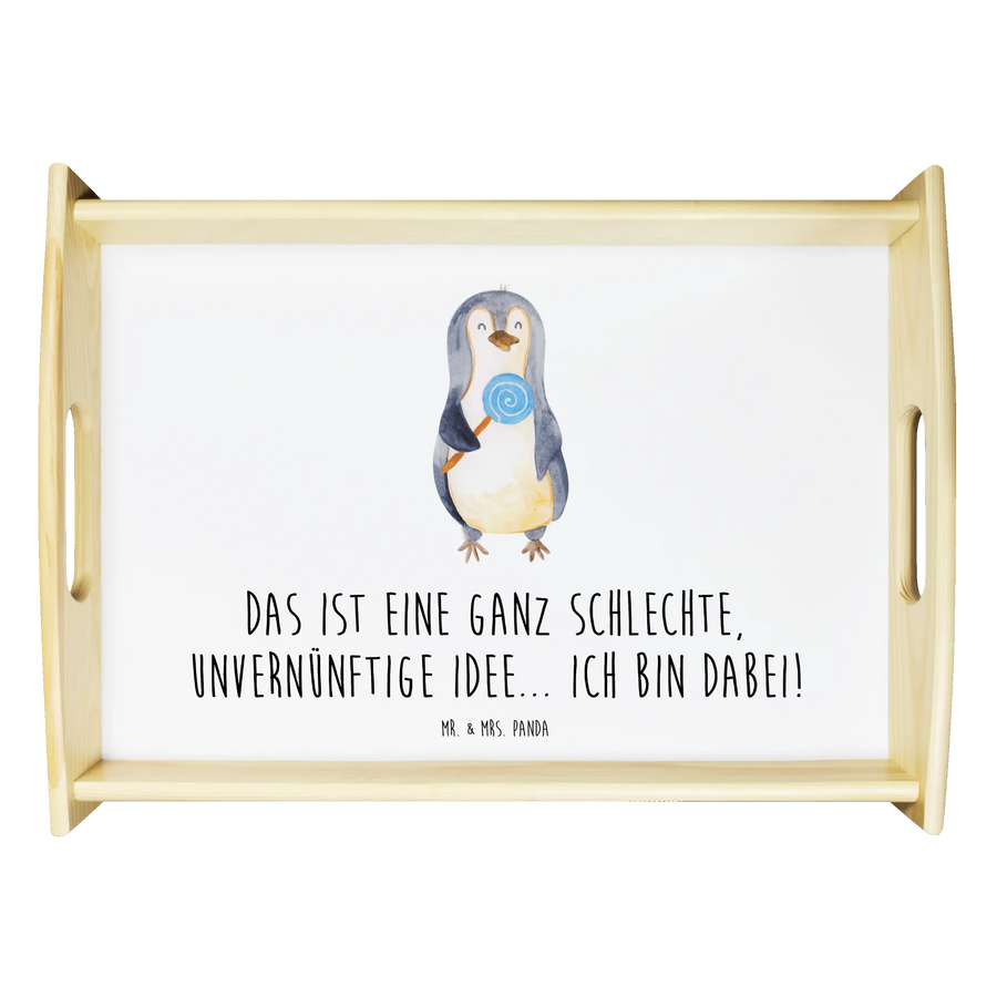 Entdecke das charmante Serviertablett mit dem süßen Pinguin Lolli-Motiv aus der bezaubernden Pinguin-Kollektion von Mr. & Mrs. Panda! Dieses wunderschöne und einzigartige Serviertablett aus lasiertem Echtholz überzeugt nicht nur durch seine lieben Designs, sondern ist auch äußerst praktisch.