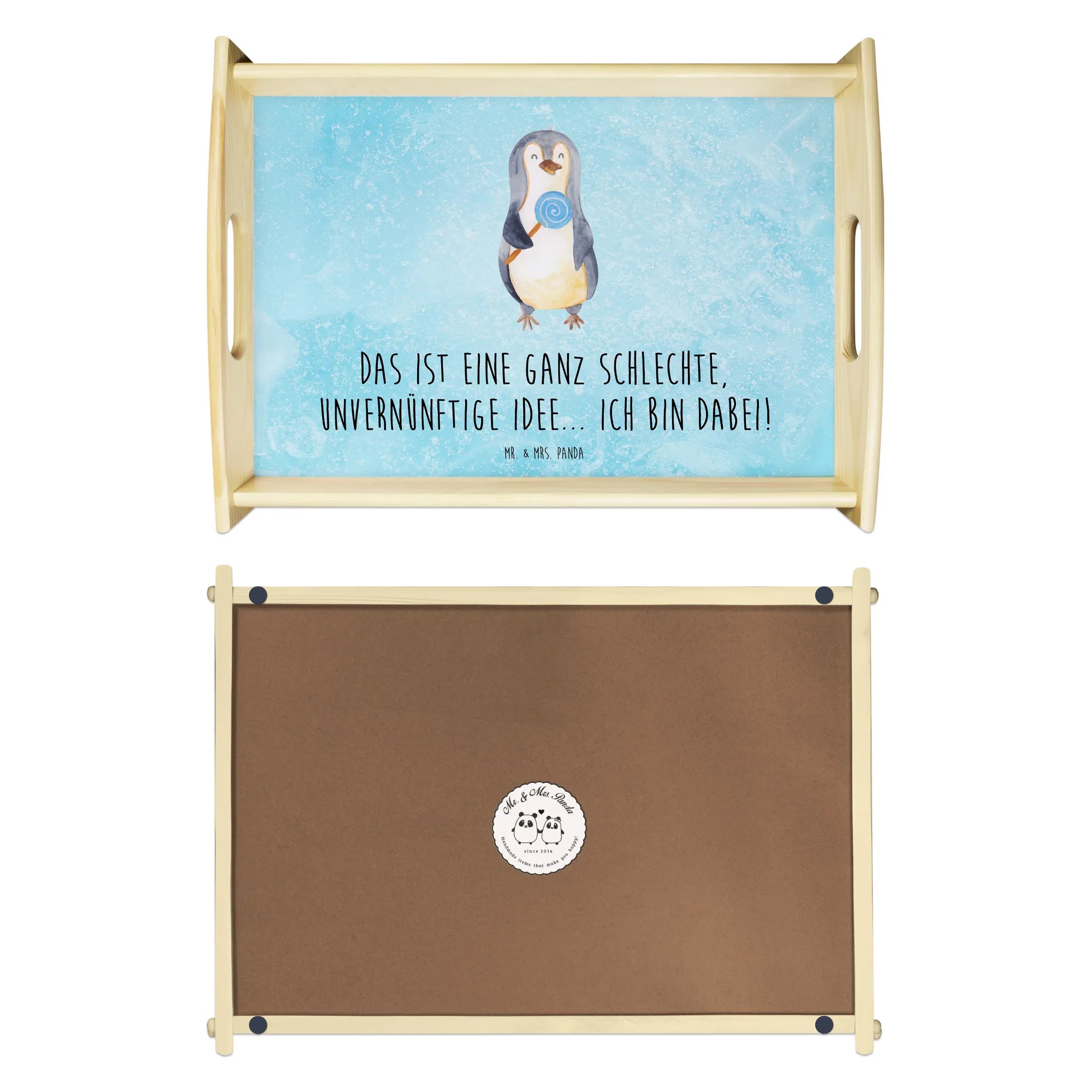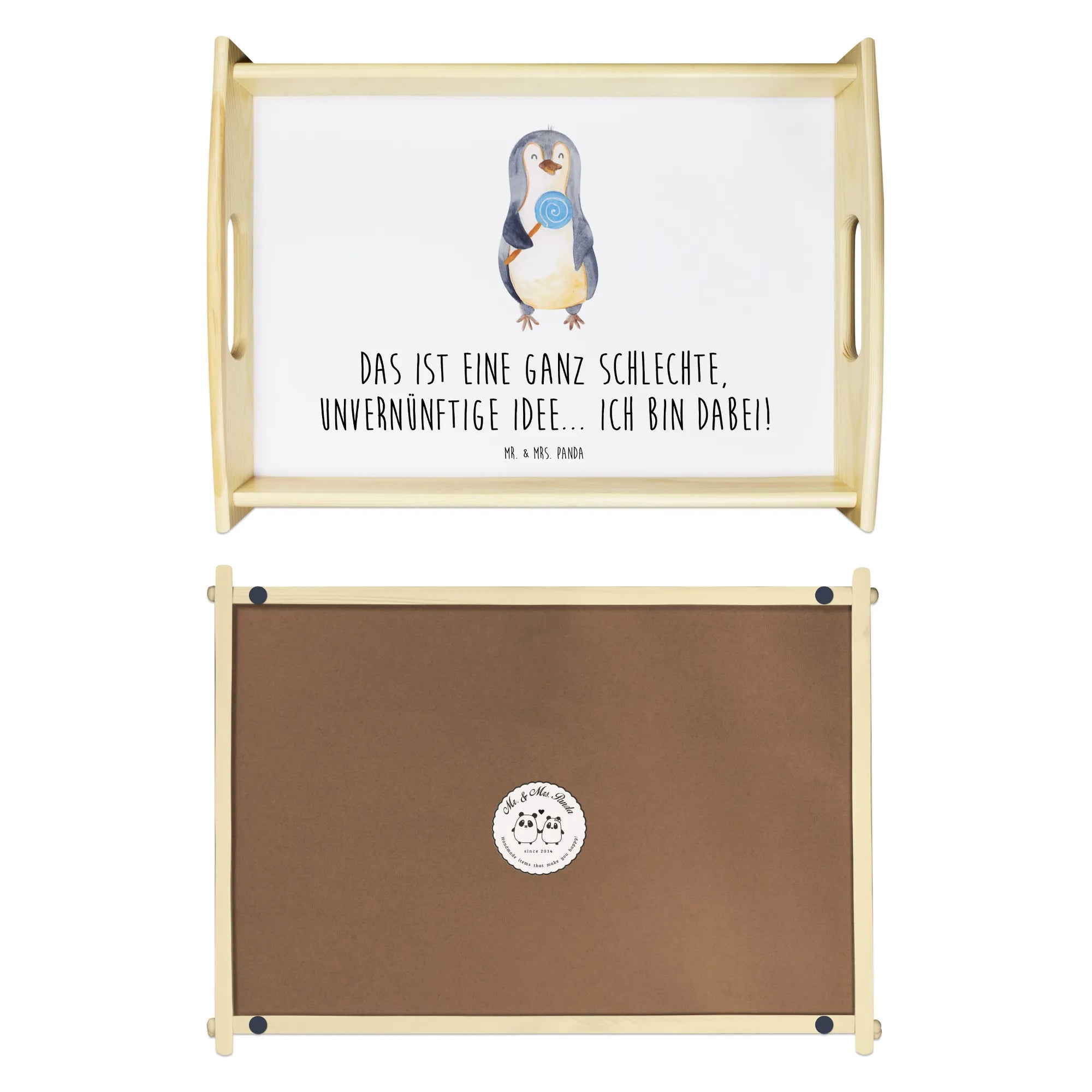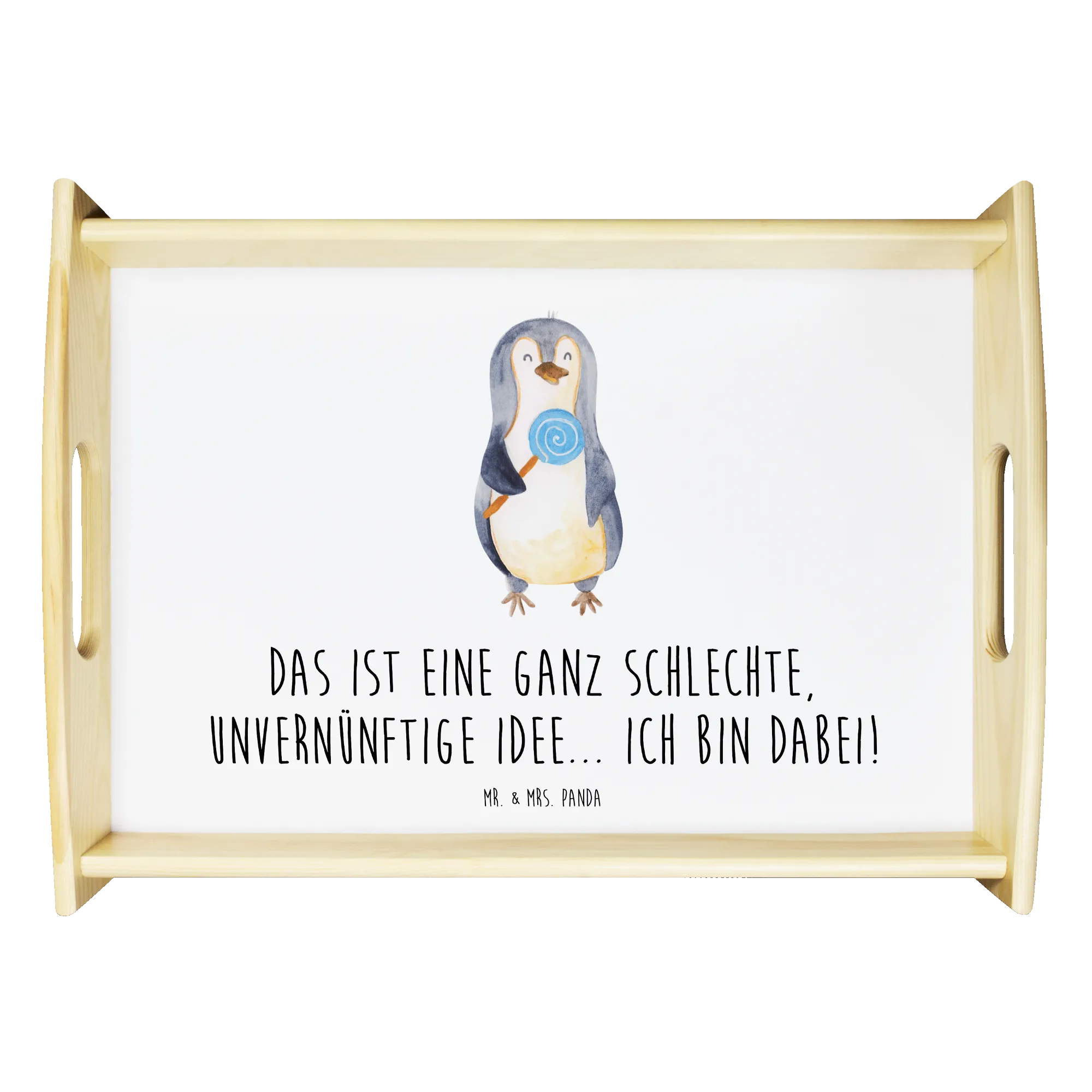 Entdecke das charmante Serviertablett mit dem süßen Pinguin Lolli-Motiv aus der bezaubernden Pinguin-Kollektion von Mr. & Mrs. Panda! Dieses wunderschöne und einzigartige Serviertablett aus lasiertem Echtholz überzeugt nicht nur durch seine lieben Designs, sondern ist auch äußerst praktisch.