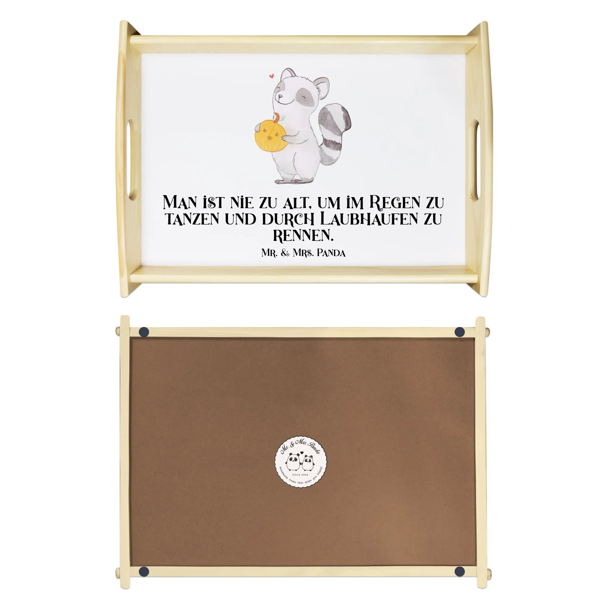 Das einzigartige Serviertablett von Mr. & Mrs. Panda wird dein Frühstücksbuffet zum Erlebnis machen! Mit seinen großzügigen Maßen von 480 mm x 480 mm x 65 mm und einem Gewicht von 925 g ist es die perfekte Kombination aus Funktionalität und Stil. Aus hochwertigem, lasiertem Echtholz gefertigt, verzückt das Tablett mit einem strahlenden Druck, der für gute Laune sorgt. Ob im Bett oder auf dem Sofa, die seitlichen Griffmulden garantieren ein angenehmes Handling. Die spezielle Anti-Rutsch Beschichtung sorgt dafür, dass alles sicher an seinem Platz bleibt. Dank der kratzfesten Oberfläche ist das Tablett sehr pflegeleicht – einfach mit einem feuchten Tuch und etwas Spülmittel abwischen. Bitte nicht einweichen! Denke daran, dass die Anfertigung wegen der hohen Qualität etwas Zeit in Anspruch nimmt.