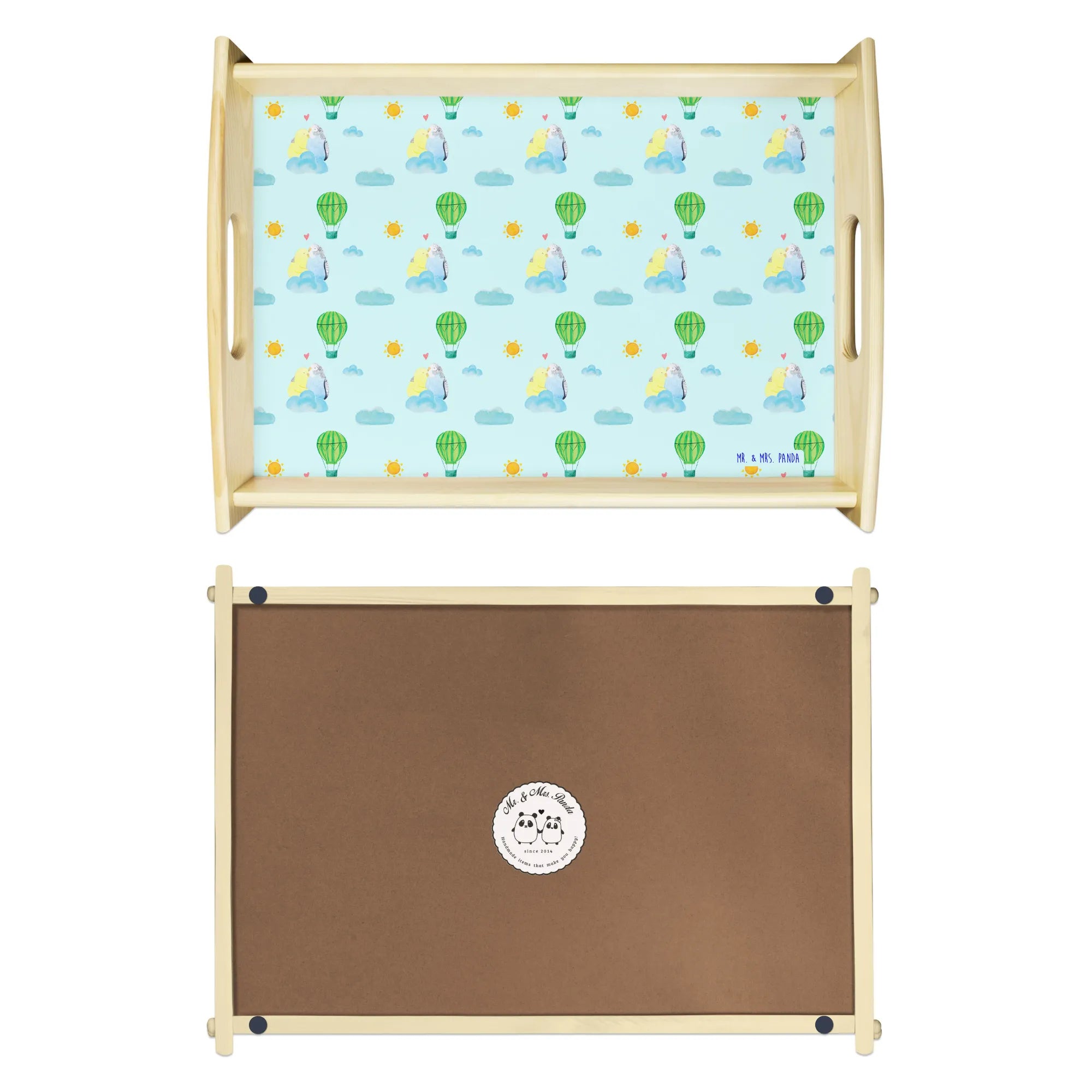Entdecke unser einzigartiges Serviertablett von Mr. & Mrs. Panda – ein wahres Highlight für jedes Frühstück! Mit den Maßen von 480 mm x 480 mm x 65 mm und einem Gewicht von 925 g ist dieses Holztablett nicht nur praktisch, sondern auch wunderschön. Hergestellt aus lasiertem Echtholz mit einem brillanten Druck, bringt es Farbe in dein Zuhause. Ob für ein gemütliches Frühstück im Bett oder beim Entspannen auf dem Sofa – die seitlichen Griffmulden sorgen für eine einfache Handhabung. Vielen lieben Dank für deine Unterstützung, die Anti-Rutsch Pads auf der Unterseite machen das Servieren noch einfacher. Die kratzfeste und robuste Oberfläche garantiert Langlebigkeit. Pflegeleicht wird es einfach mit einem feuchten Tuch und etwas Spülmittel gereinigt. Bitte nicht einweichen! Hinweis: Aufgrund der aufwändigen Herstellung kann die Anfertigungszeit etwas länger sein.