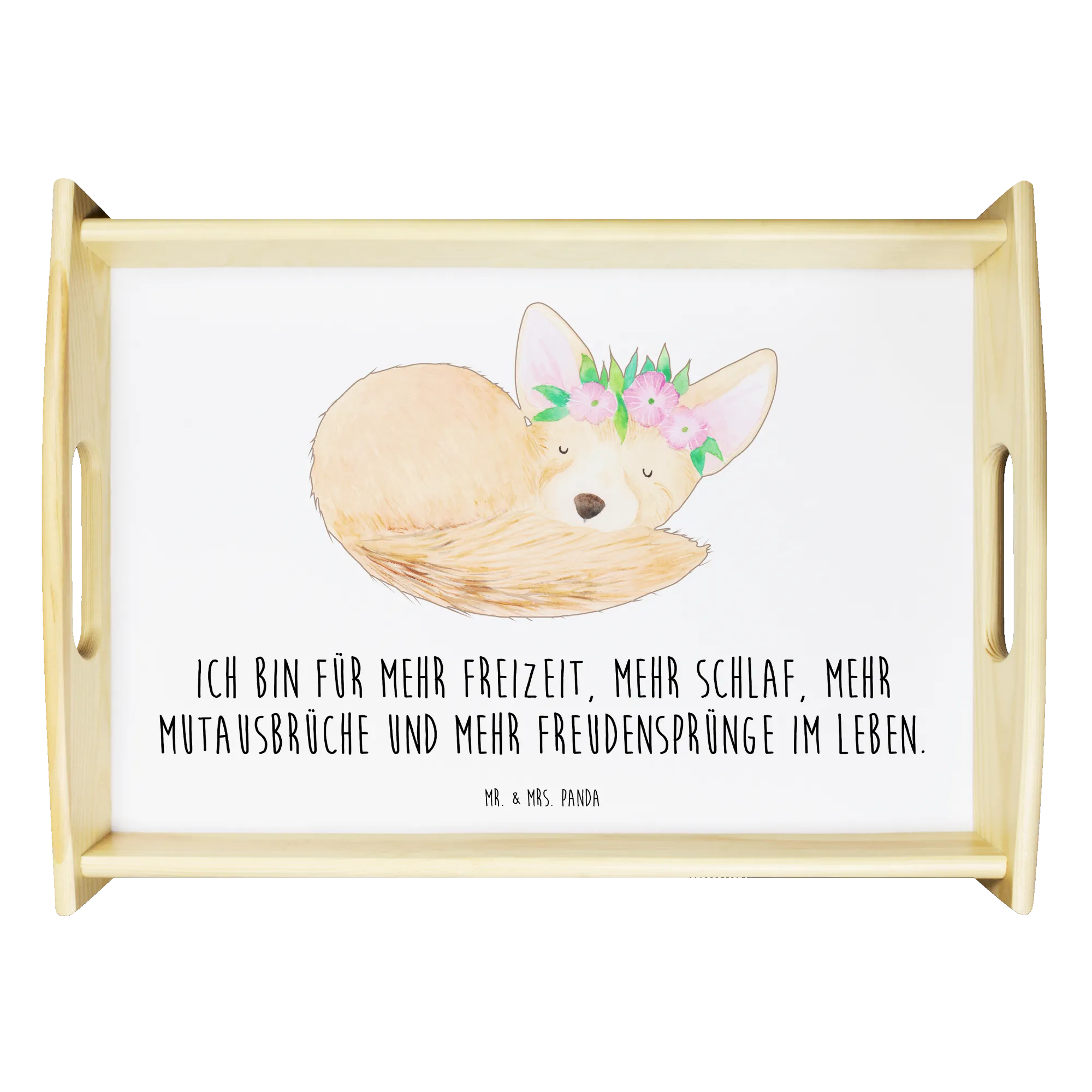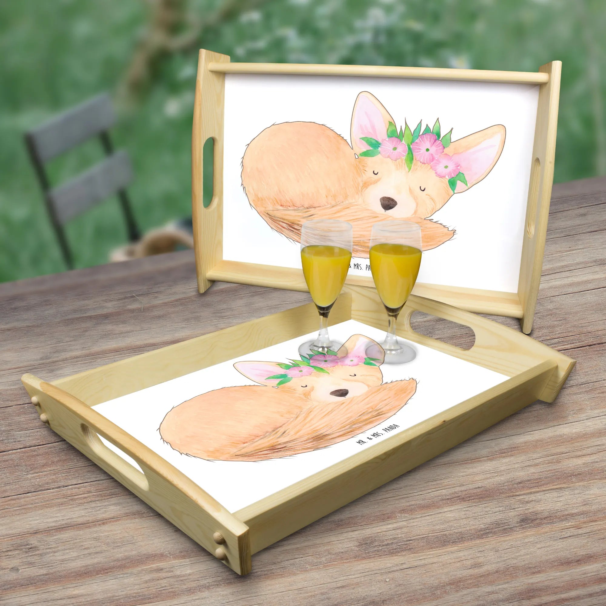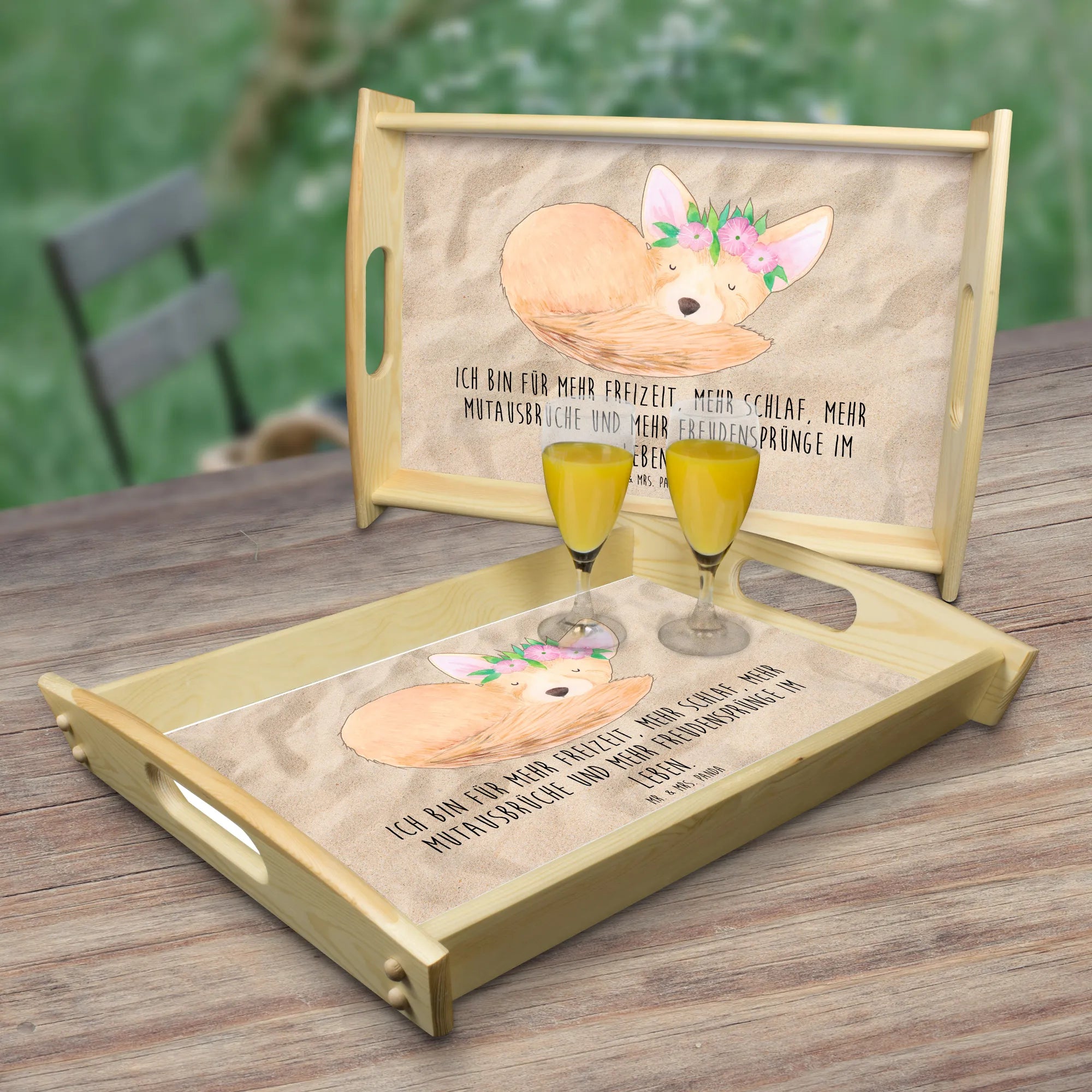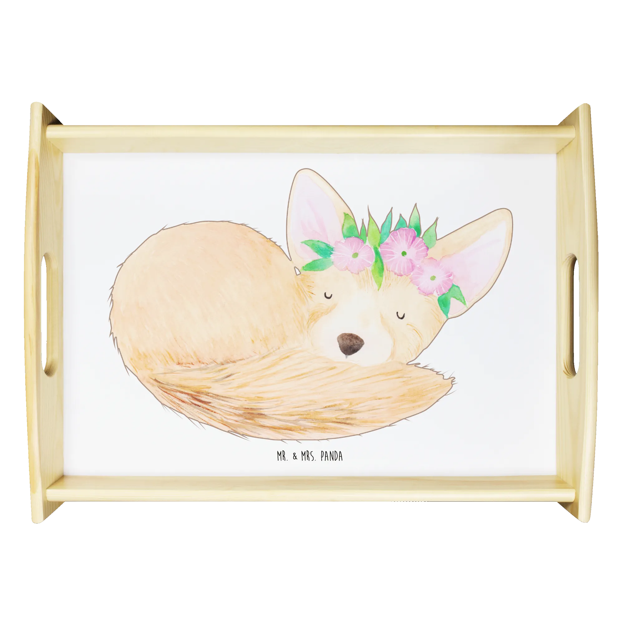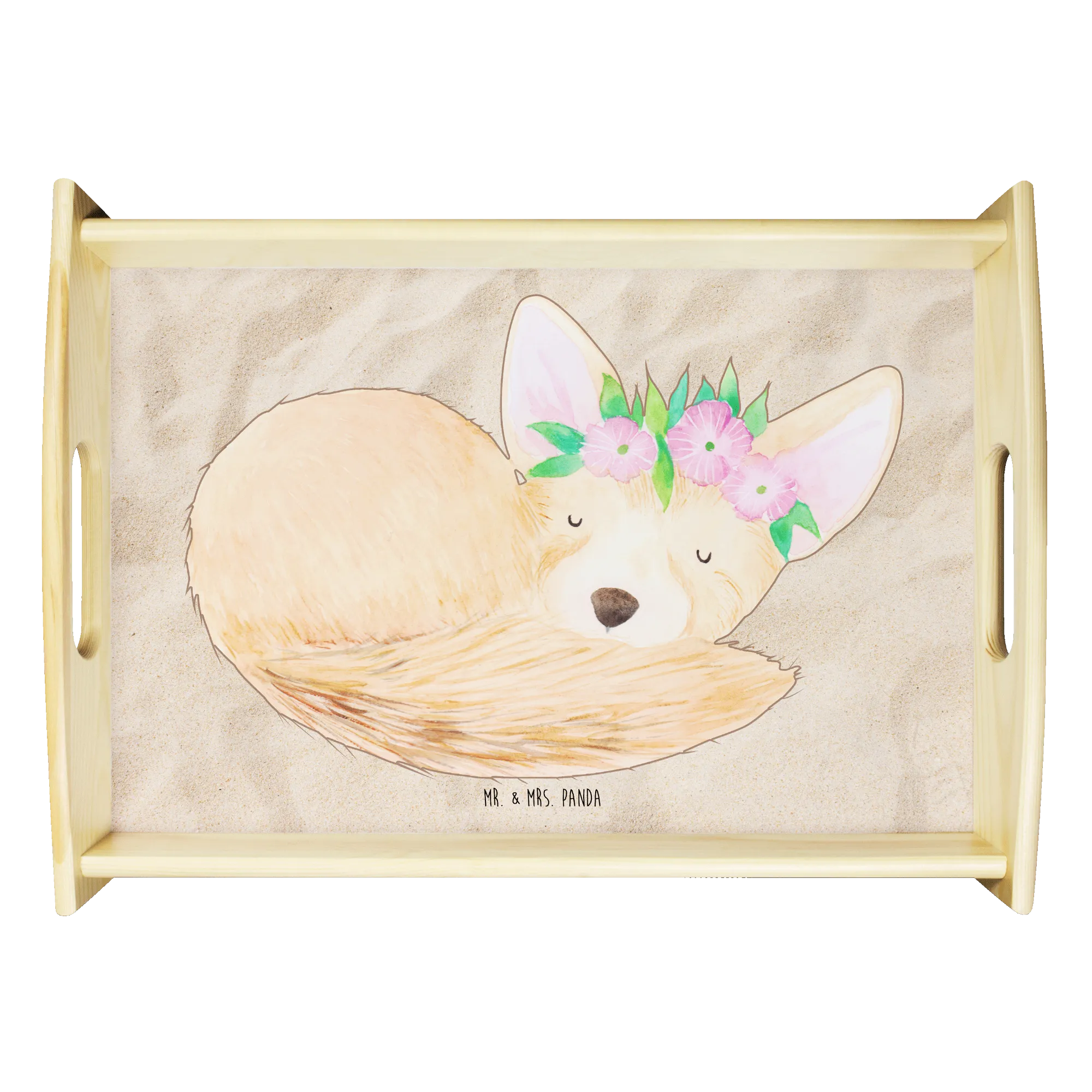 Serviertablett Wüstenfuchs Blumenkranz - mit Spruch - Sandig