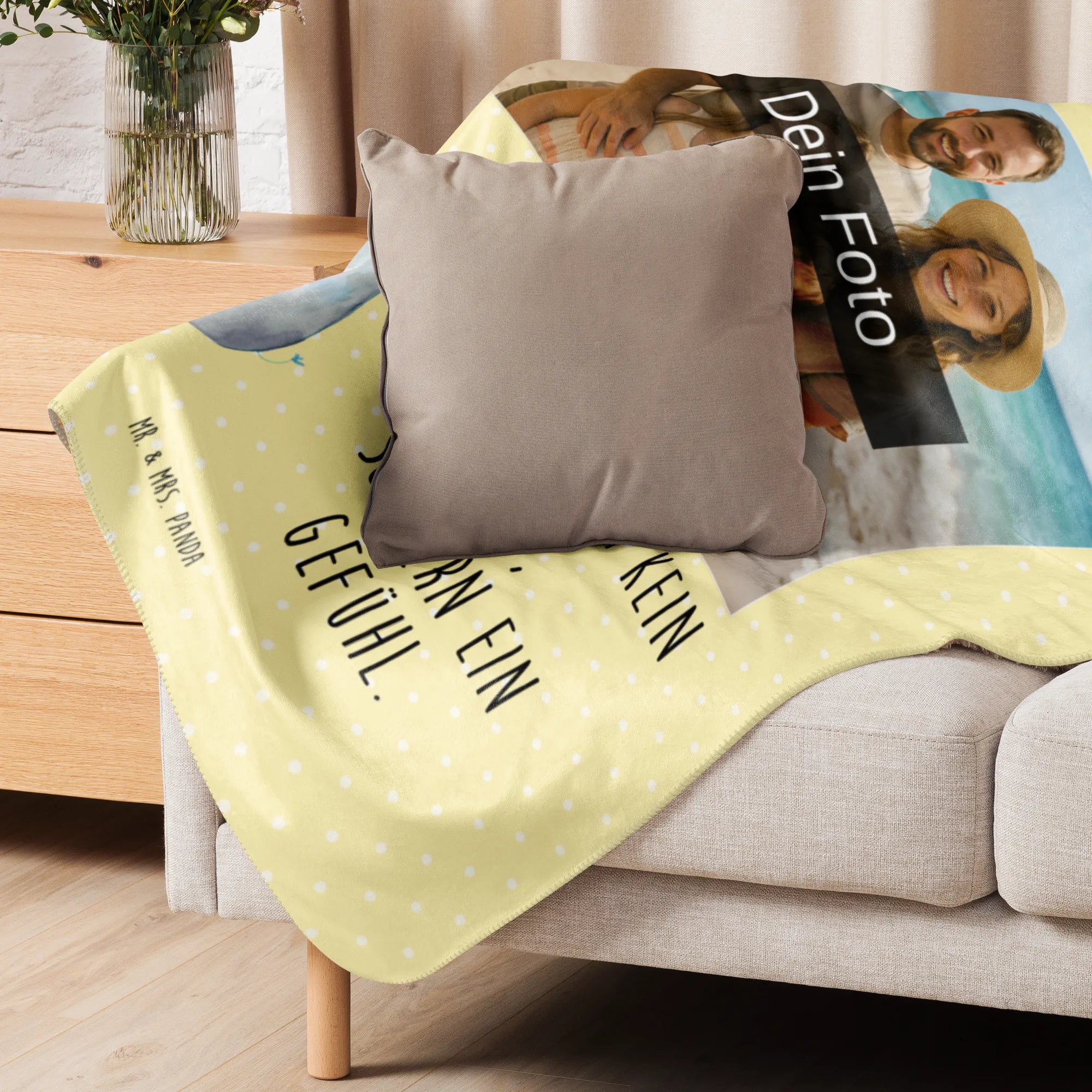 Lass dich von unserer himmlischen Sherpa Foto Kuscheldecke von Mr. & Mrs. Panda verwöhnen! Diese hochwertige Decke hat die Maße 1300 mm x 1550 mm und bietet dir unvergleichlichen Komfort und Wärme. Hergestellt aus 100 % ultrweichen Polyesterfasern, mit einer Obermaterialkombination von 51,5 % und einem kuscheligen Sherpa-Gewebe von 48,5 %, sorgt diese Decke für ein Gefühl von purer Gemütlichkeit. Die beiden Stoffarten haben eine angenehme Grammatur von 220 g/m² für den glatten Seitenstoff und 240 g/m² für das warme Sherpa. Egal, ob du auf der Couch entspannst oder die Decke als stilvollen Überwurf nutzen möchtest, ihre super leuchtenden Farben und das niedliche Design mit Sprüchen und Motiven von Mr. & Mrs. Panda machen sie zum perfekten Begleiter für gemütliche Abende. Außerdem kannst du sie mit deinem eigenen Wunschfoto personalisieren, sodass sie zu einem einzigartigen Highlight in deinem Zuhause wird. Denke daran, die Decke vor der ersten Nutzung zu waschen, um die besten Ergebnisse zu erzielen!