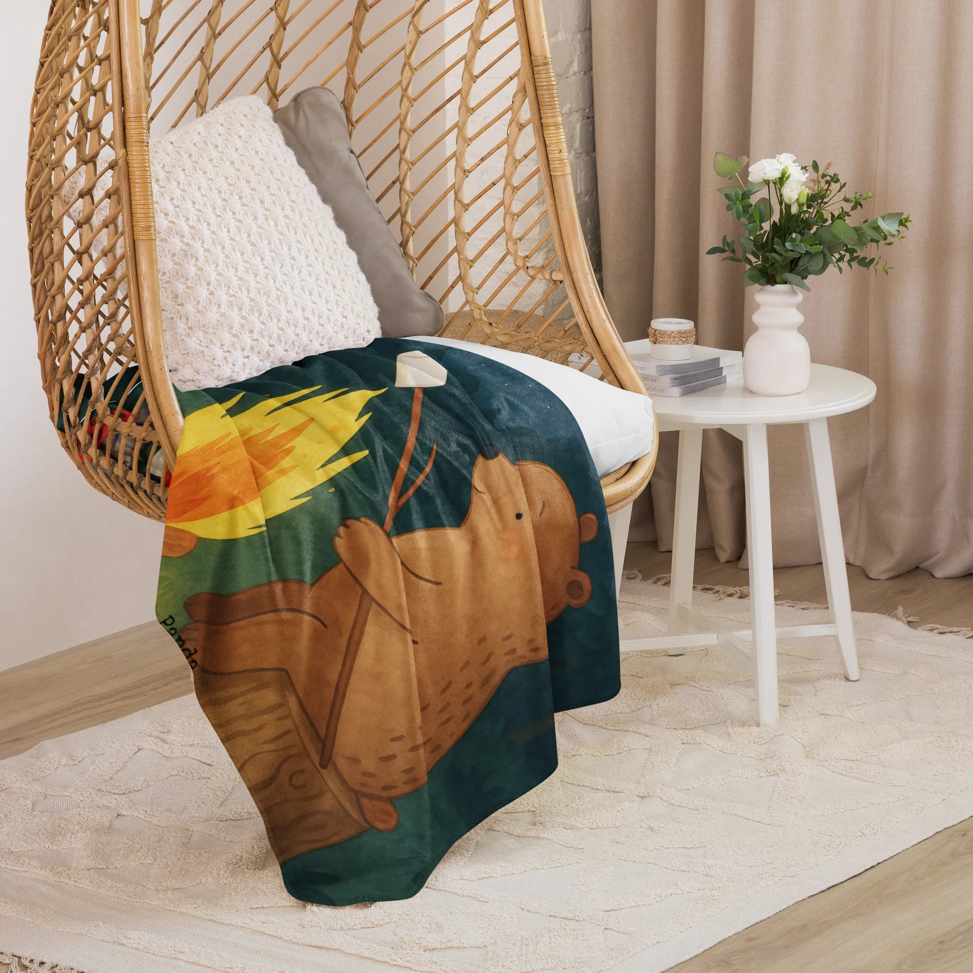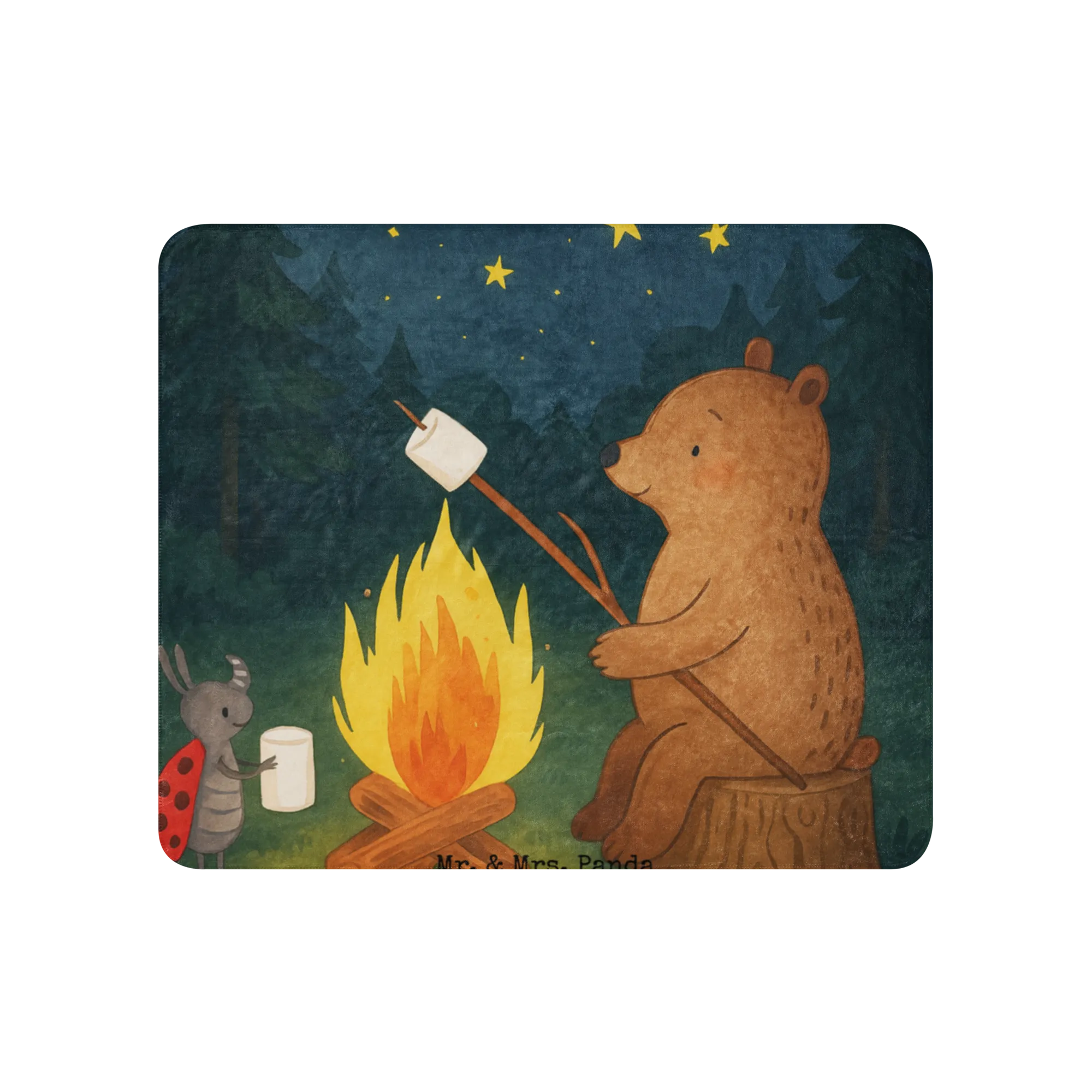 Plaid Bär & Marienkäfer Lagerfeuer Design - 100 x 150 cm - mit Spruch