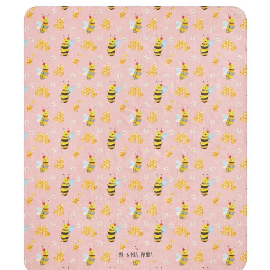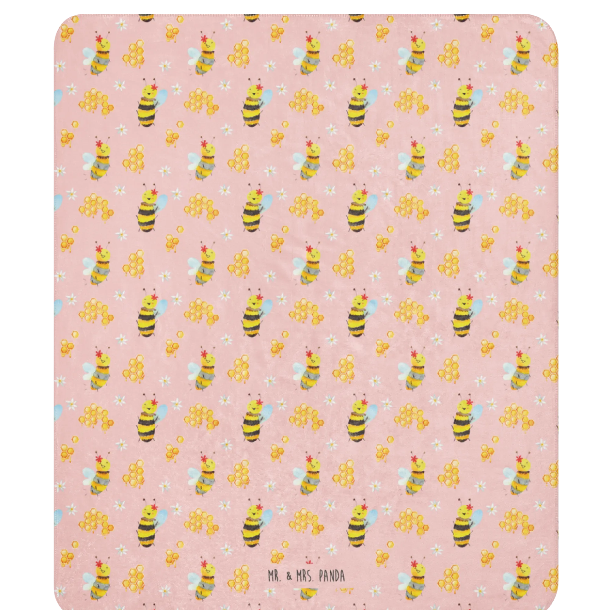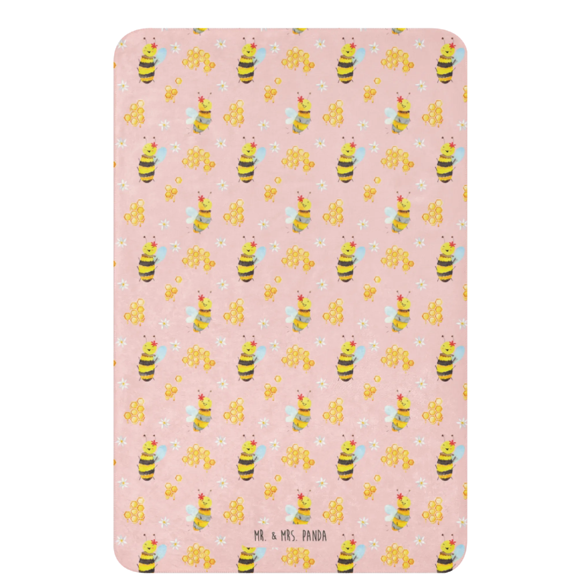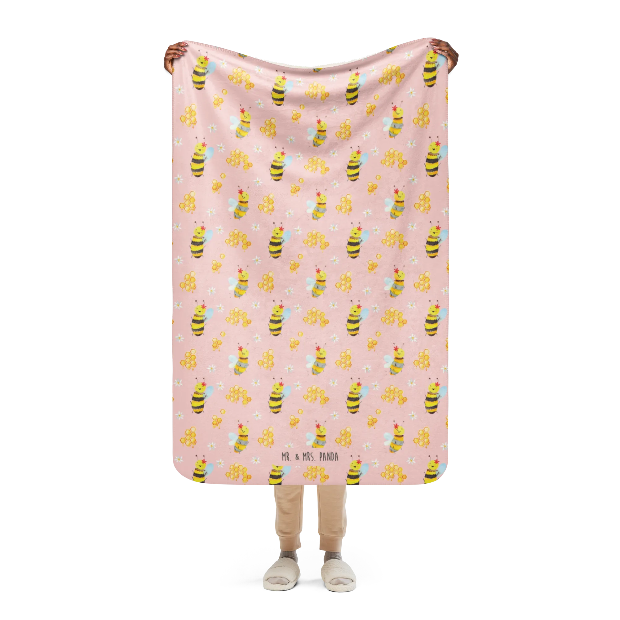 Sherpa Kuscheldecke Biene Happy Muster - 130 x 155 cm