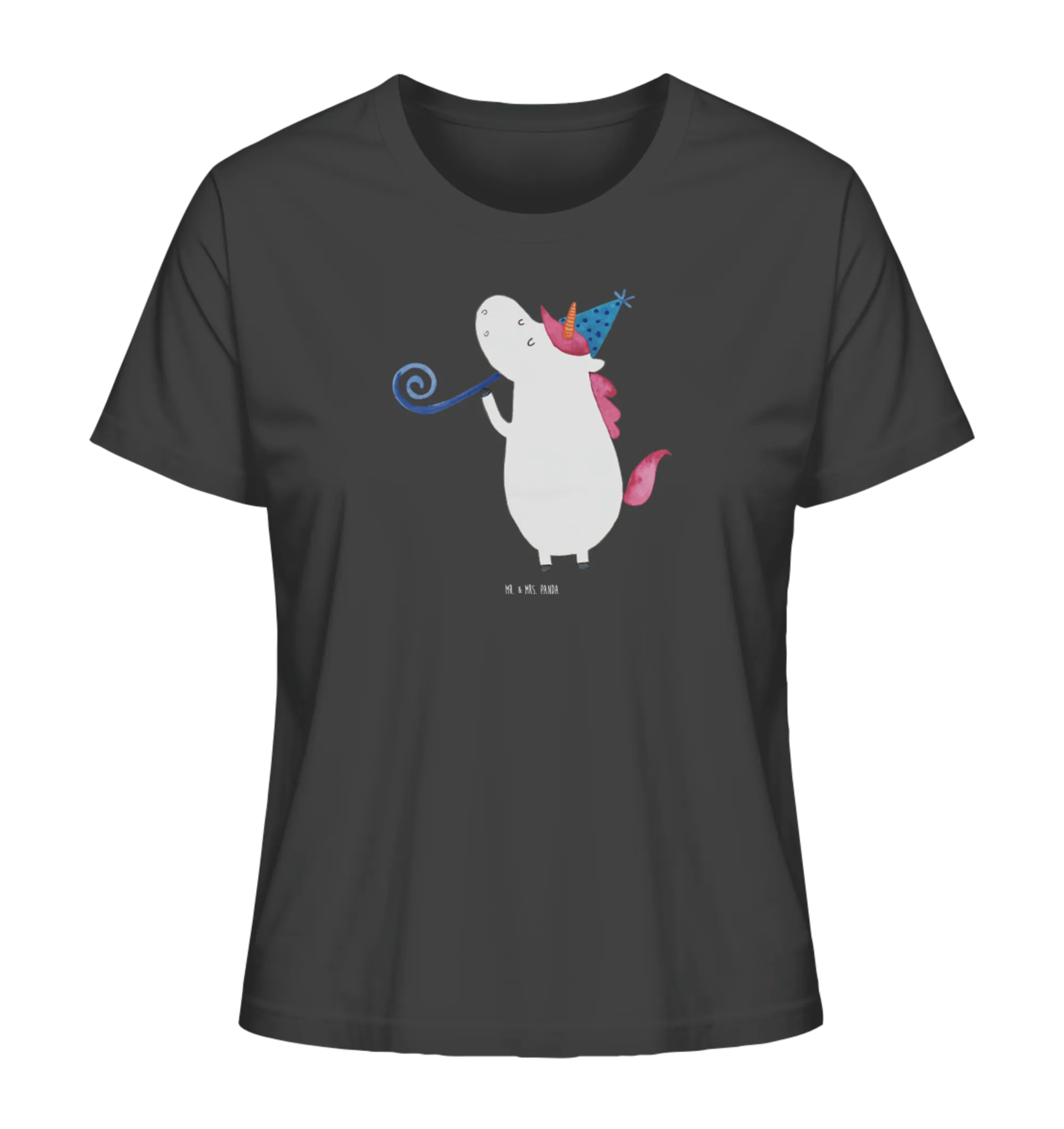 Mach dich bereit für strahlende Blicke und gute Laune: das Mr. & Mrs. Panda Einhorn Party Shirt Damen ist das perfekte Geschenk für alle, die das Leben feiern.