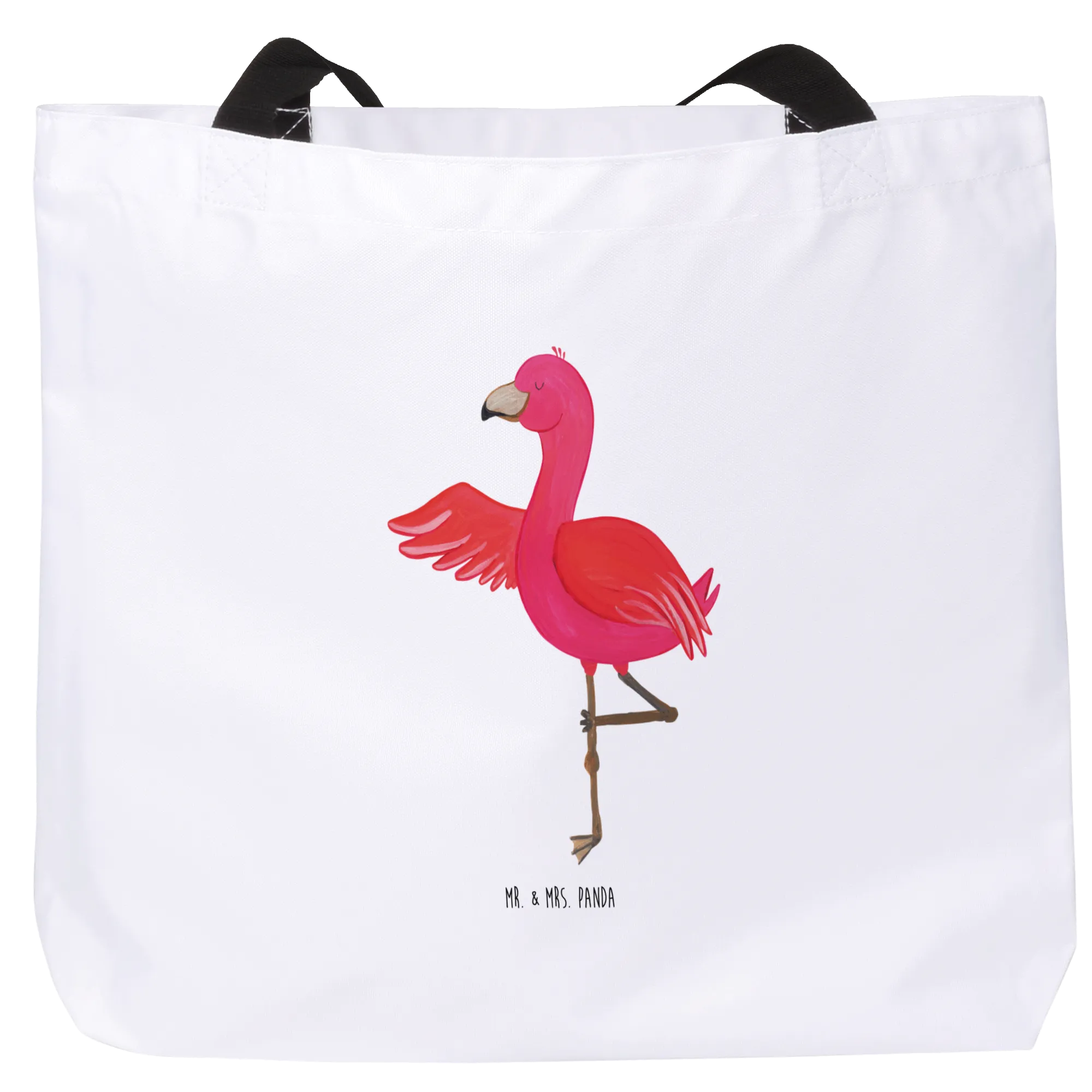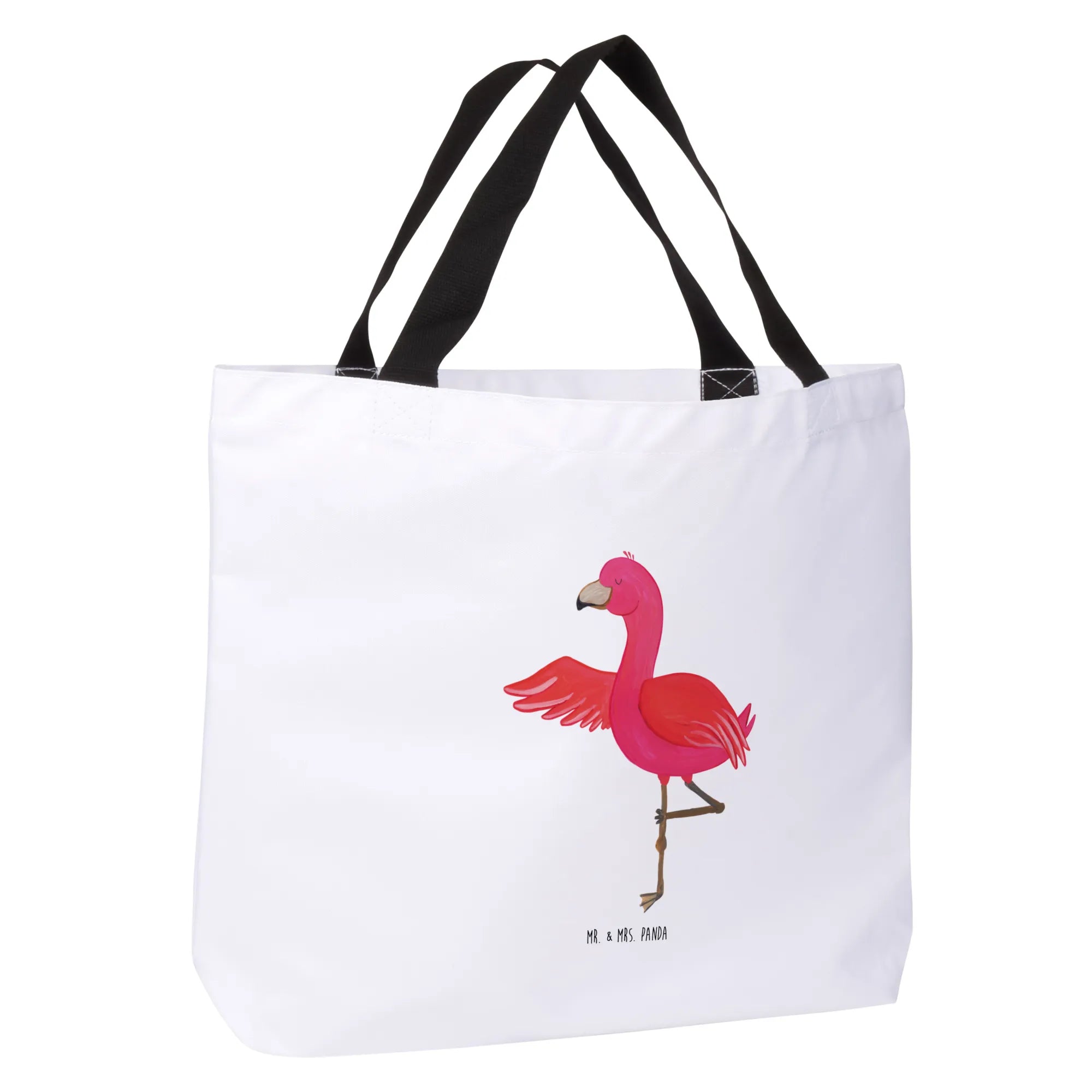 Entdecke die perfekte Mischung aus Stil, Funktionalität und guter Laune mit unserem wunderschönen Shopper Flamingo Yoga von Mr. & Mrs. Panda! Diese einzigartige Einkaufstasche ist nicht nur ein praktischer Begleiter für deinen Alltag, sondern auch ein echter Hingucker. Hergestellt aus robuster Kunstfaser, ist sie die ideale Wahl für deine Einkäufe, den Strand oder einen Stadtbummel. Mit den Maßen 500 mm x 380 mm und einer Henkellänge von 470 mm passt hier alles rein, was du für einen entspannten Ausflug benötigst!