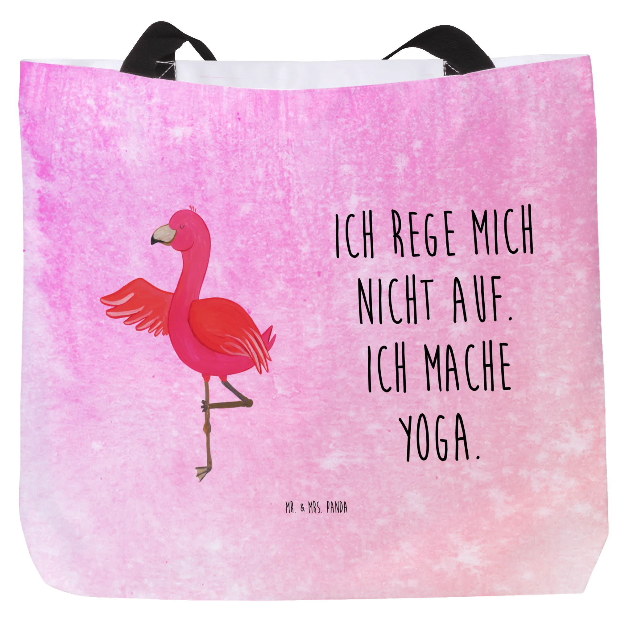 Der Shopper kommt im lebhaften Design der Flamingo-Kollektion, die die farbenfrohen und fröhlichen Flamingos von Mr. & Mrs. Panda zeigt. Jeder Flamingo ist liebevoll handgezeichnet von Mrs. Panda und strahlt bereits beim Ansehen gute Laune aus. Besonders der Flamingo in der Yoga-Pose, der zu den beliebtesten Motiven gehört, erinnert uns daran, entspannt zu bleiben und den Moment zu genießen. Mit dem Slogan „Ich rege mich nicht auf. Ich mache Yoga.“ hilft er dir, auch in stressigen Situationen gelassen zu bleiben.
