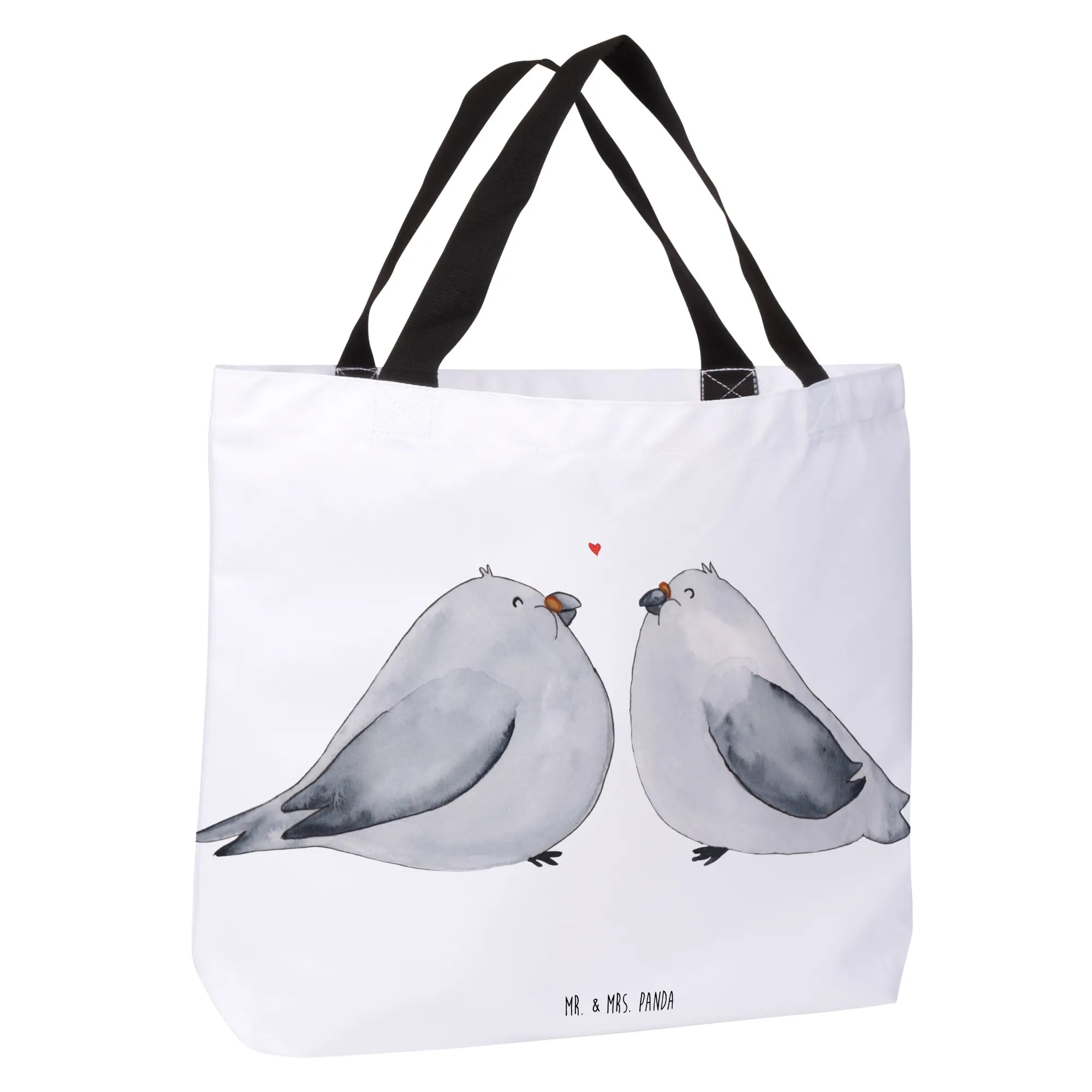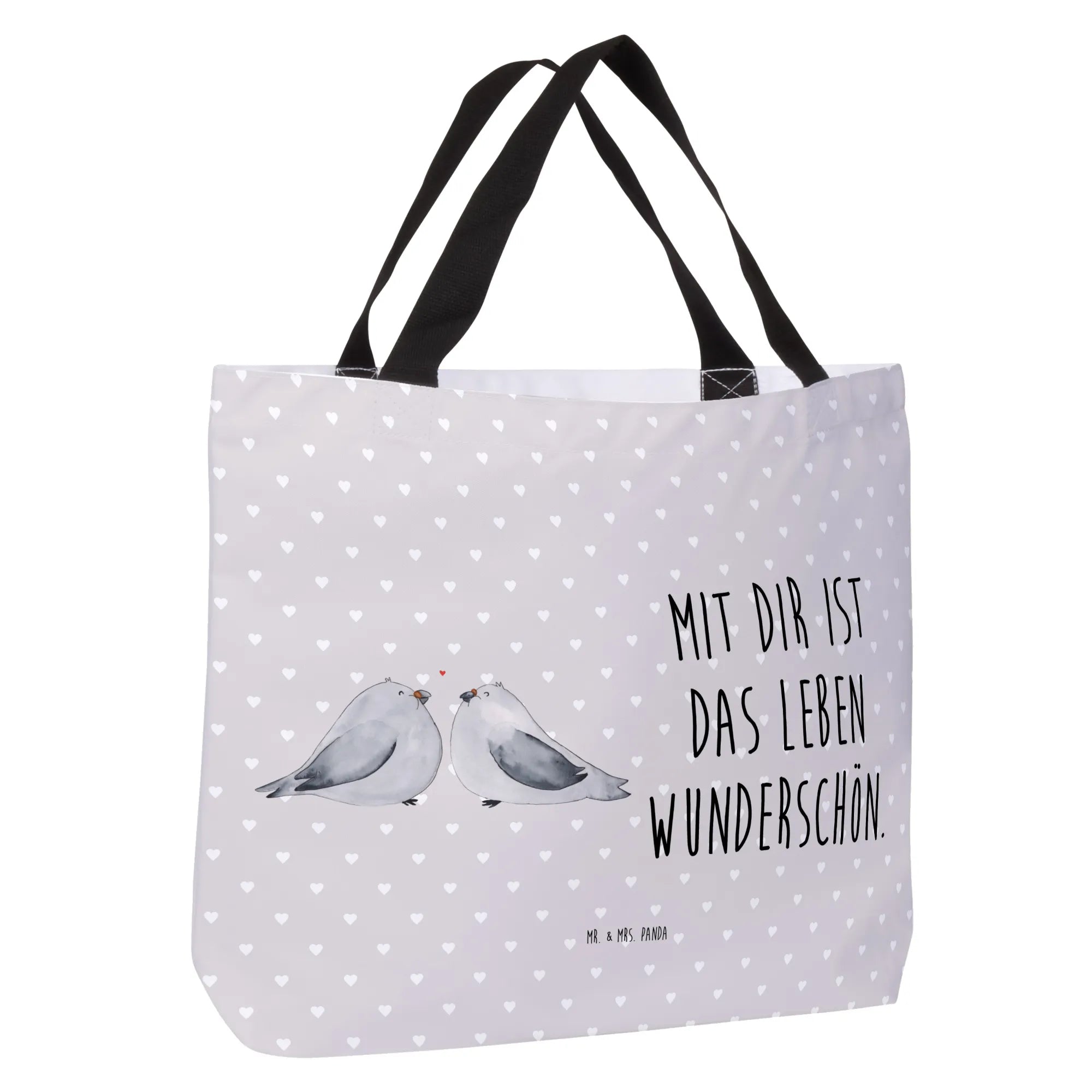 Ein wunderschöner Shopper von Mr. & Mrs. Panda: Die Turteltauben aus der Liebe-Kollektion schmiegen sich zärtlich aneinander und bringen Romantik in Deinen Alltag. Auf hellem Hintergrund zeigen zwei stilisierte Vögel in Grau- und Weißtönen ihre Zuneigung — ein kleines rotes Herz schwebt zwischen ihren Schnäbeln und symbolisiert Verbundenheit und Liebe.