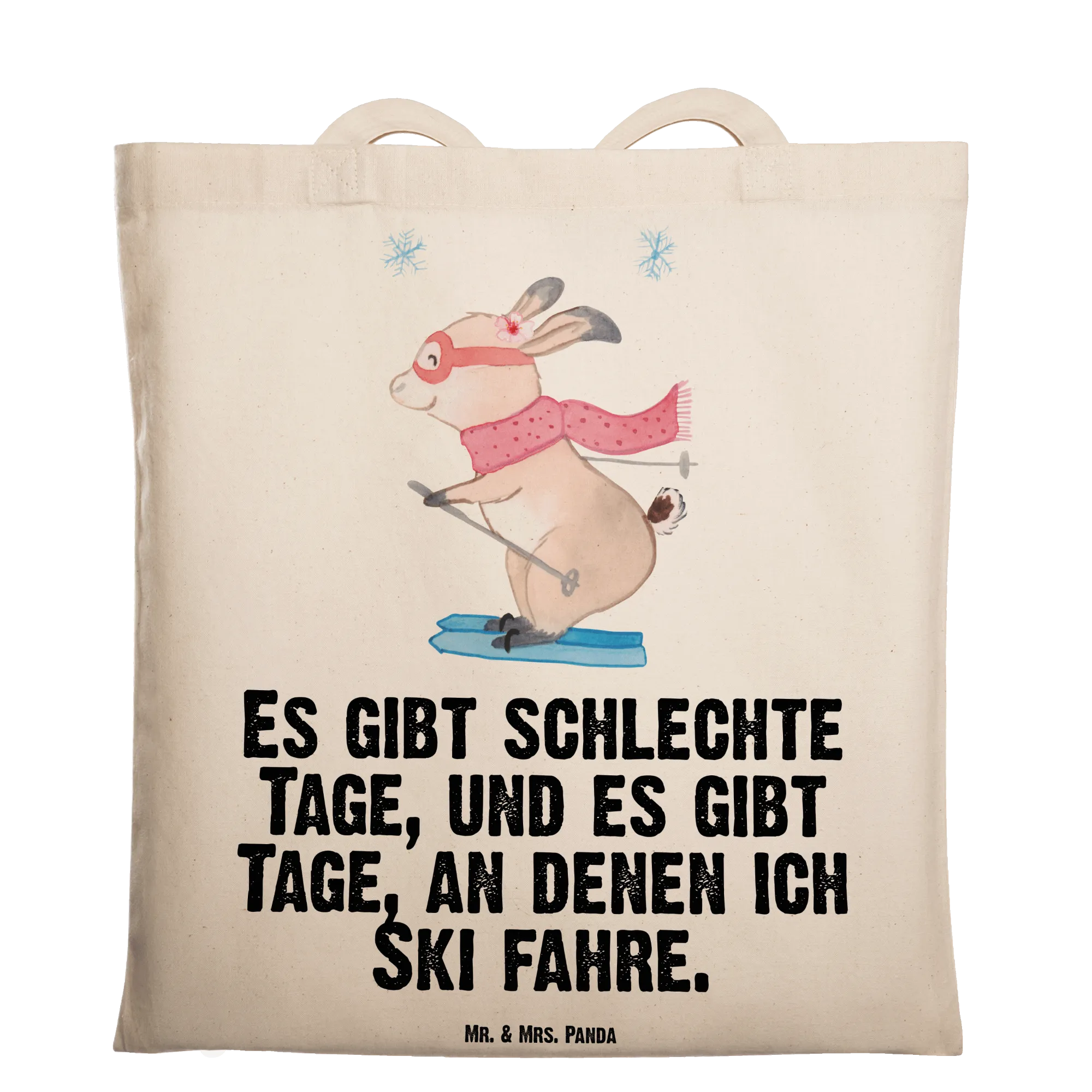 Tote Bag Hase Skifahren - mit Spruch - Transparent