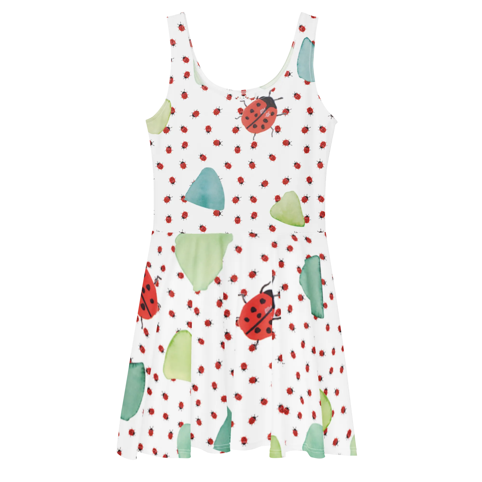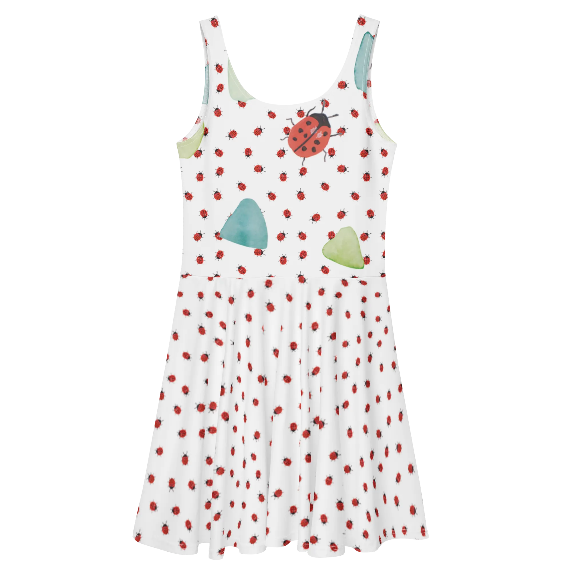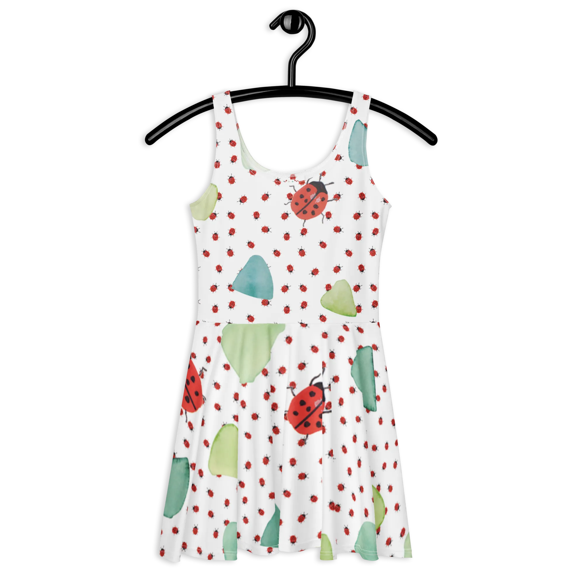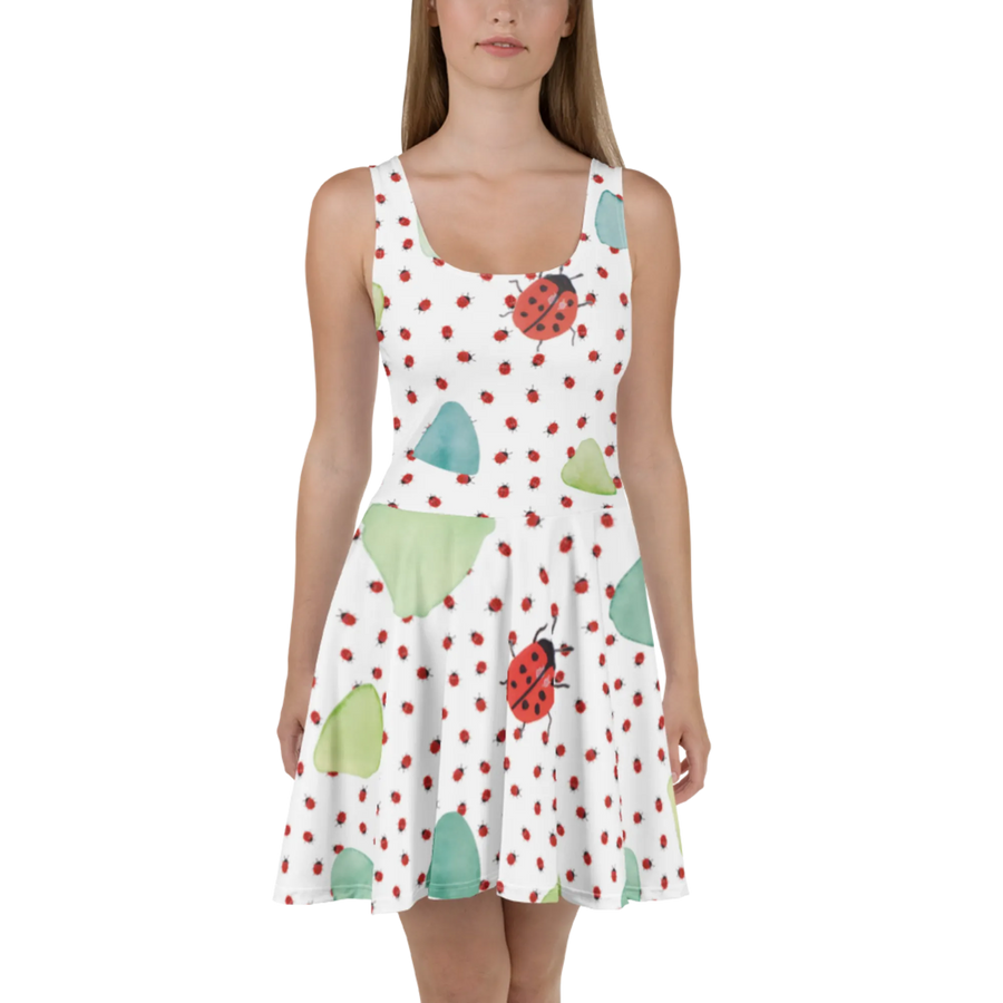 Ob du das Kleid für einen fröhlichen Tag im Park, für eine Grillfeier oder einfach zum Entspannen zuhause trägst, es wird sicherlich zu einem deiner Lieblingsteile. Das Marienkäfer Design ist nicht nur verspielt und niedlich, sondern auch ein echtes Kunstwerk – handgezeichnet und liebevoll gestaltet. Die harmonische Anordnung der Marienkäfer auf sanft grün-türkisem Hintergrund bringt gute Laune und lässt dich strahlen!