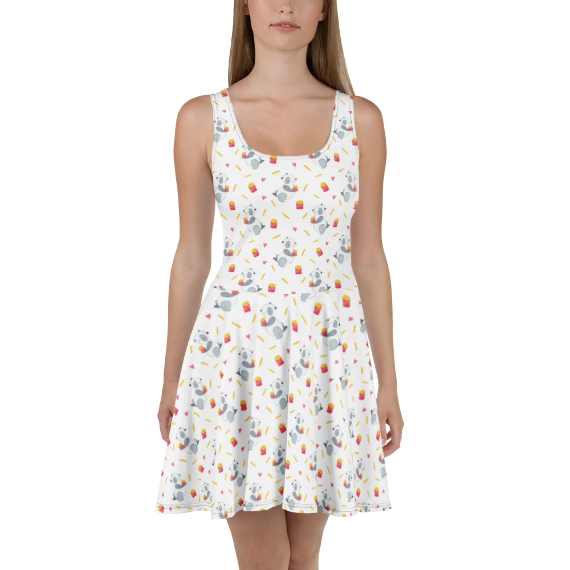 Sommerkleid Panda Pommes Muster Kleid, Sommerkleid, Skaterkleid, Pommes Muster, Panda, Panda Muster, Pommes