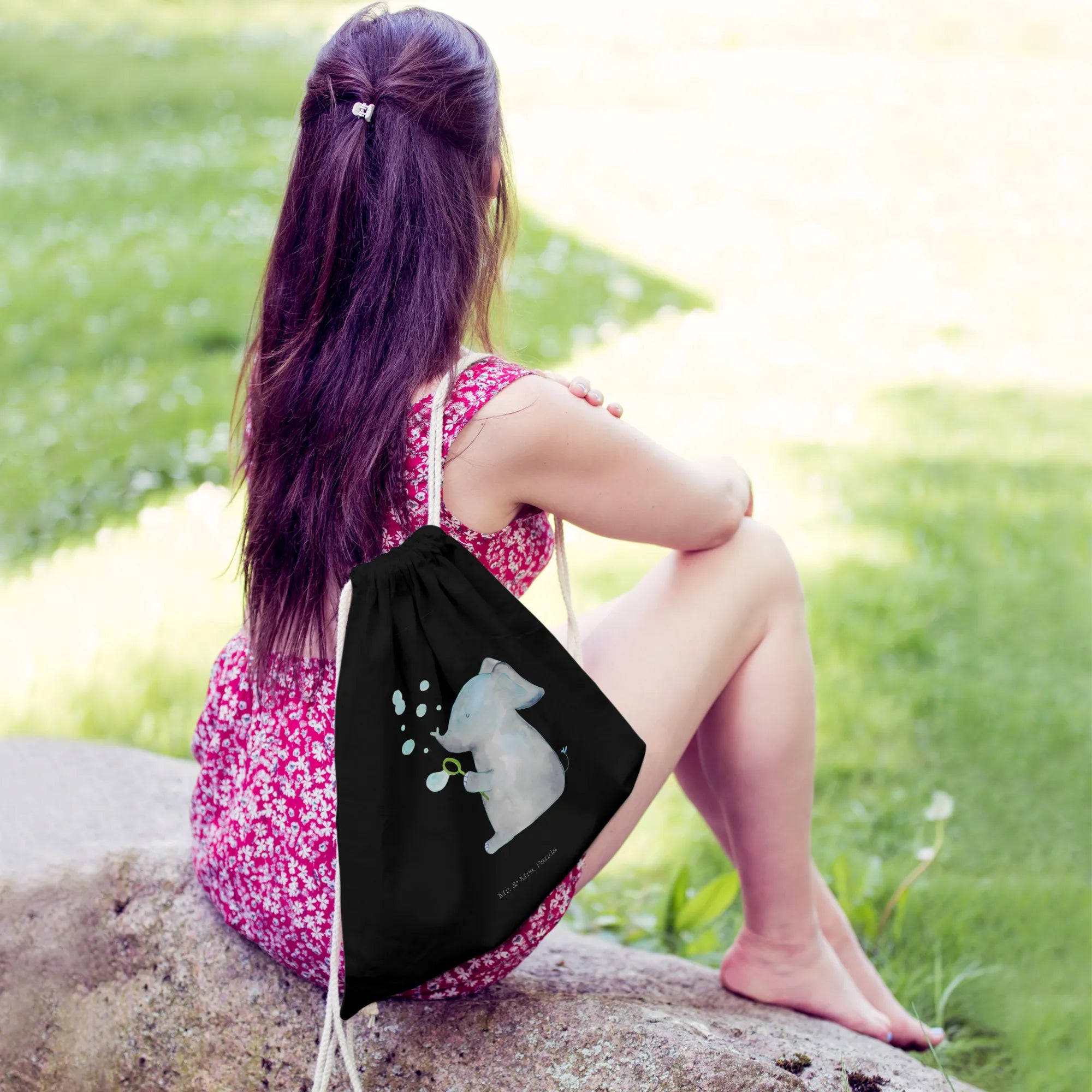 Entdecke den zauberhaften Sportbeutel "Elefant Seifenblasen" aus der Kollektion Small World von Mr. & Mrs. Panda! Dieser hochwertige Baumwollbeutel wurde mit einem süßen Motiv eines Elefanten bedruckt, der fröhliche Seifenblasen in die Luft bläst. Ideal um gute Laune überallhin mitzunehmen, ob zum Sport, in die Schule oder auf ein Festival.
