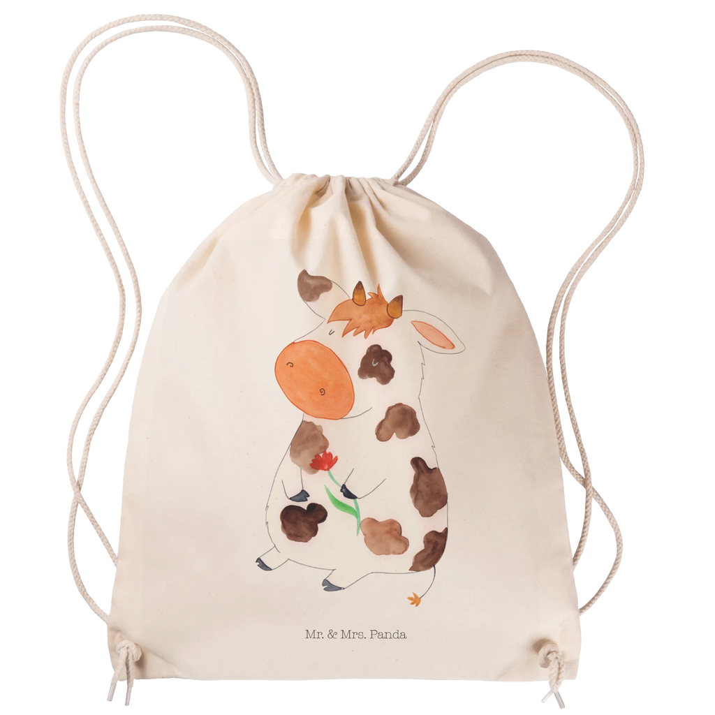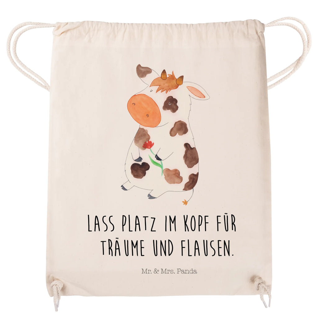 Schenke einem lieben Menschen etwas ganz Besonderes mit unserem einzigartigen Sportbeutel von Mr. & Mrs. Panda! Dieser hochwertige Stoffbeutel ist nicht nur äußerst praktisch, sondern überzeugt auch mit einem bezaubernden Kuh-Motiv aus unserer Bauernhof-Kollektion. Die kleine, verträumte Kuh mit einer Blume in der Hand ist bereit, Dich bei all Deinen Abenteuern zu begleiten!