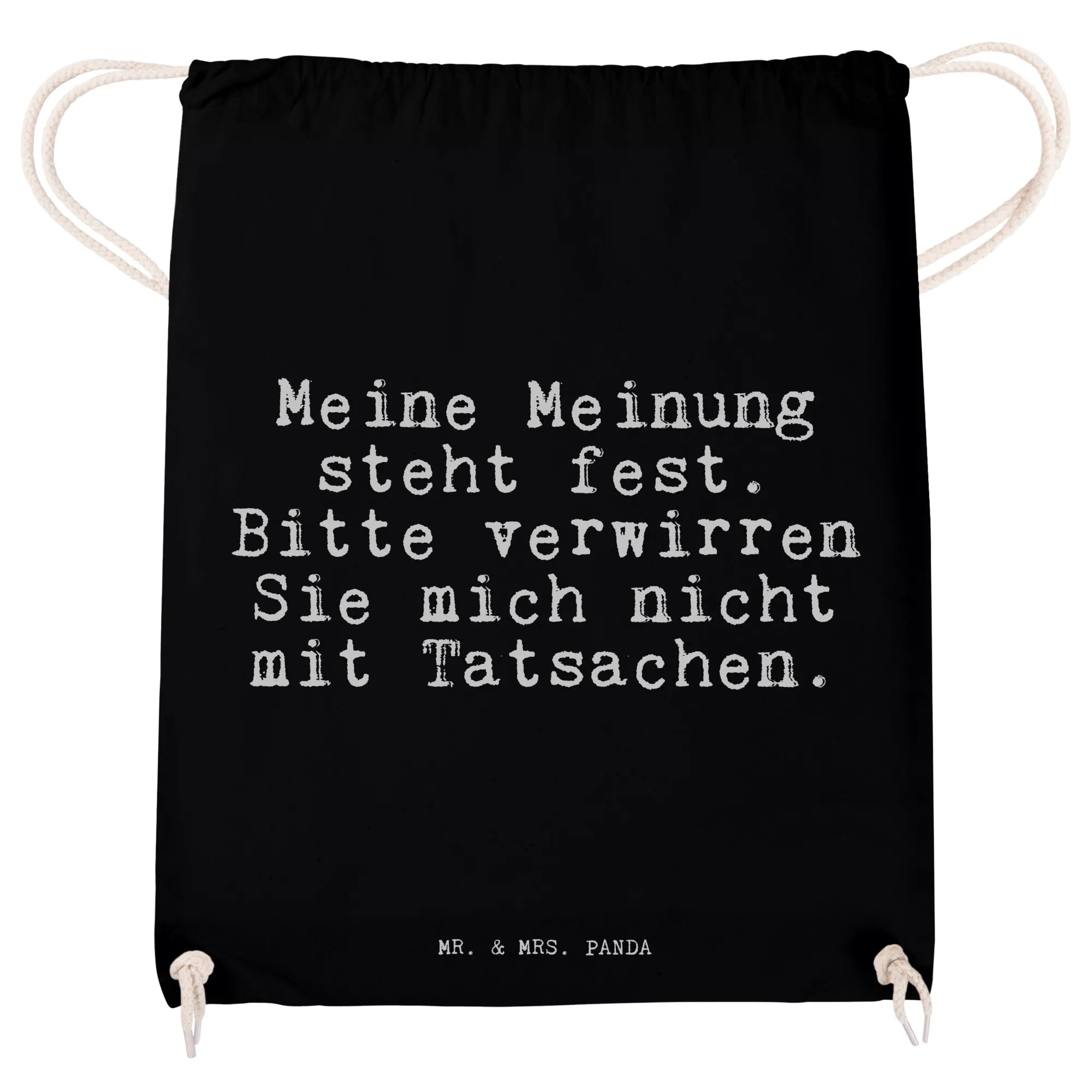 Entdecke den perfekten Sportbeutel für alle Besserwisser und Meinungsmenschen! Unser einzigartiger Sportbeutel mit dem witzigen Spruch 'Meine Meinung steht fest. Bitte verwirren Sie mich nicht mit Tatsachen.' ist nicht nur ein praktischer Begleiter für den Sport, sondern sorgt auch für ein Lächeln auf den Lippen. Hergestellt aus 100% weicher Baumwolle, ist dieser Turnbeutel ein echter Hingucker und bietet genug Platz für alles, was du für den Sport oder den Alltag benötigst.