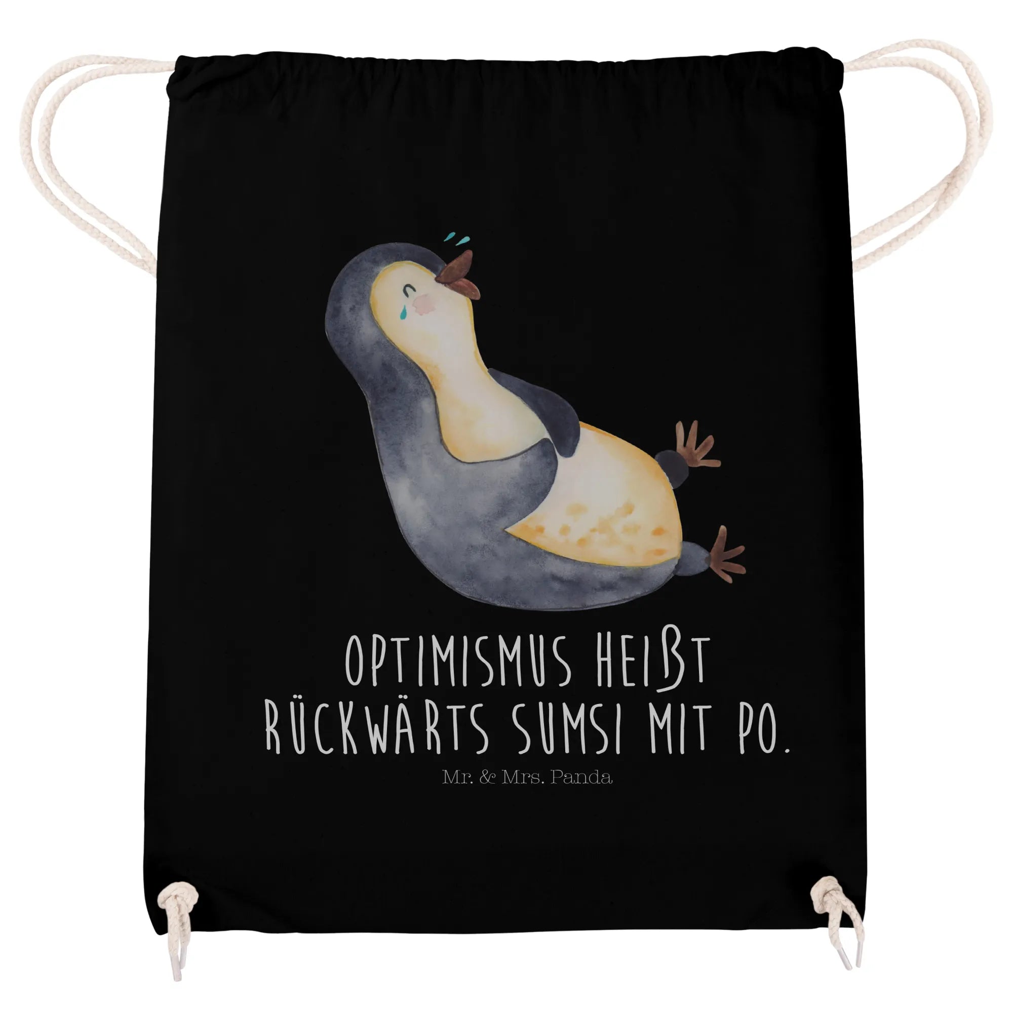 Der liebevoll handgezeichnete lachende Pinguin bringt sofort gute Laune und erinnert dich daran, das Leben mit einem Lächeln zu betrachten! Mit dem kreativen Slogan 'Optimismus heißt rückwärts Sumsi mit Po.' ist dieser Sportbeutel mehr als nur ein praktischer Begleiter. Er erzählt eine Geschichte von Leichtigkeit und Lebensfreude - ideal für alle, die nicht nur sportlich aktiv sein möchten, sondern auch Spaß dabei haben wollen.