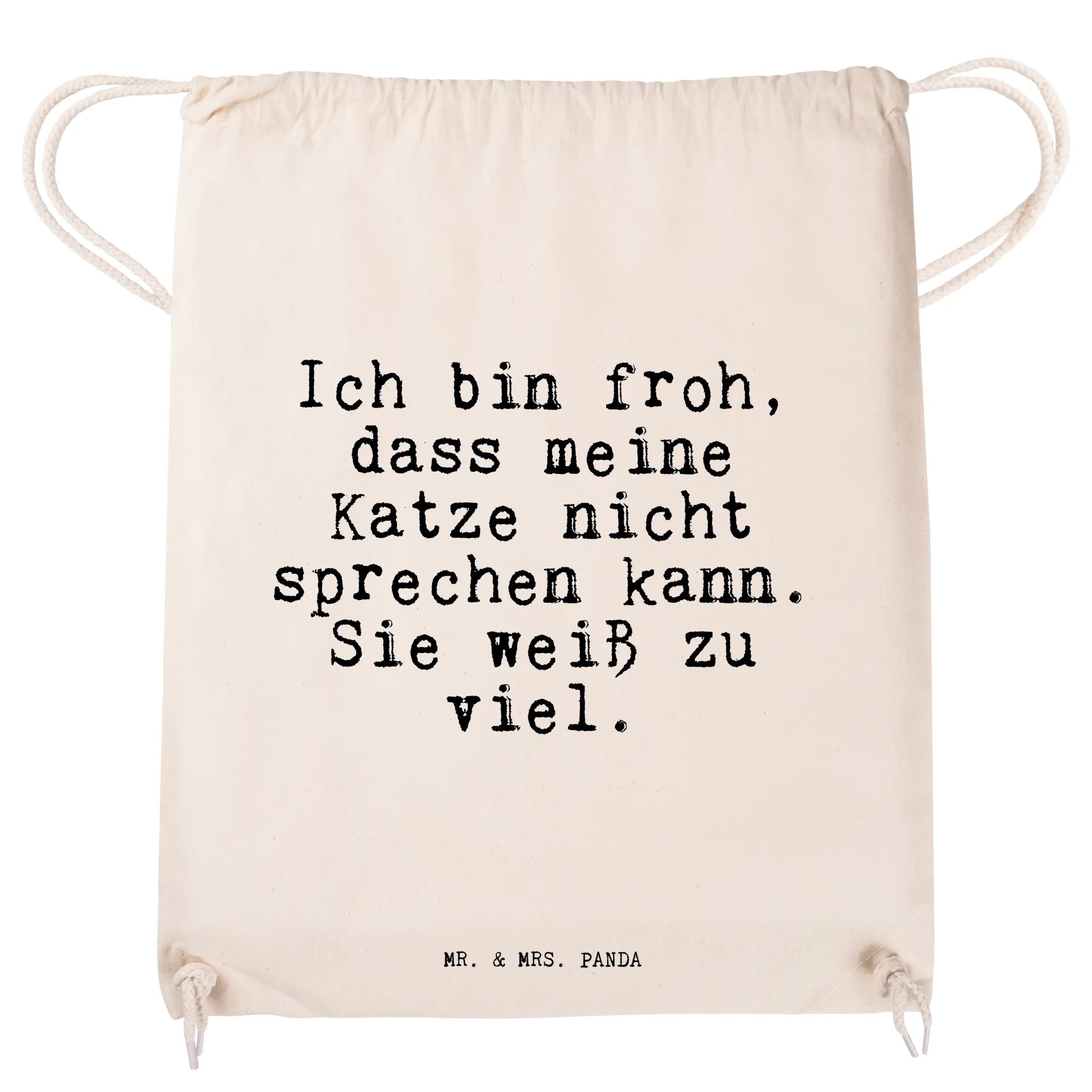 Entdecke den einzigartigen Sportbeutel "Ich bin froh, dass meine Katze nicht sprechen kann. Sie weiß zu viel." von Mr. & Mrs. Panda! Dieser liebevoll gestaltete Beutel aus 100% weicher Baumwolle ist nicht nur ein praktischer Begleiter für den Alltag, sondern auch ein schönes Accessoire für Sport und Freizeit.