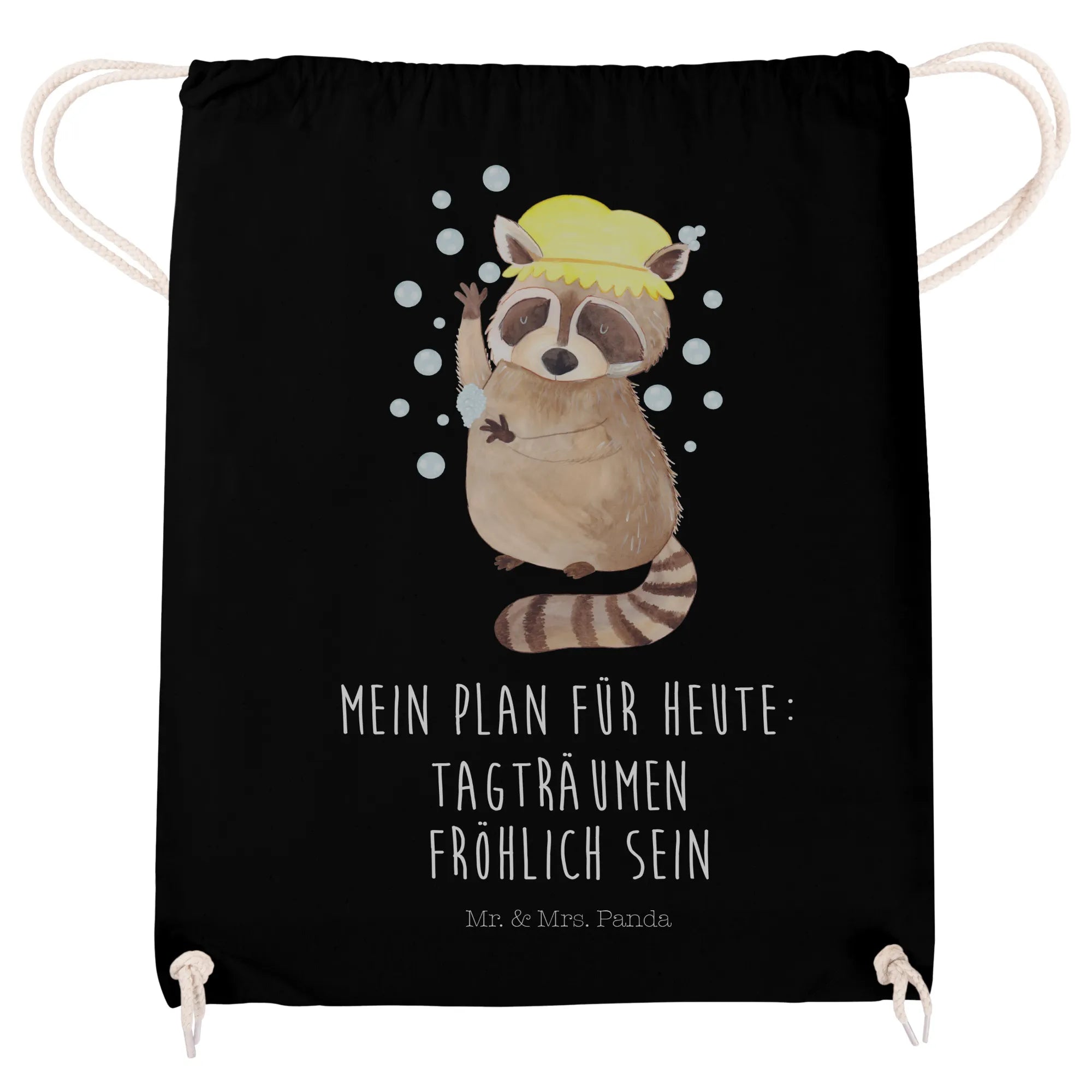 Der Sportbeutel mit dem fröhlichen Waschbär-Motiv aus der Small World Kollektion von Mr. & Mrs. Panda ist das perfekte Geschenk für kleine und große Träumer! Mit dem Slogan "Mein Plan für heute: Tagträumen und fröhlich sein" bringt er gute Laune in den Alltag.