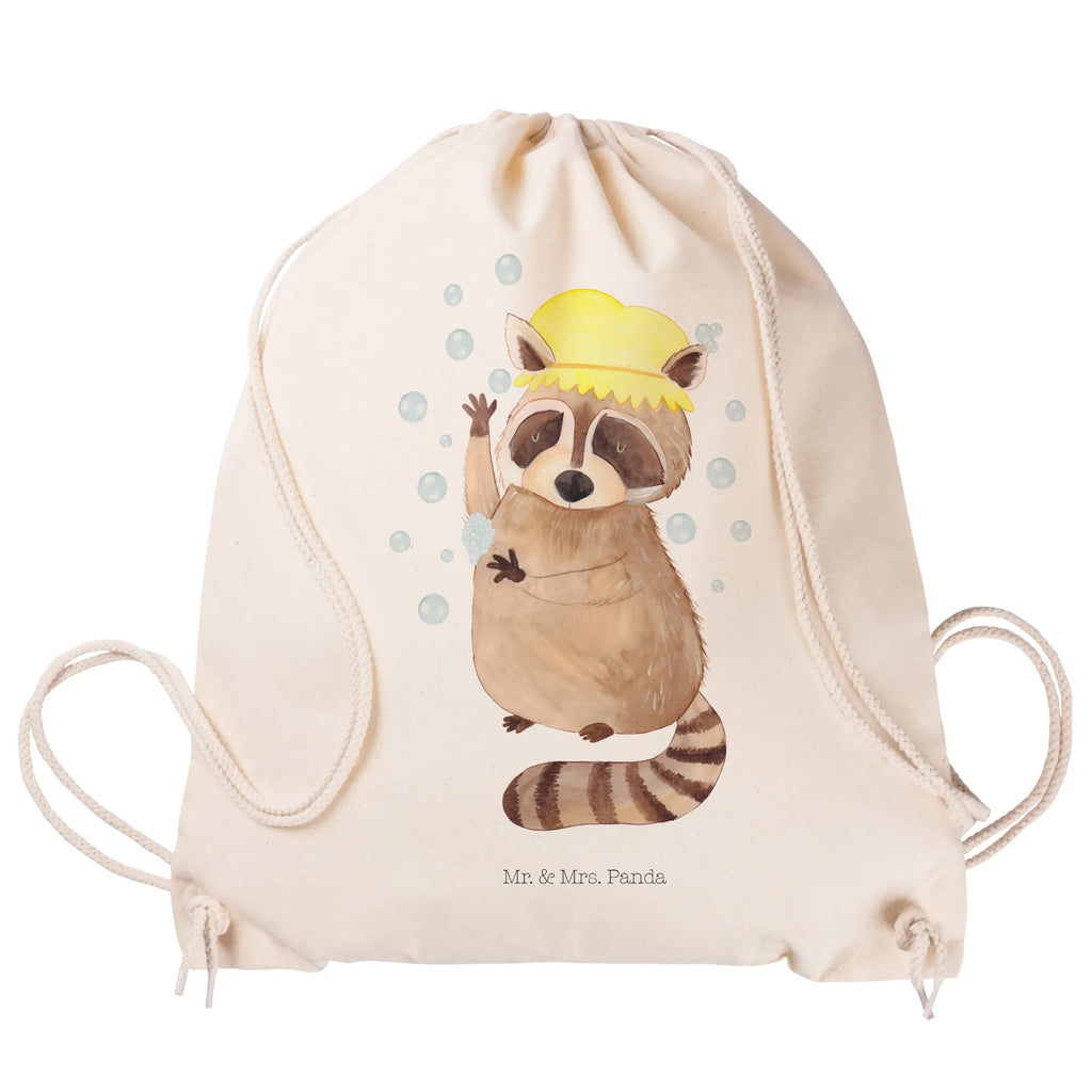 Mr. & Mrs. Panda Waschbär - Fröhliches Motiv | Duschender Waschbär voller guter Laune