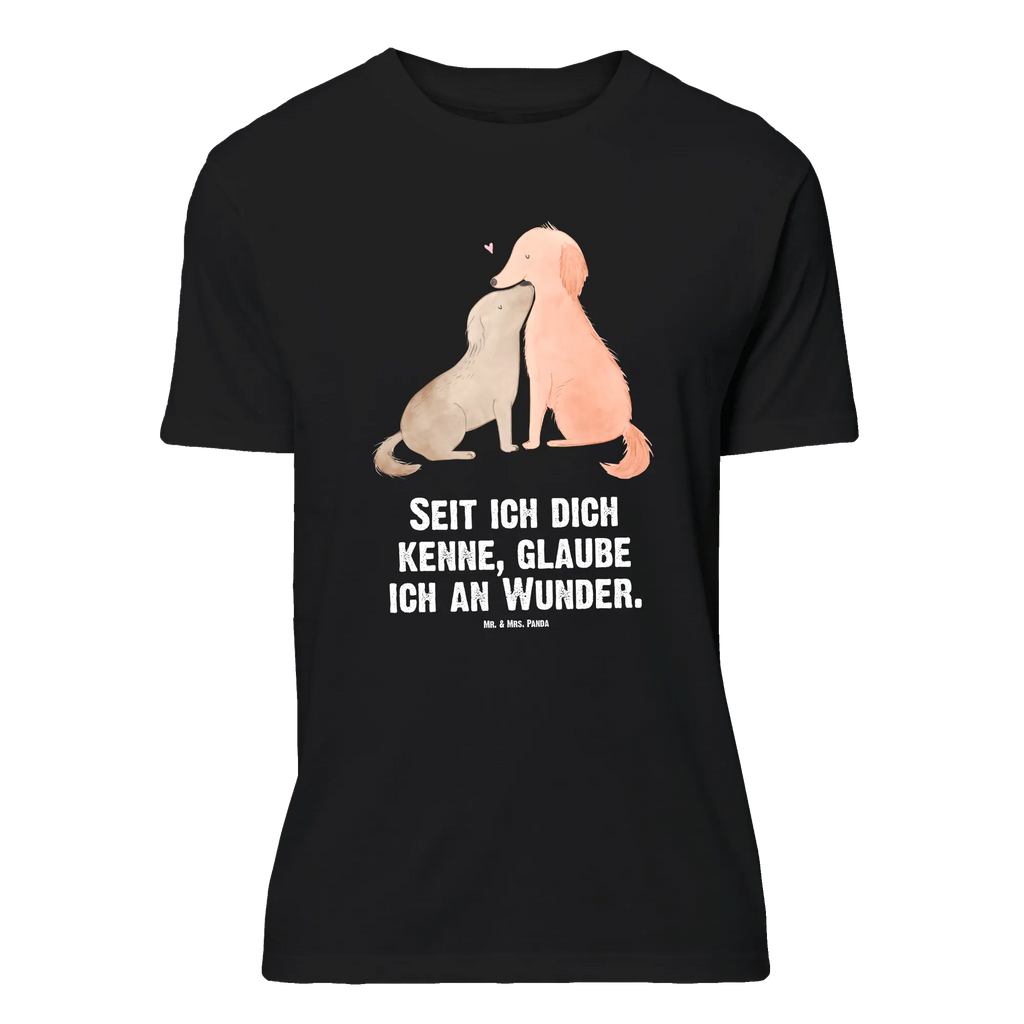 Lieblingsstück für Hundemenschen: Du suchst ein Geschenk, das von Herzen kommt? Unser Mr. & Mrs. Panda Größe L T-Shirt aus der Hunde Kollektion vereint süßes Design und liebevolle Botschaft. Auf dem schwarzen Shirt kuscheln zwei niedliche Hunde, begleitet vom Spruch „Seit ich dich kenne, glaube ich an Wunder.“ – eine zarte Aussage, die berührt.