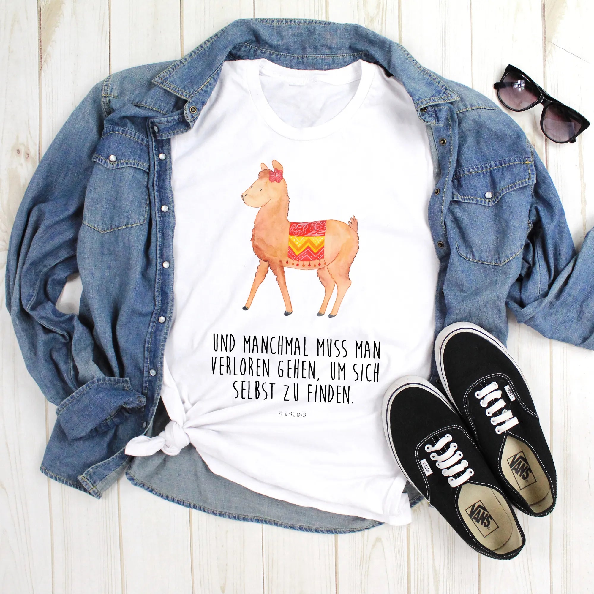 Dieses schöne T-Shirt zeigt ein entzückendes Alpaka mit Schleife und den liebevoll platzierten Spruch: „Und manchmal muss man verloren gehen, um sich selbst zu finden.“ Ein Motiv, das sowohl zum Schmunzeln als auch zum Nachdenken einlädt und das in unserer Alpaka Kollektion von Mrs. Panda mit Aquarellhandschrift gestaltet wurde.