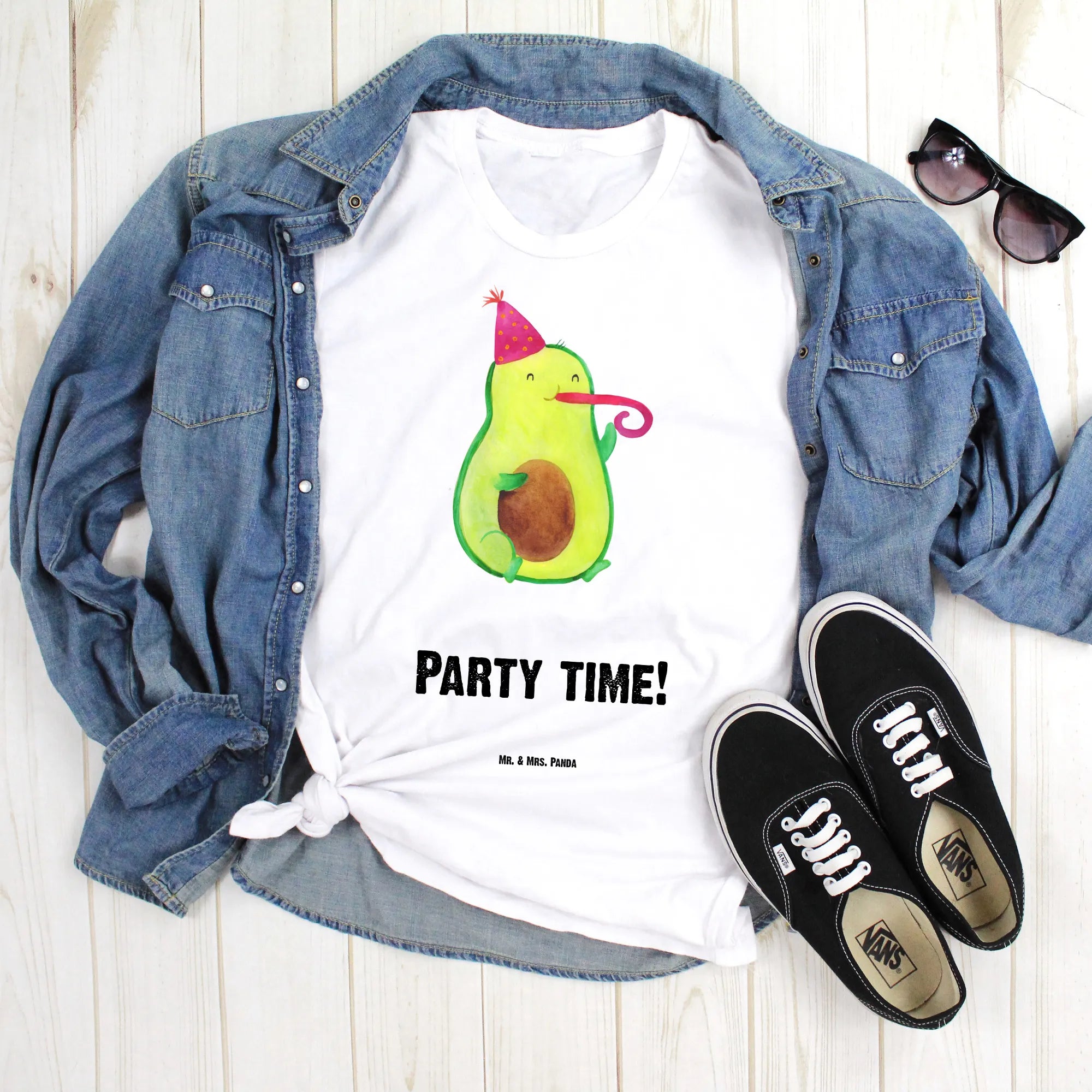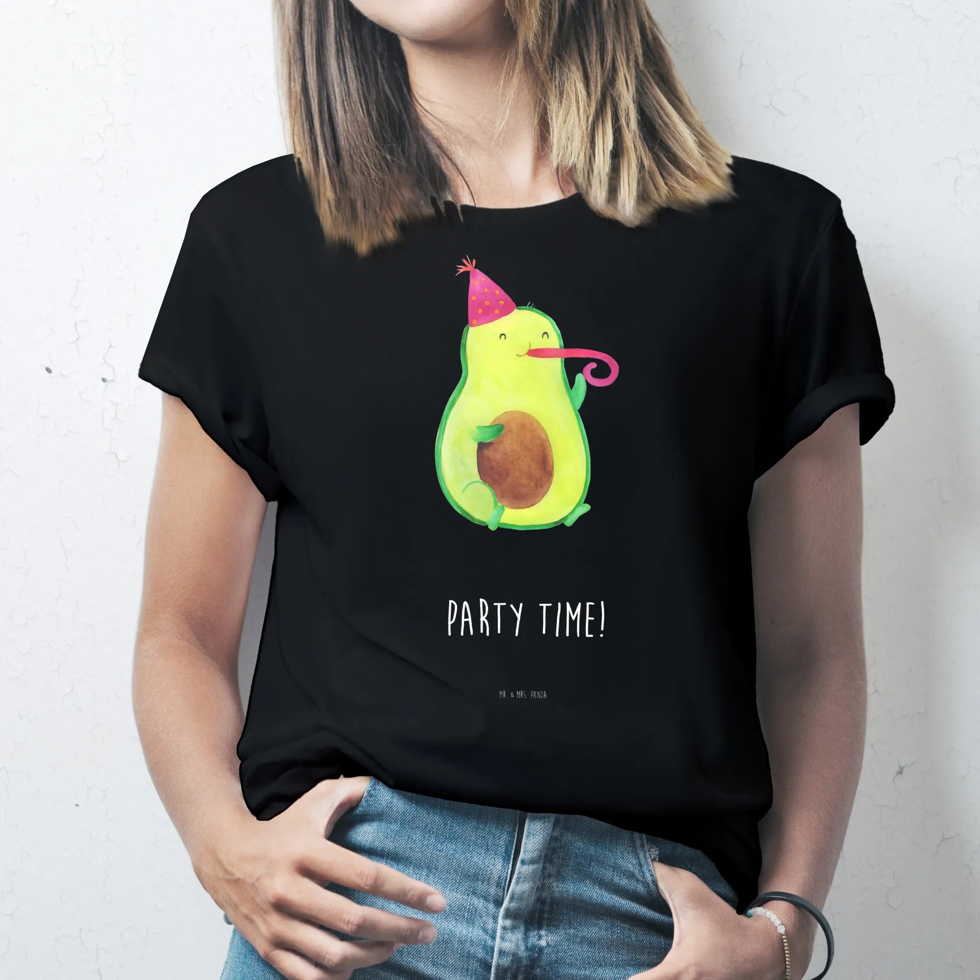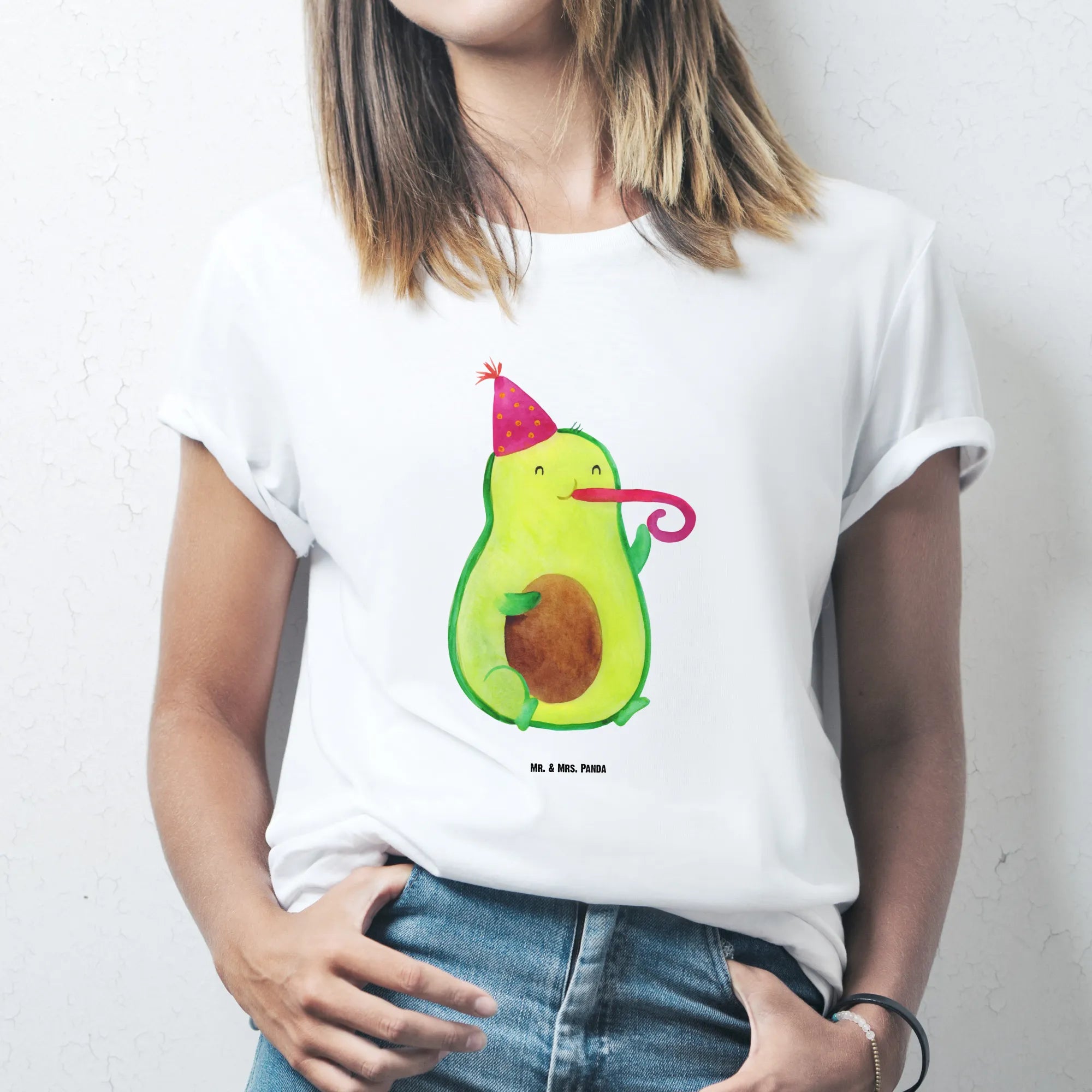 Die Avocado Kollektion von Mr. & Mrs. Panda steht für positive, handgezeichnete Motive, die ins Herz treffen. Unser Avocado Party Time Motiv ist verspielt und modern zugleich – es lässt sich hervorragend zu Jeans, Shorts oder als lustiges Statement-Piece bei Feierlichkeiten tragen.