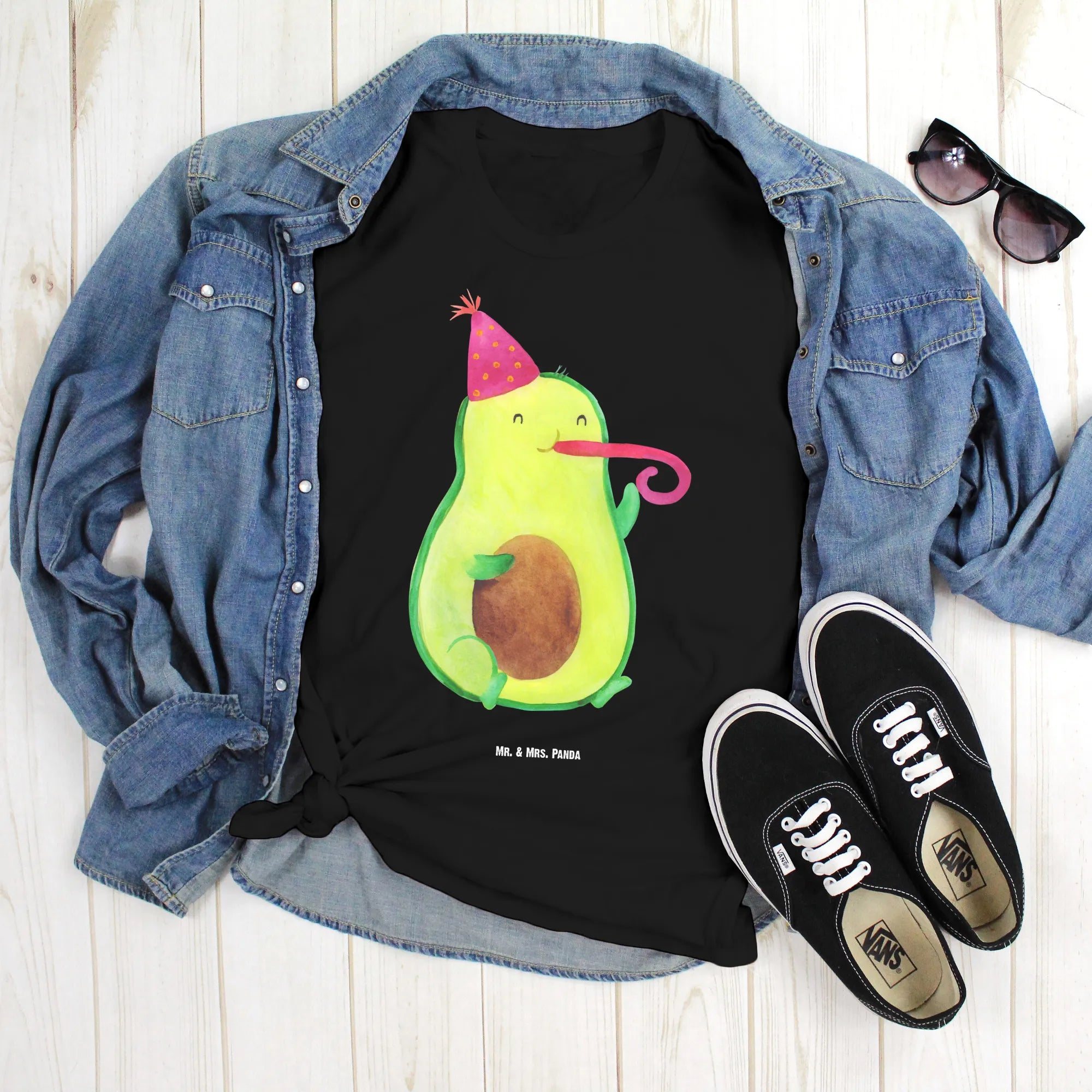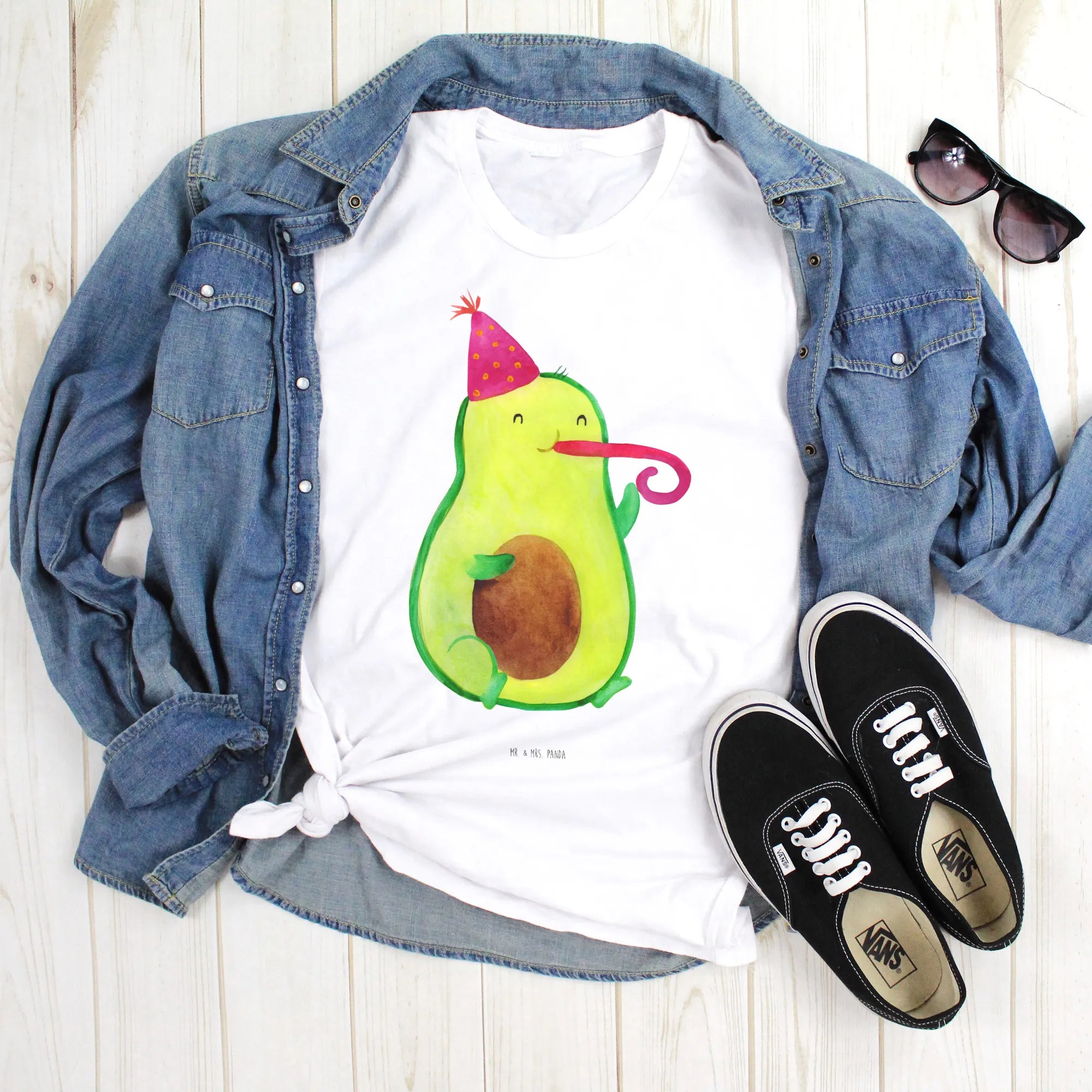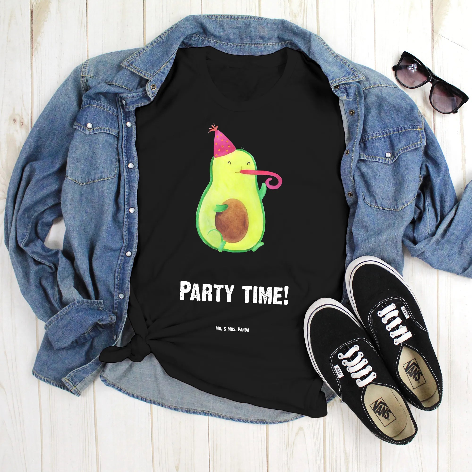 Die Avocado Kollektion von Mr. & Mrs. Panda steht für positive, handgezeichnete Motive, die ins Herz treffen. Unser Avocado Party Time Motiv ist verspielt und modern zugleich – es lässt sich hervorragend zu Jeans, Shorts oder als lustiges Statement-Piece bei Feierlichkeiten tragen.