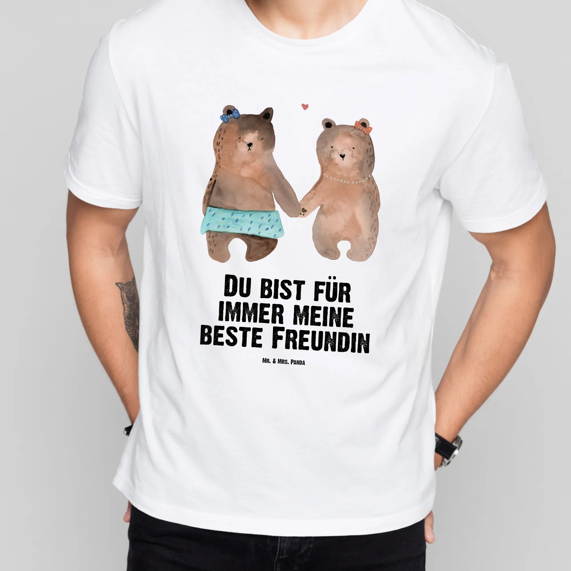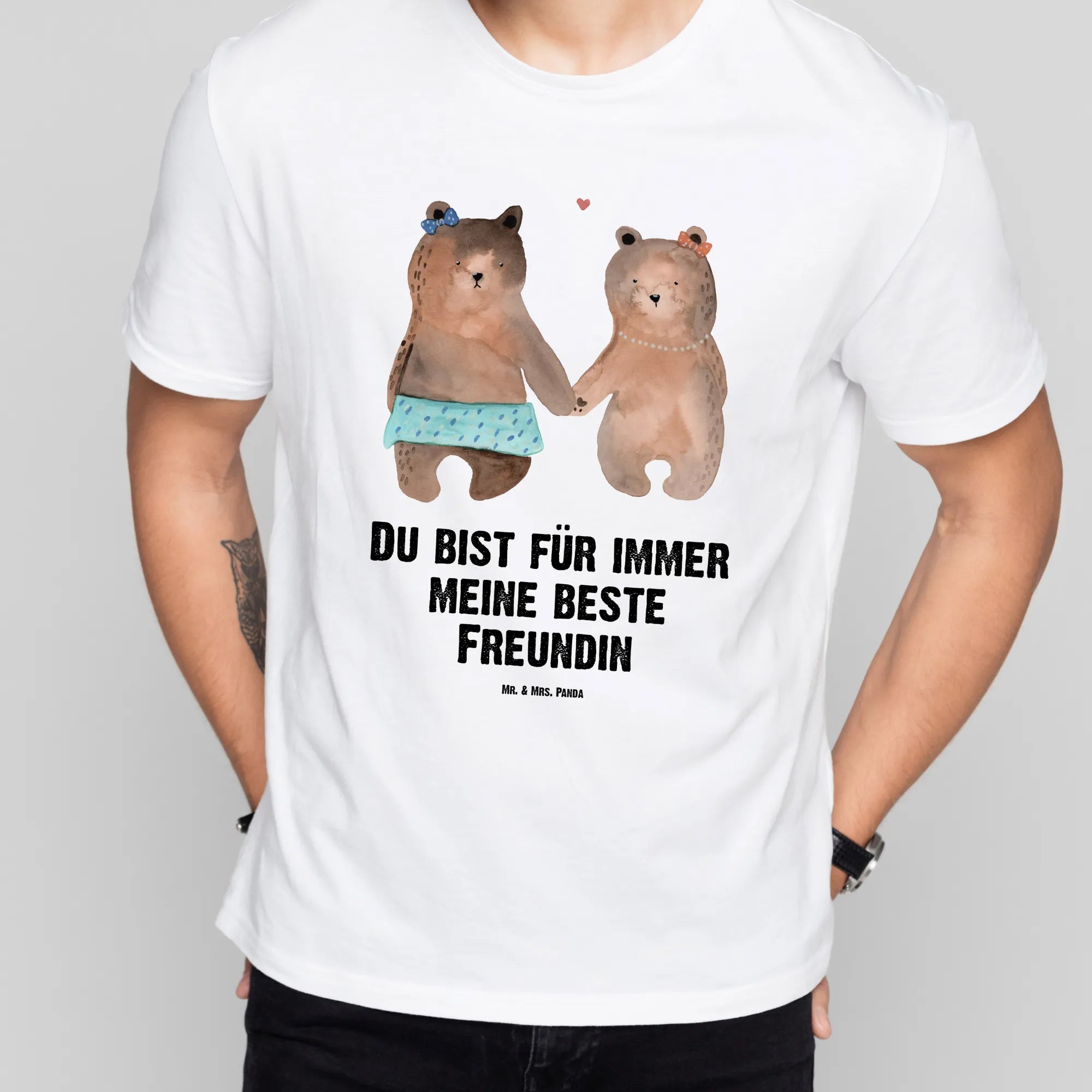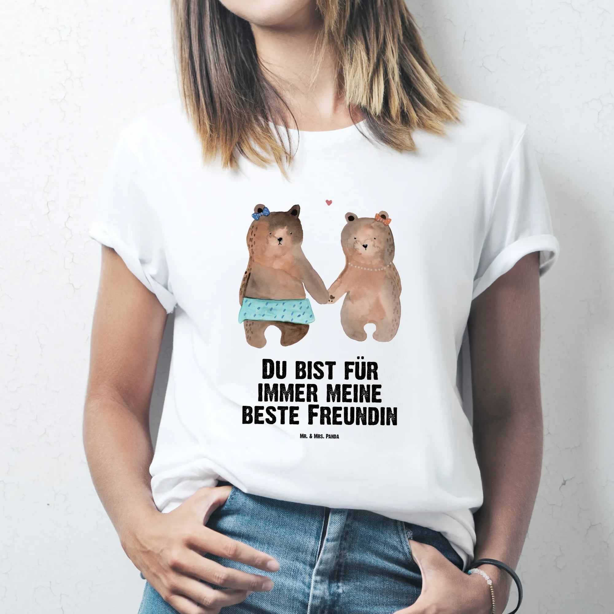 Jedes Design bei Mr. & Mrs. Panda wird von Mrs. Panda mit viel Liebe und Hingabe handgezeichnet. Die sanften Aquarellfarben verleihen dem Bären-Motiv eine Leichtigkeit und Wärme, die sofort ein Lächeln ins Gesicht zaubert. Der Slogan 'Du bist für immer meine beste Freundin' unterstreicht diese Geste zusätzlich und macht das Shirt zu einem unvergesslichen Geschenk für deine Kumpeline oder deinen Herzensmenschen.