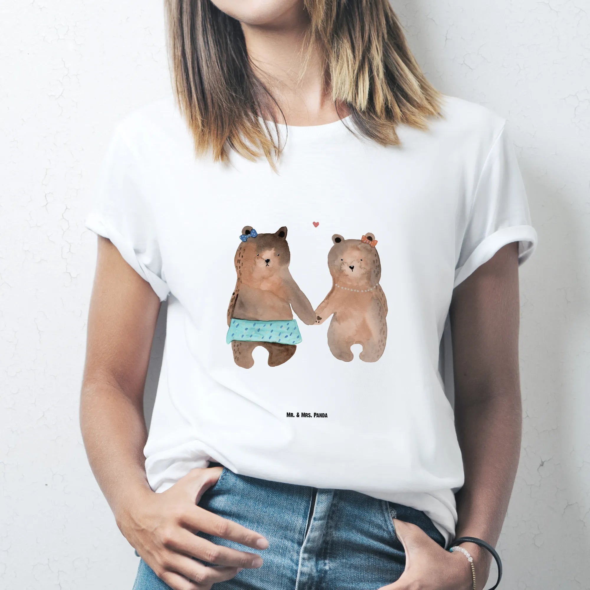 Bär Freundin Liebe Motiv – Zwei Bärinnen halten Händchen | Geschenk voller Zuneigung