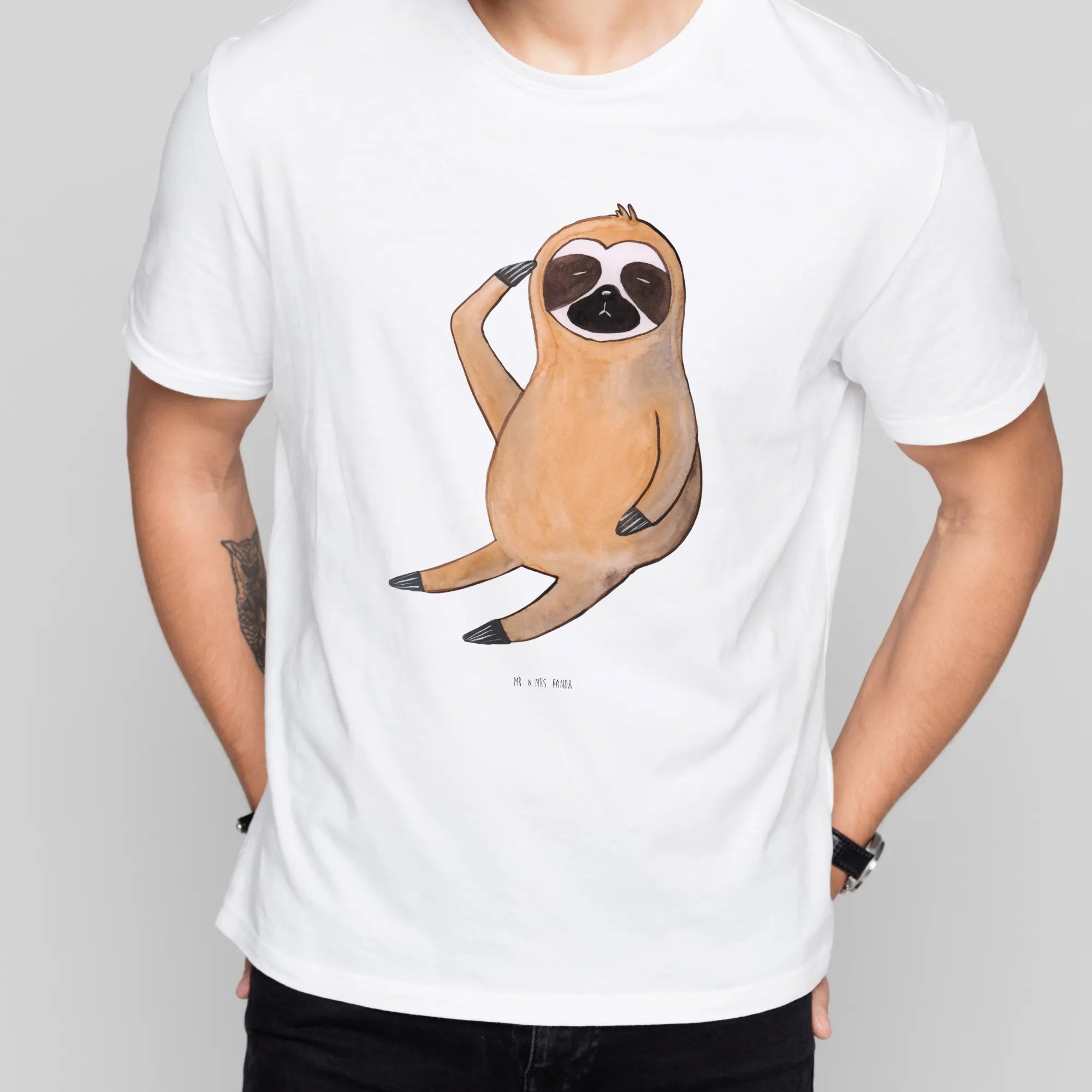 Das Faultier-Motiv ist liebevoll von Mrs. Panda handgezeichnet und steht für eine unbeschwerte und positive Lebensweise. Verschenke das T-Shirt an deine besten Freunde, deine Schwester oder deinen Partner und sorge für ein Lächeln auf ihrem Gesicht! Es eignet sich hervorragend für jede Gelegenheit: sei es zu einem entspannten Abend zuhause, beim Feiern mit Freunden oder einfach nur zum Chillen am Wochenende.