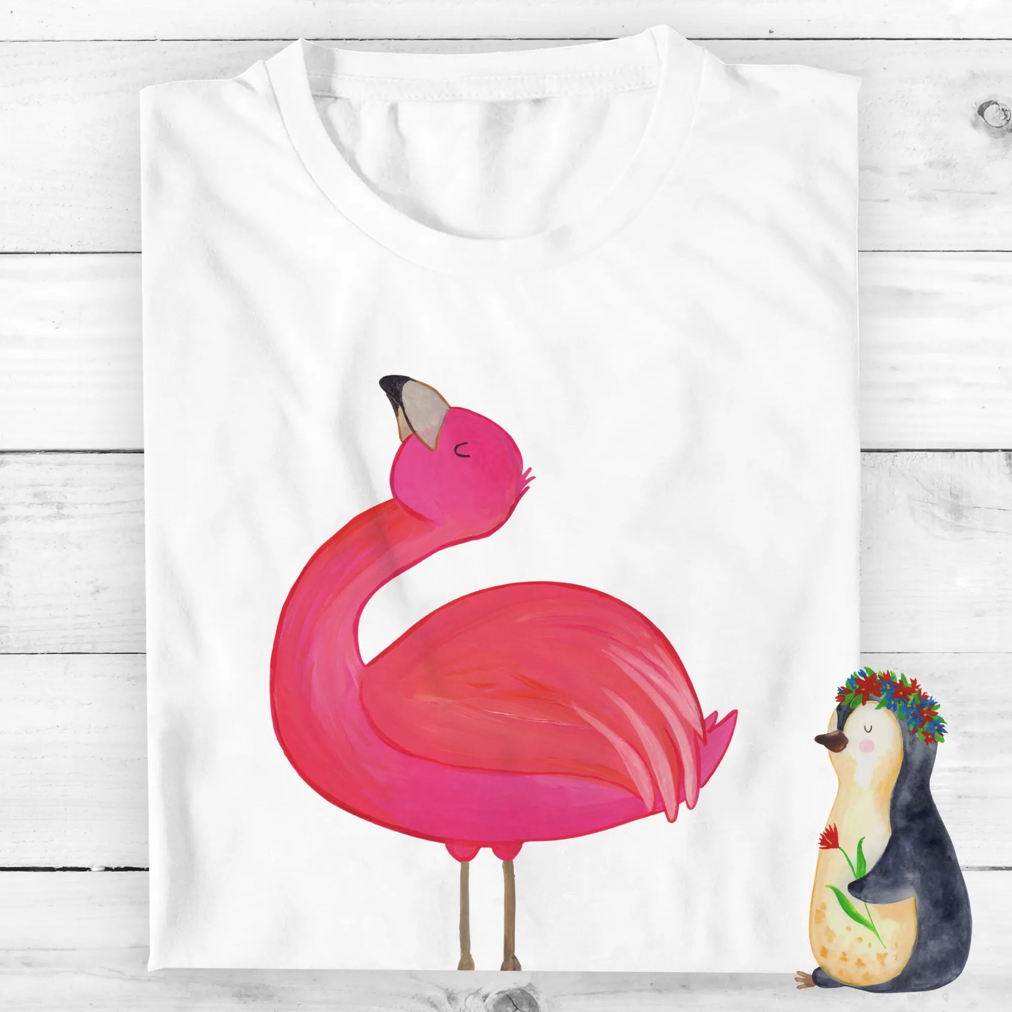 Bestelle jetzt dein T-Shirt mit dem stolzen Flamingo-Motiv und trage deine Freude Tag für Tag zur Schau.