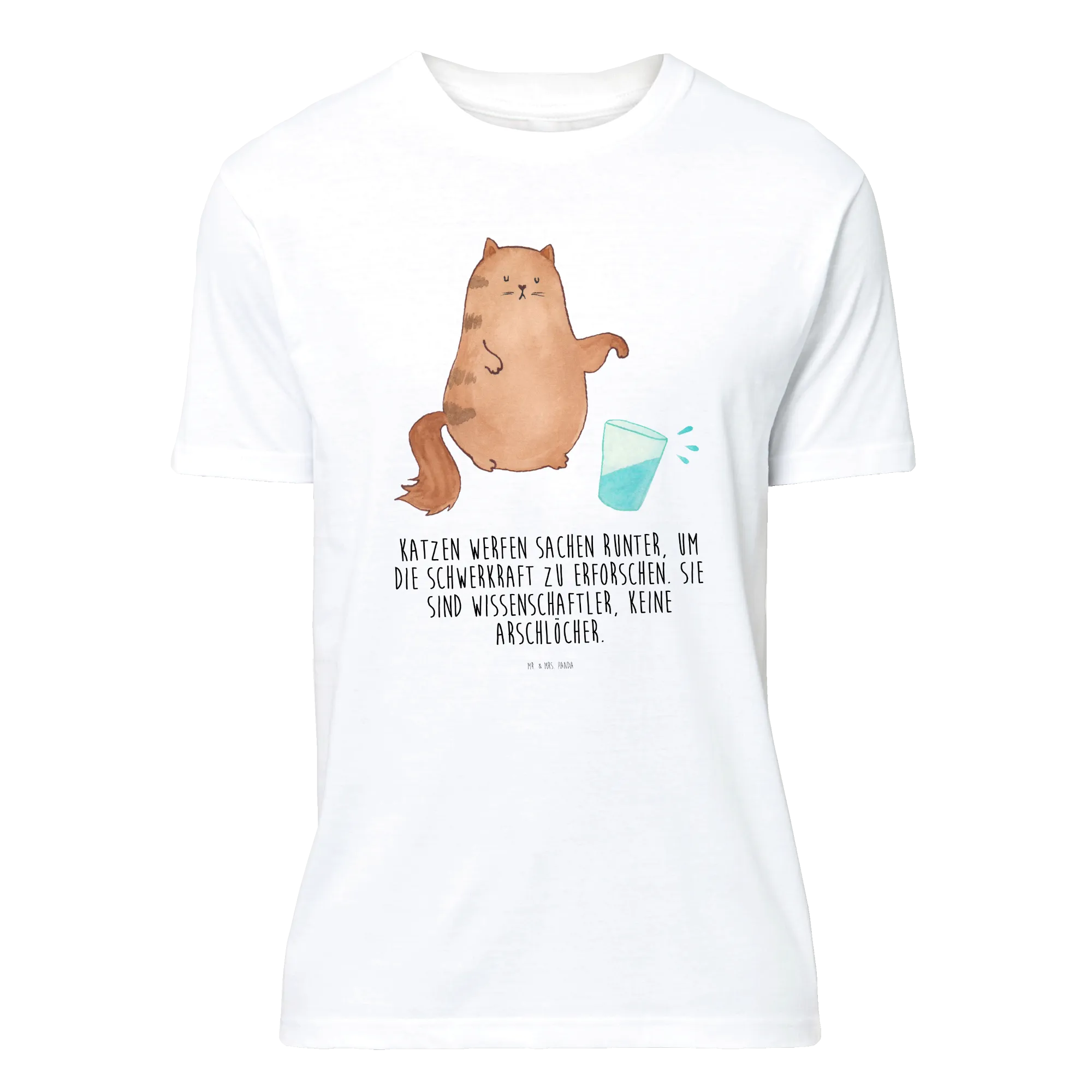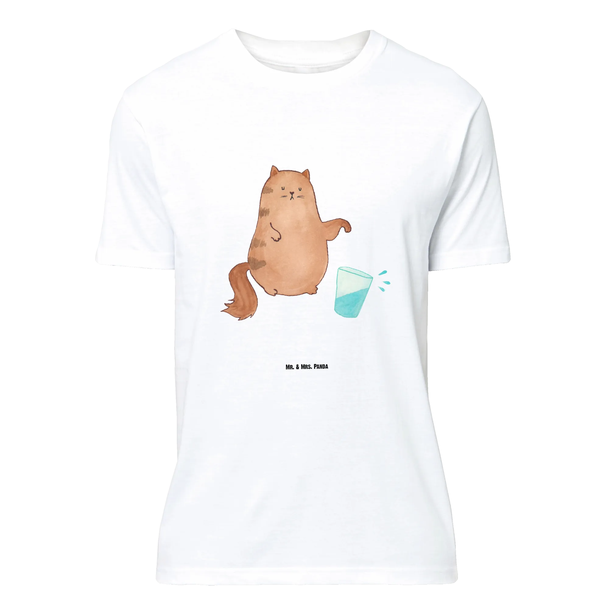 T-Shirt Standard Katze Wasserglas - Größe L T-Shirt - mit Spruch - Weiß