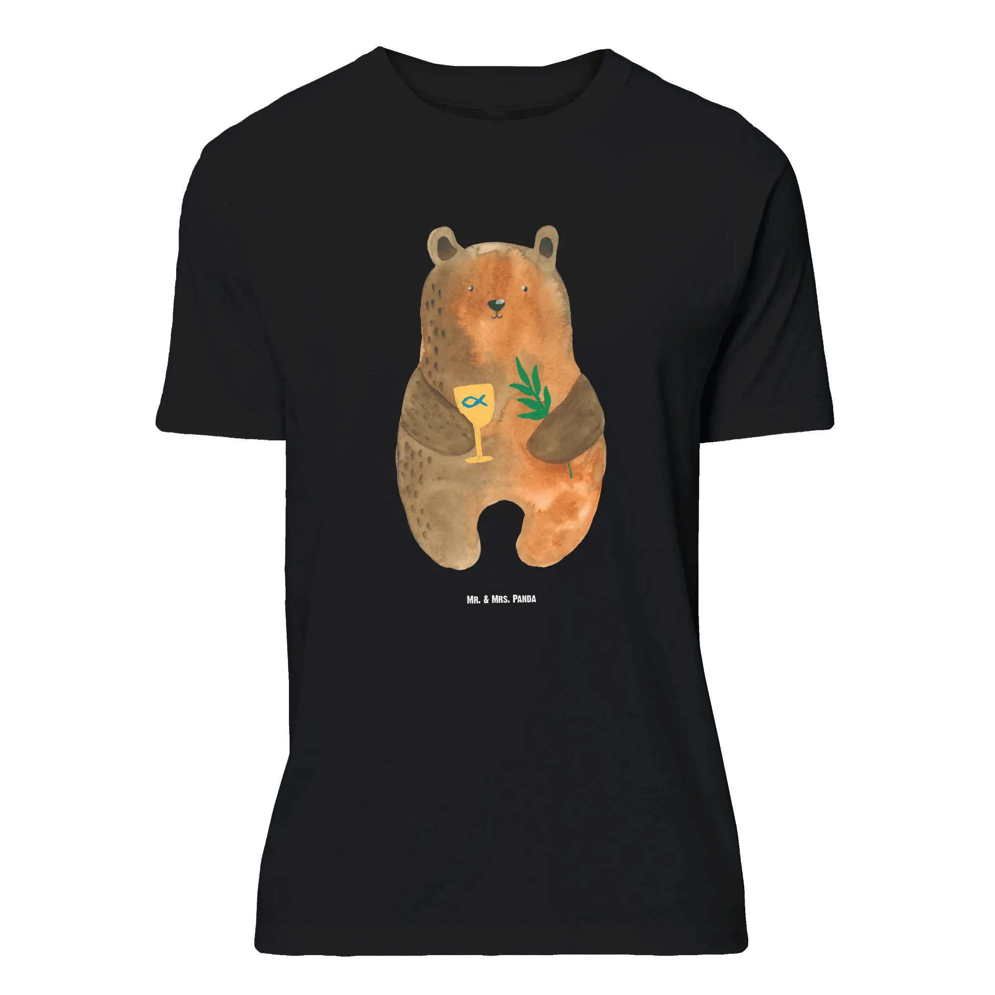 Feiere die Konfirmation mit Herz: Unser Mr. & Mrs. Panda Damen T-Shirt Größe L zeigt den liebevollen Konfirmation-Bär — ein niedlicher Begleiter mit einem goldenen Kelch und einem Zweig. Das handgezeichnete Motiv aus der Bär-Kollektion verbindet feinen Aquarellstil mit einer warmen, festlichen Ausstrahlung und passt perfekt zu besonderen Anlässen wie Konfirmation, Gottesdienst und Familienfeiern.