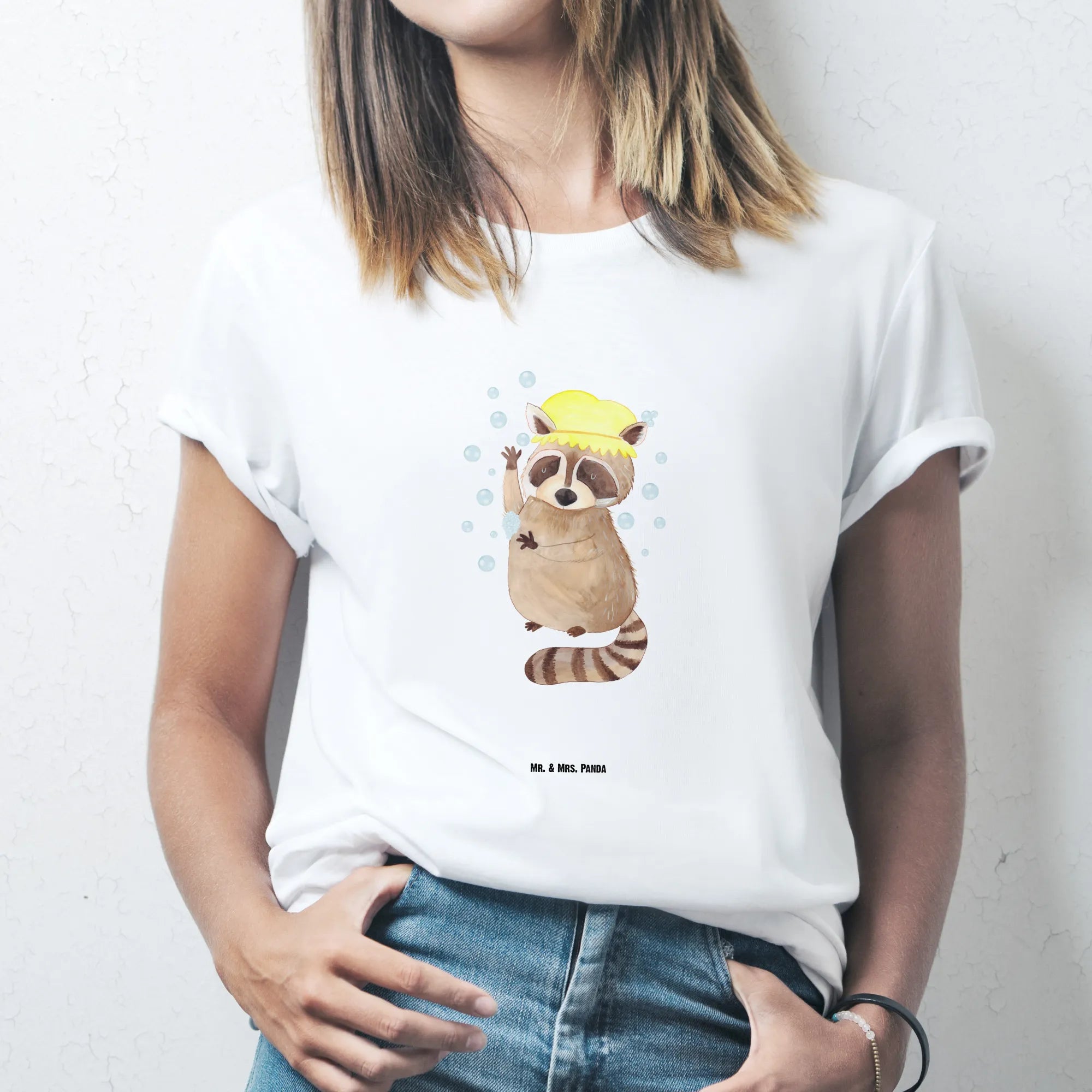 Suchst du ein Geschenk, das Herz und Humor verbindet? Unser Größe S T-Shirt mit dem niedlichen Waschbär-Motiv aus der Small World Kollektion von Mr. & Mrs. Panda ist genau das: liebevoll gezeichnet, lebensfroh und mit einem kleinen Augenzwinkern versehen. 🐾
