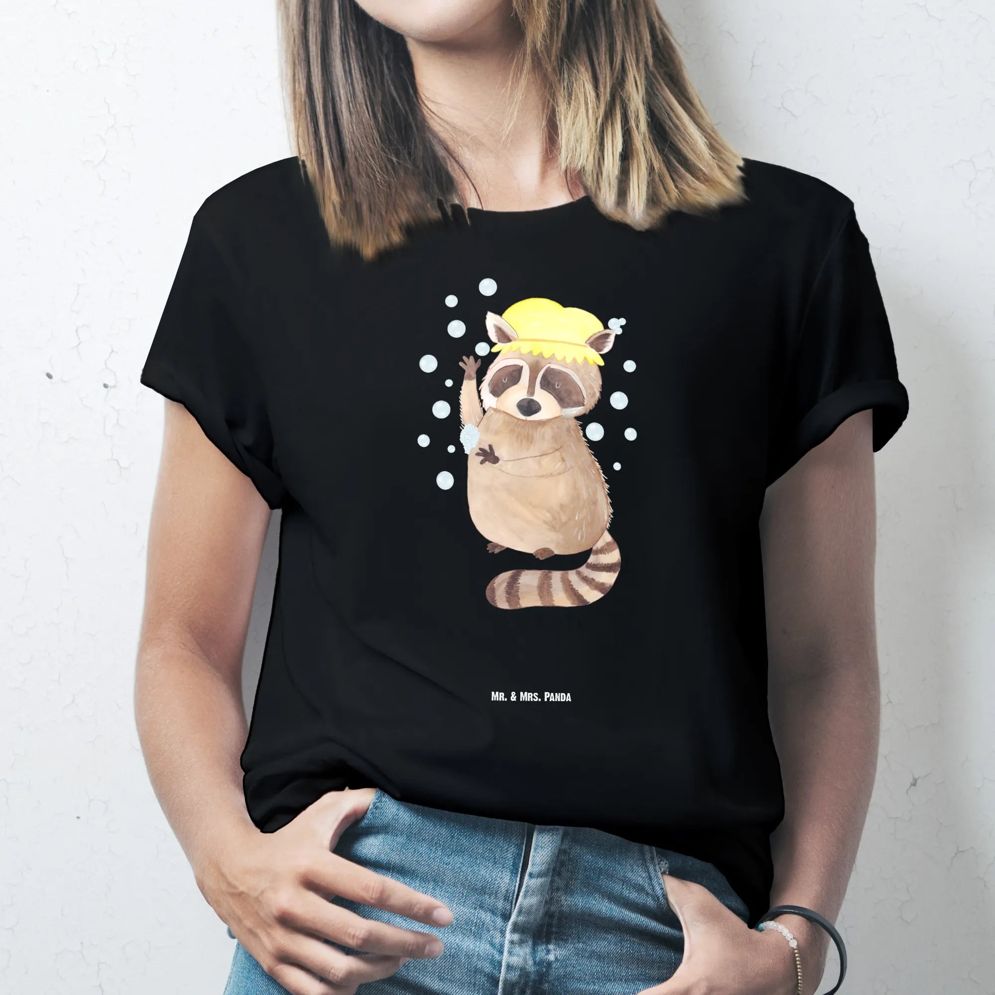 Mr. & Mrs. Panda Waschbär - Tagträumer Motiv | Süßer Duschender Waschbär mit Seifenblasen