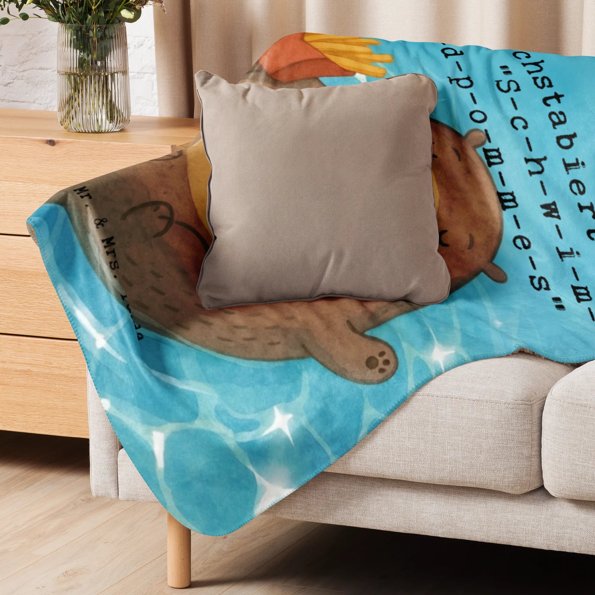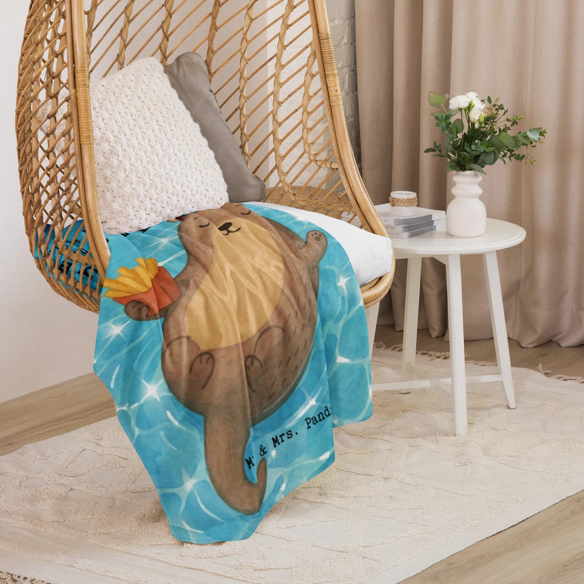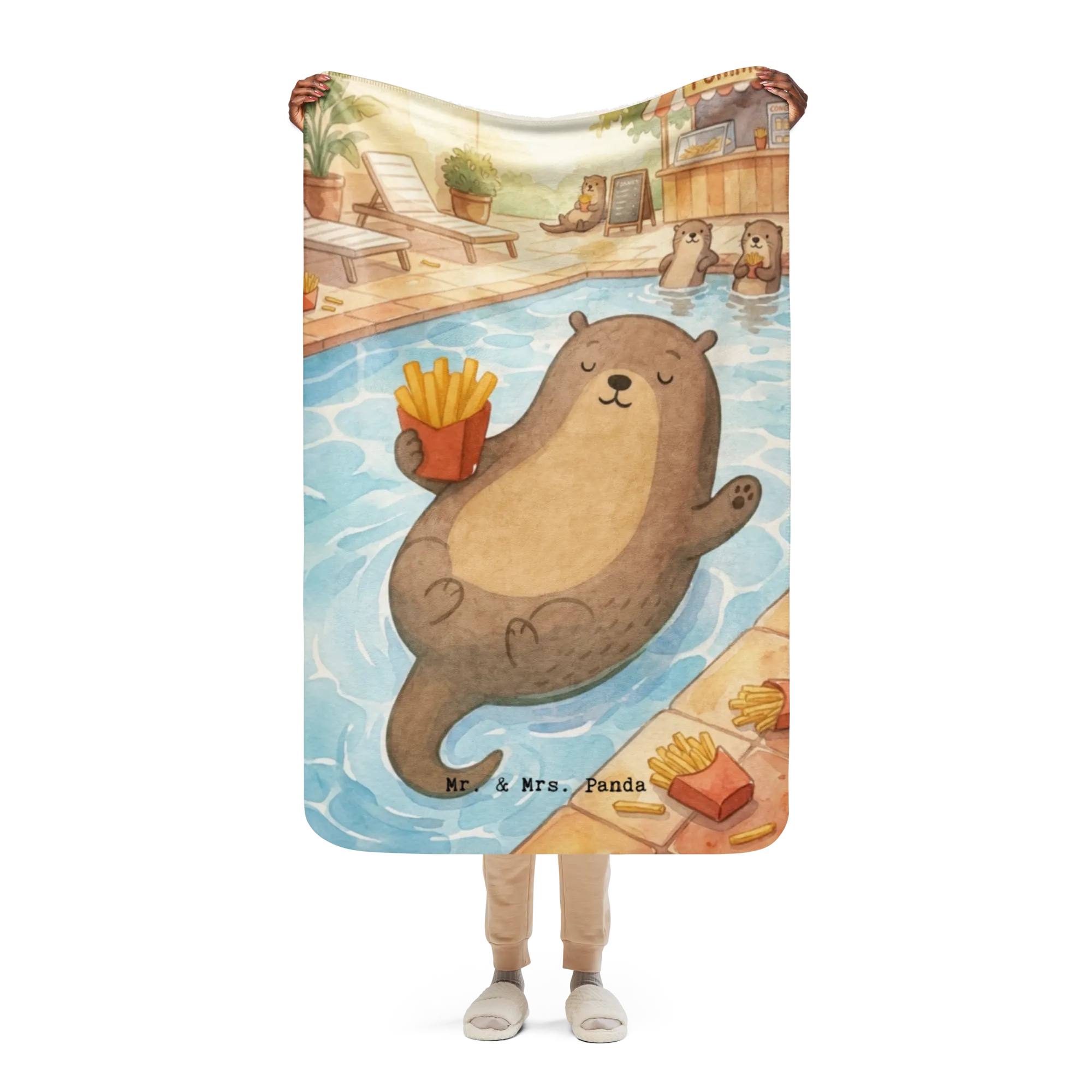 Tagesdecke Otter Schwimmbad Pommes Design - 130 x 155 cm - mit Spruch
