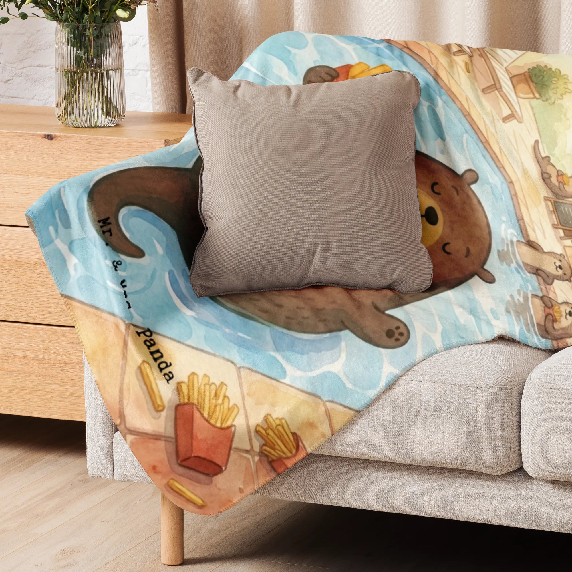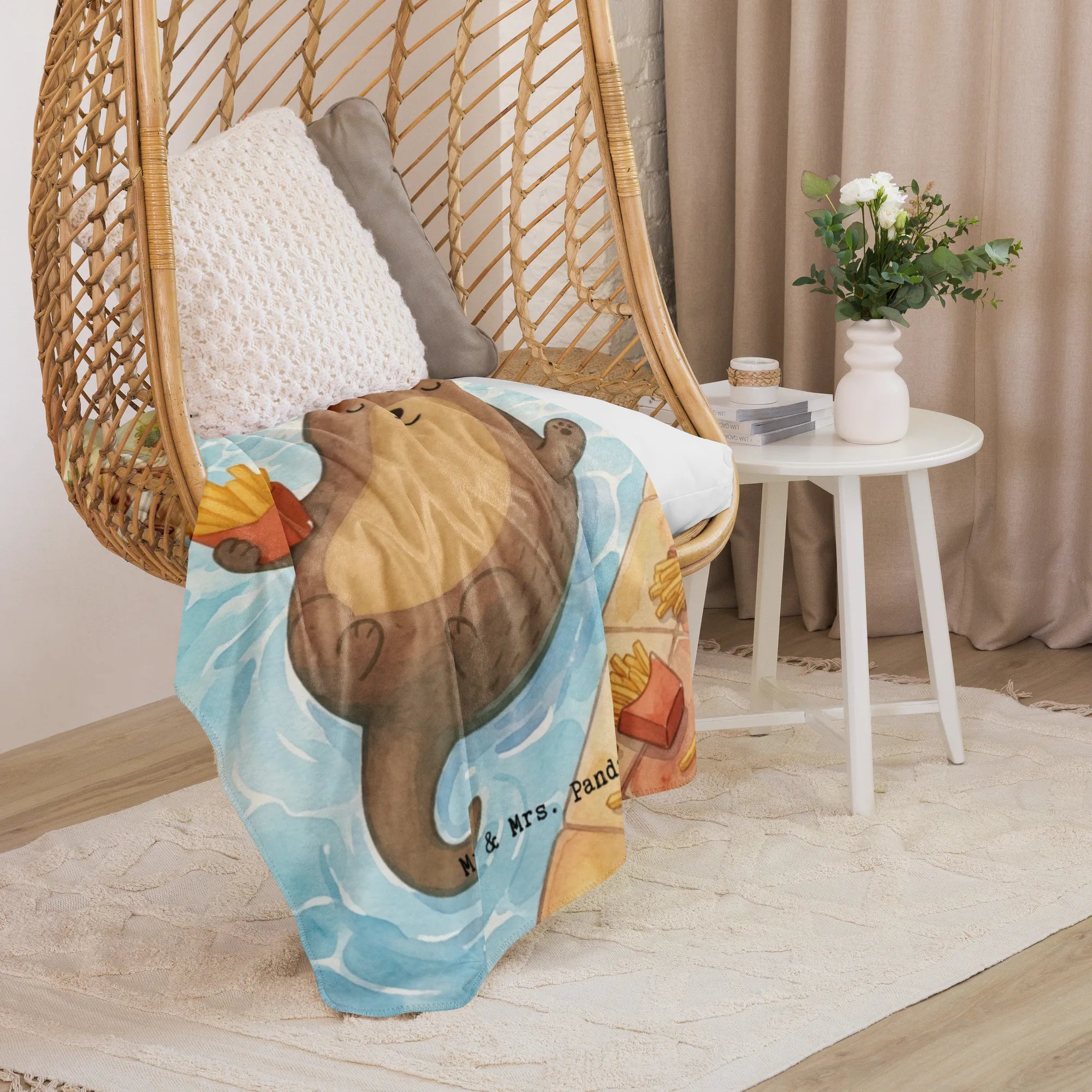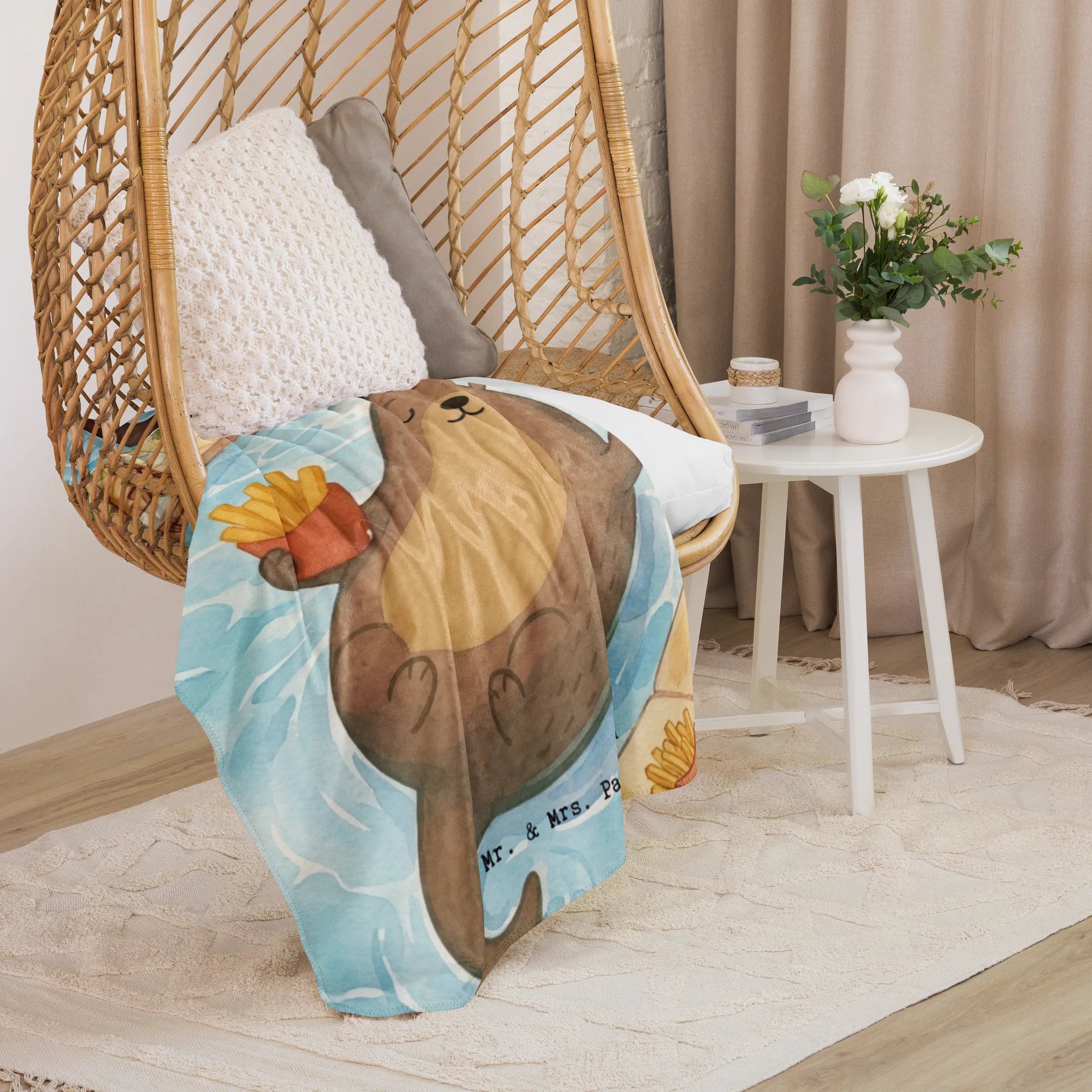 Tagesdecke Otter Schwimmbad Pommes Design - 130 x 155 cm - mit Spruch