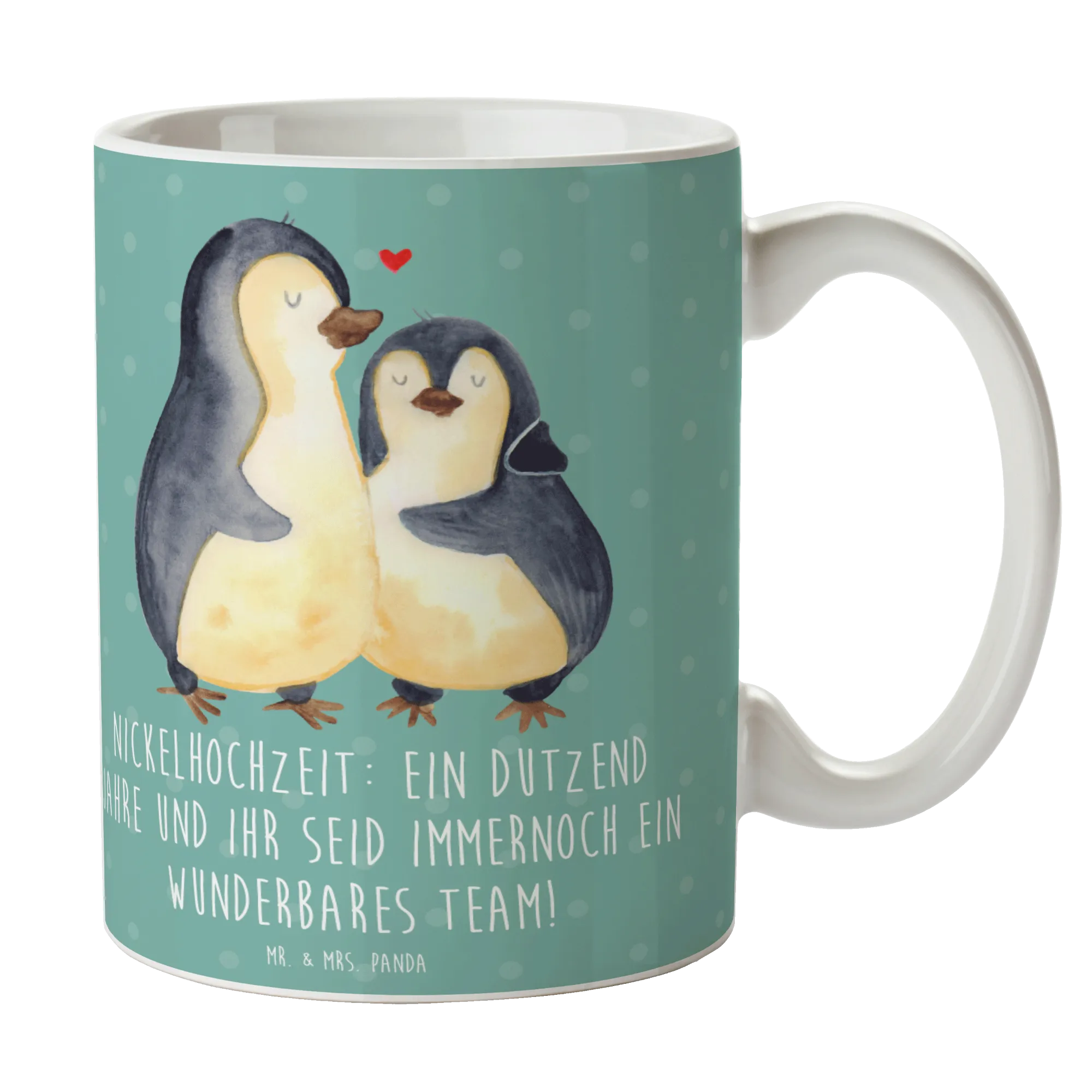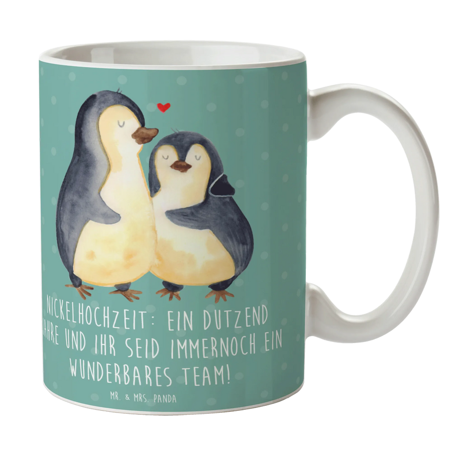 Entdecke die zauberhafte Tasse zur Nickelhochzeit von Mr. & Mrs. Panda – die perfekte Geschenkidee für Paare, die ihren 12. Hochzeitstag feiern! Diese wunderschöne, spülmaschinenfeste Keramiktasse mit dem inspirierenden Spruch "Nickelhochzeit: Ein Dutzend Jahre und ihr seid immernoch ein wunderbares Team!" ist nicht nur praktisch, sondern auch ein echtes Liebesbezeugung.