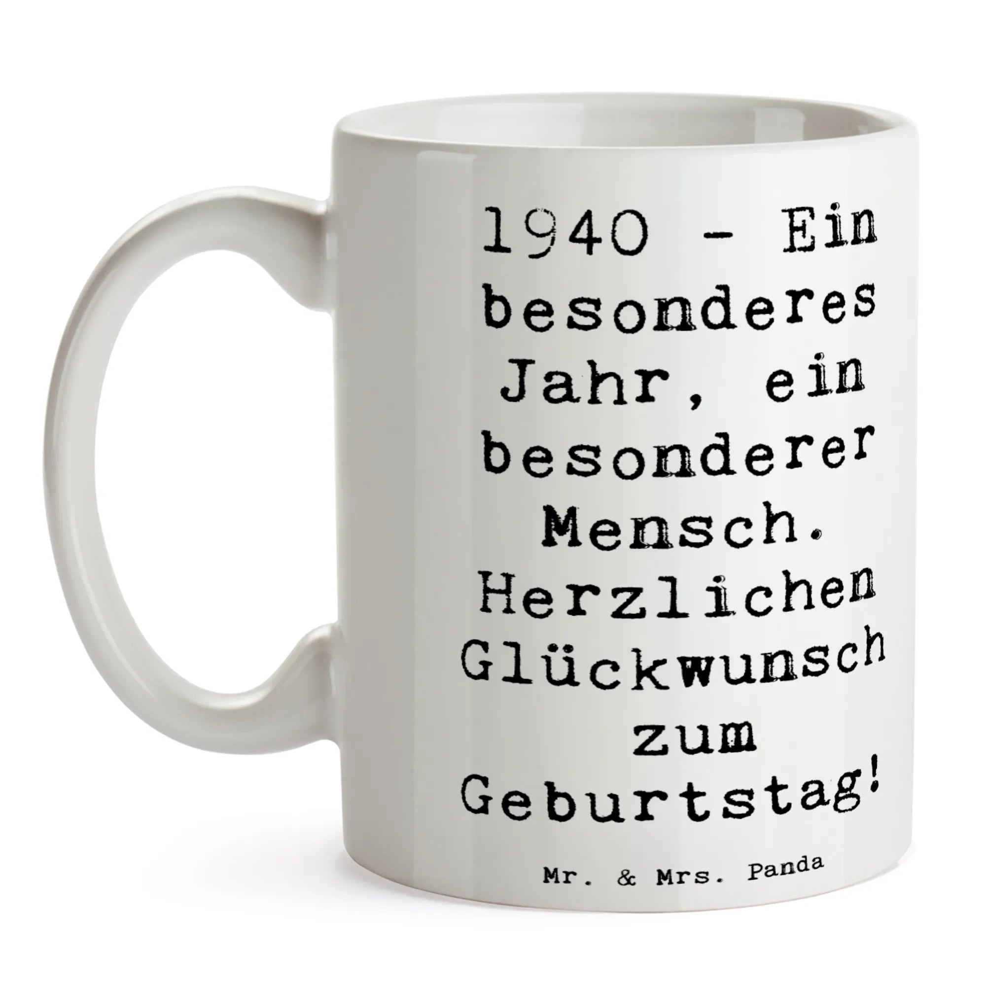 Mit dem liebevollen Spruch: „1940 - Ein besonderes Jahr, ein besonderer Mensch. Herzlichen Glückwunsch zum Geburtstag! ist diese Tasse eine ganz besondere Art, einem lieben Menschen zu zeigen, wie sehr man ihn schätzt.