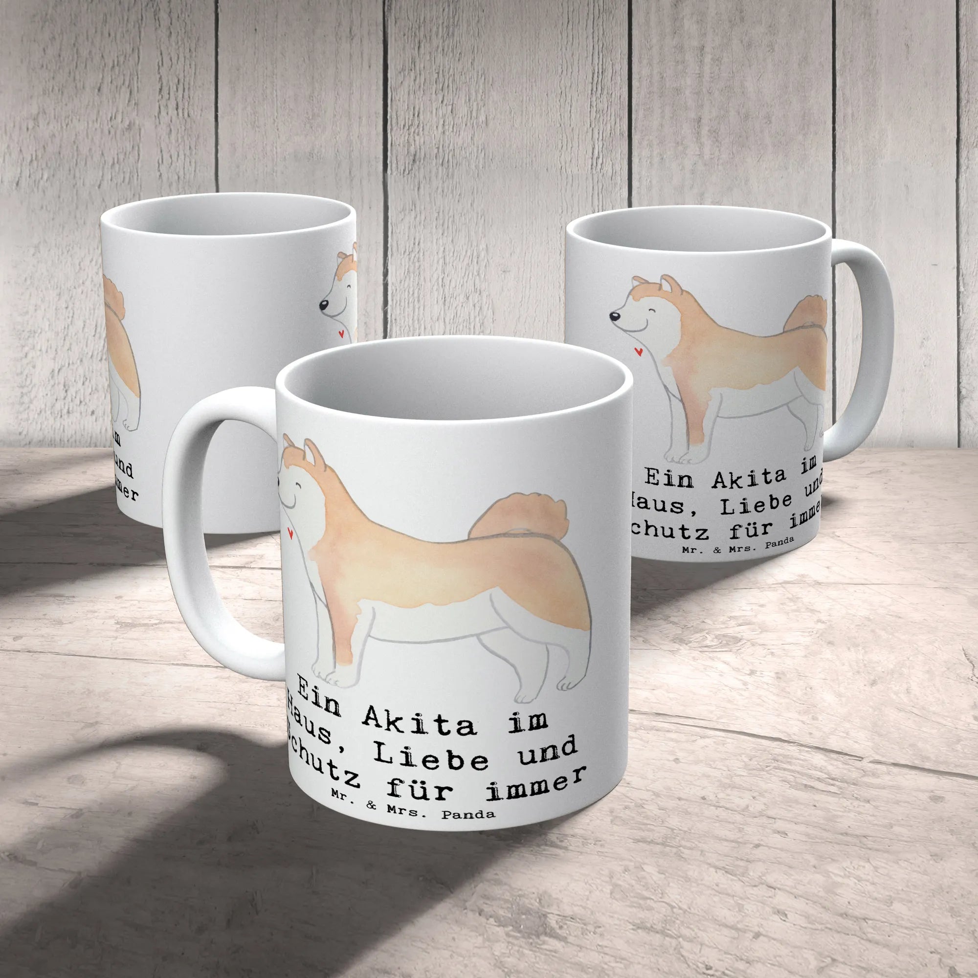 Du liebst Akitas? Dann ist diese Tasse von Mr. & Mrs. Panda ein Herzensstück für dich! Die Tasse zeigt ein zartes Aquarell-Akita-Motiv von Mrs. Panda und den liebevollen Spruch „Ein Akita im Haus, Liebe und Schutz für immer“. Sie ist Teil unserer einzigartigen Hunderassen Kollektion – perfekt für alle, die ihren Lieblingshund jeden Tag bei sich haben möchten. ☕️🐾
