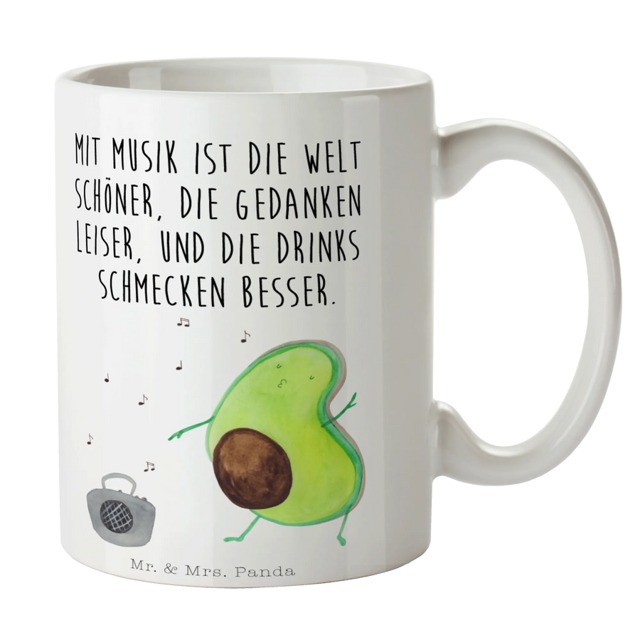 Ihr besonderes Design zeigt eine niedliche Avocado, die vor einem Ghettoblaster zur Musik tanzt – einfach zum Verlieben! Und die Botschaft „Mit Musik ist die Welt schöner, die Gedanken leiser, und die Drinks schmecken besser.“ sorgt gleich morgens für gute Laune.