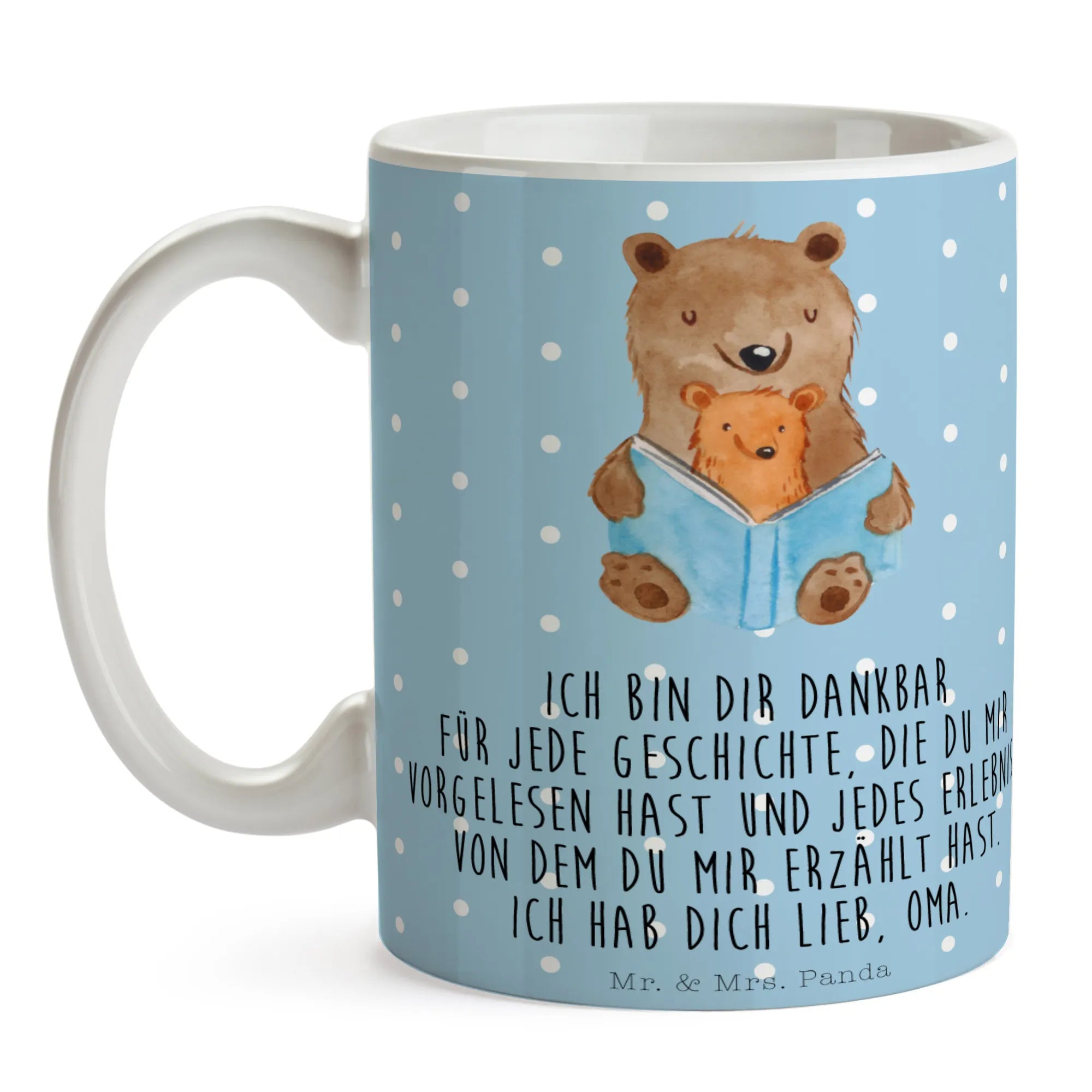 Sie ist nicht nur eine besondere Tasse für Oma, sondern auch ein wunderschönes Geschenk für den Muttertag, Vatertag oder einfach nur so, um jemandem zu zeigen, wie viel er dir bedeutet. Unsere Bären Buch Tasse ist außerdem mikrowellengeeignet und hält bis zu 2000 Waschgängen in der Spülmaschine stand.