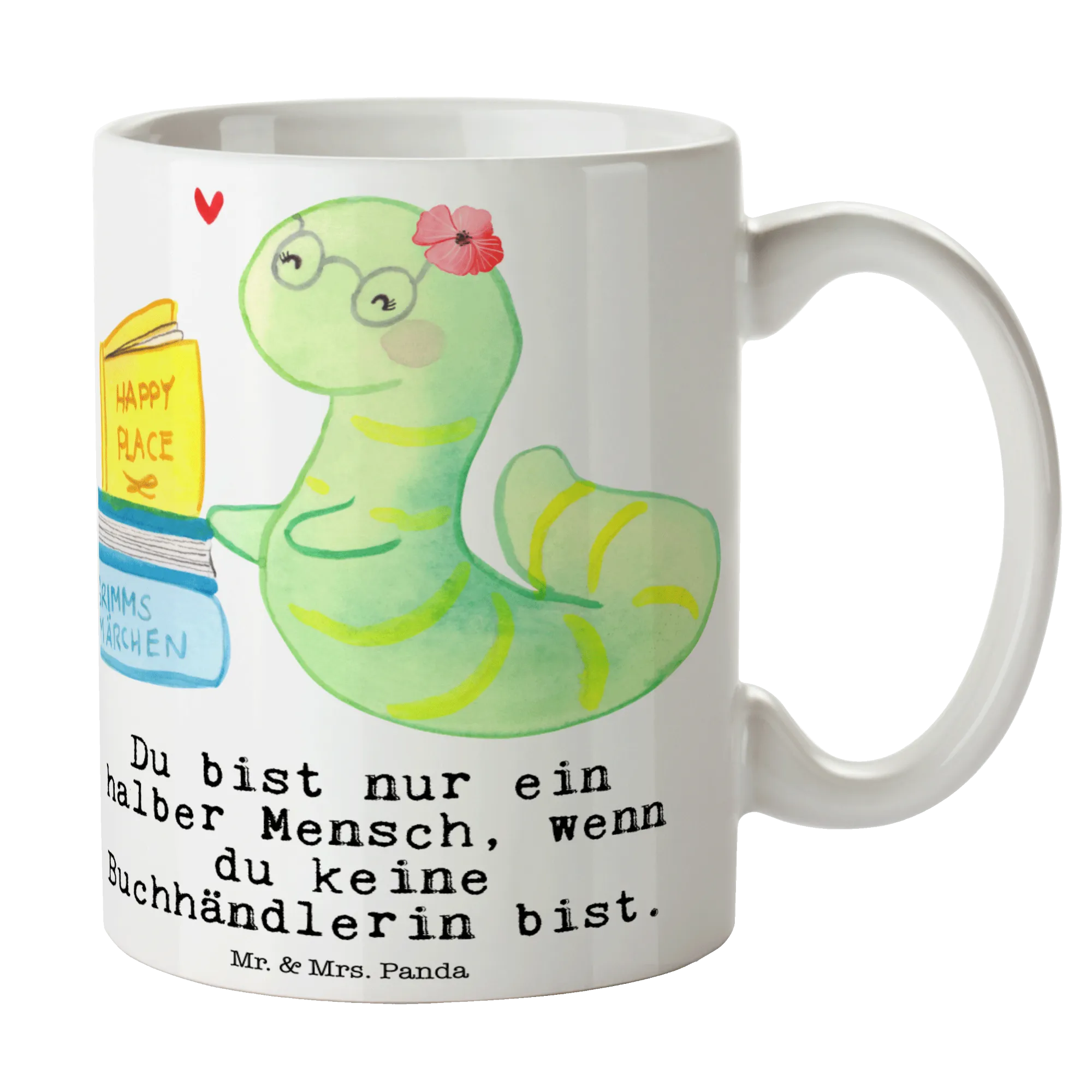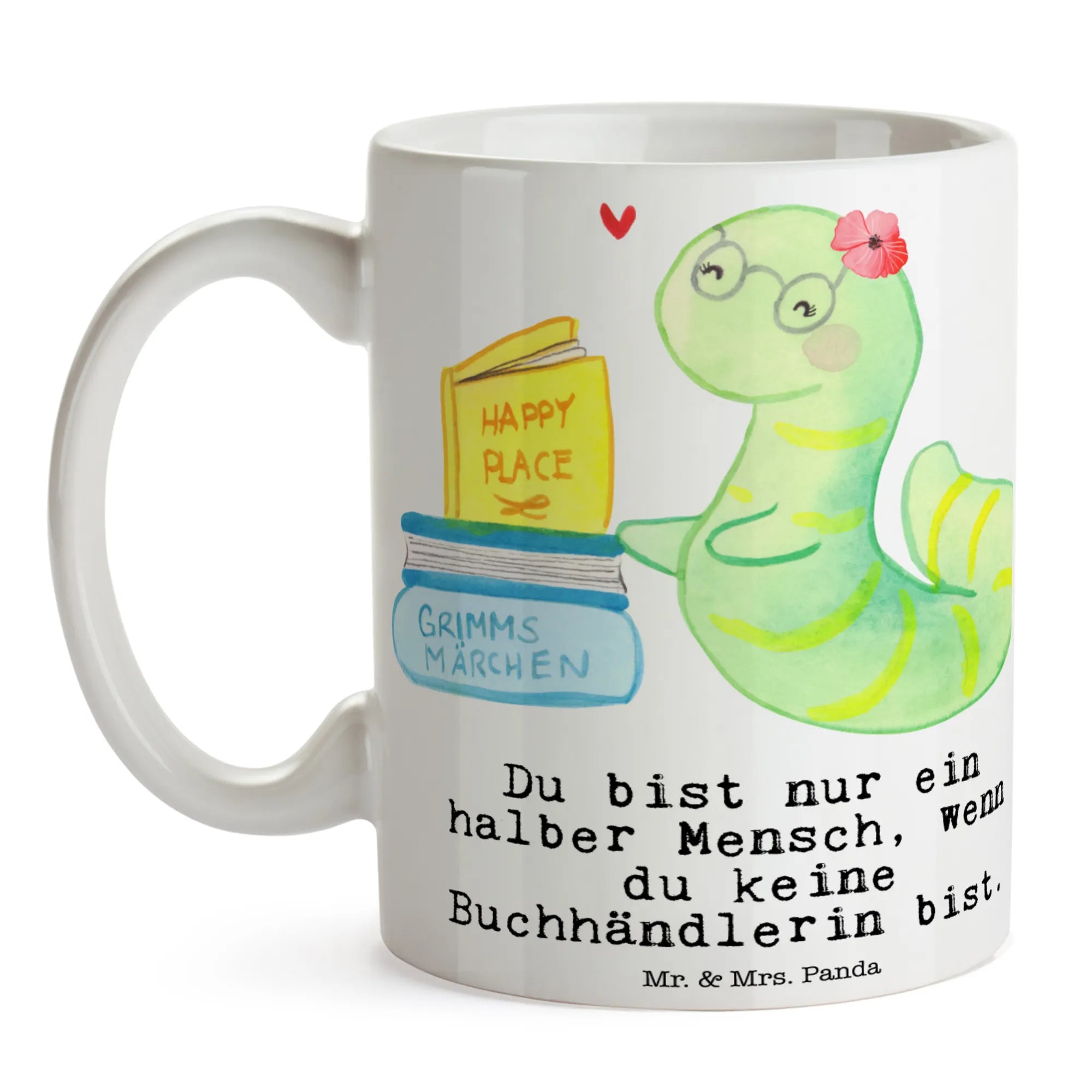 Wenn Du auf der Suche nach dem perfekten Geschenk für eine leidenschaftliche Buchhändlerin bist, dann ist unsere Tasse "Buchhändlerin mit Herz" von Mr. & Mrs. Panda genau das Richtige!