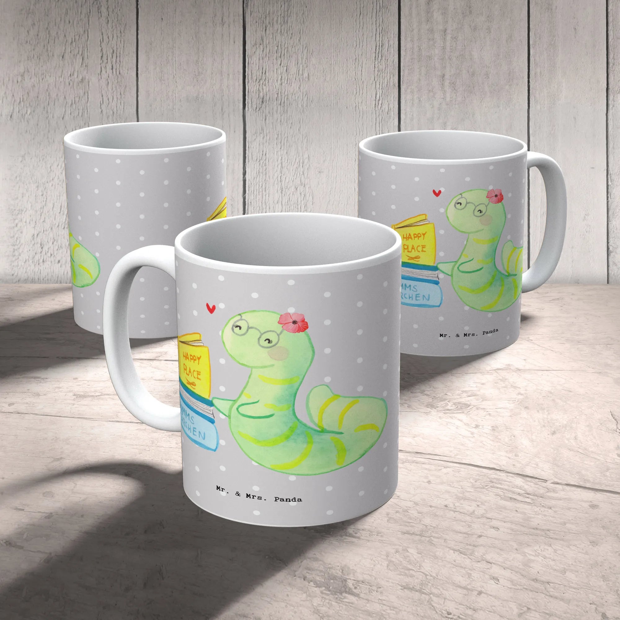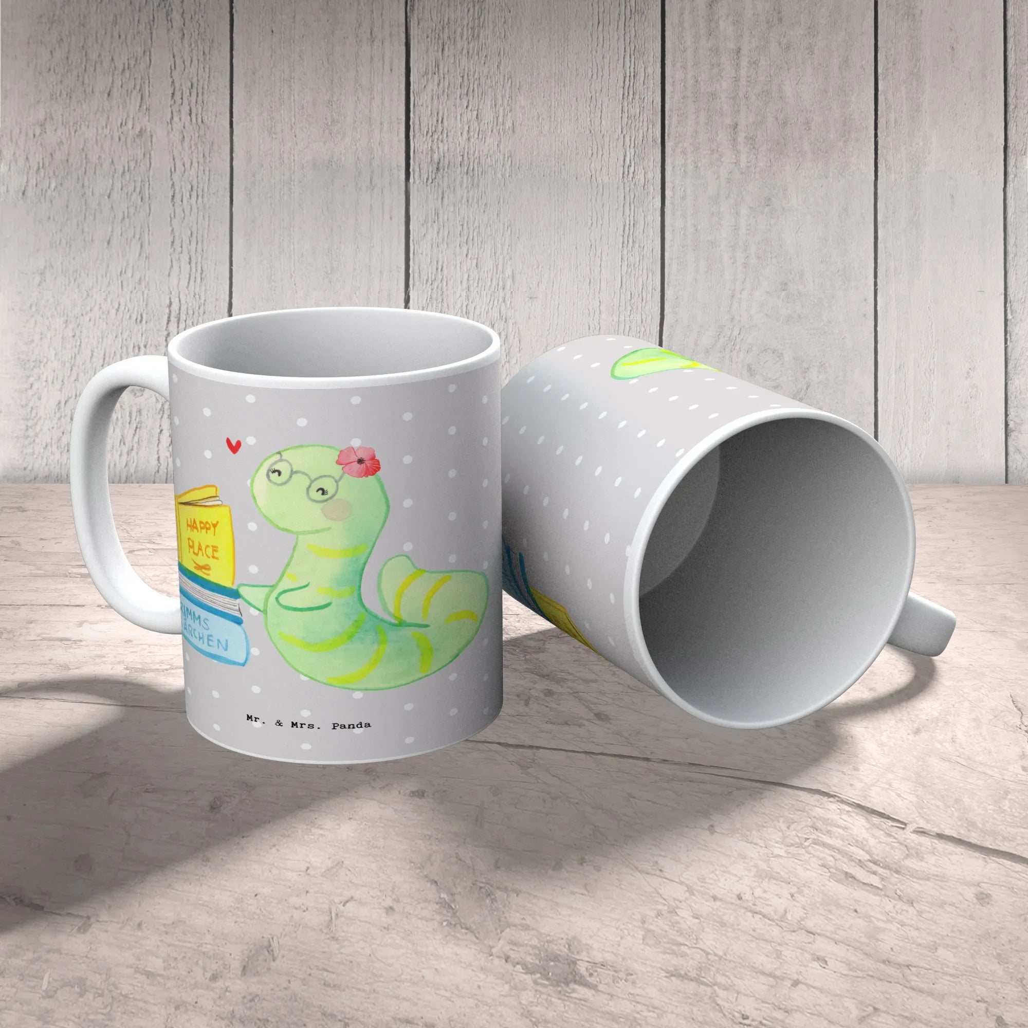 Diese wunderschöne spülmaschinenfeste Keramiktasse wird die Herzen aller Bücherwürmer höher schlagen lassen. Sie bietet nicht nur Platz für den perfekten Kaffee oder Tee, sondern strahlt auch mit ihrem charmanten Design, das liebevoll von Mrs. Panda gestaltet wurde.