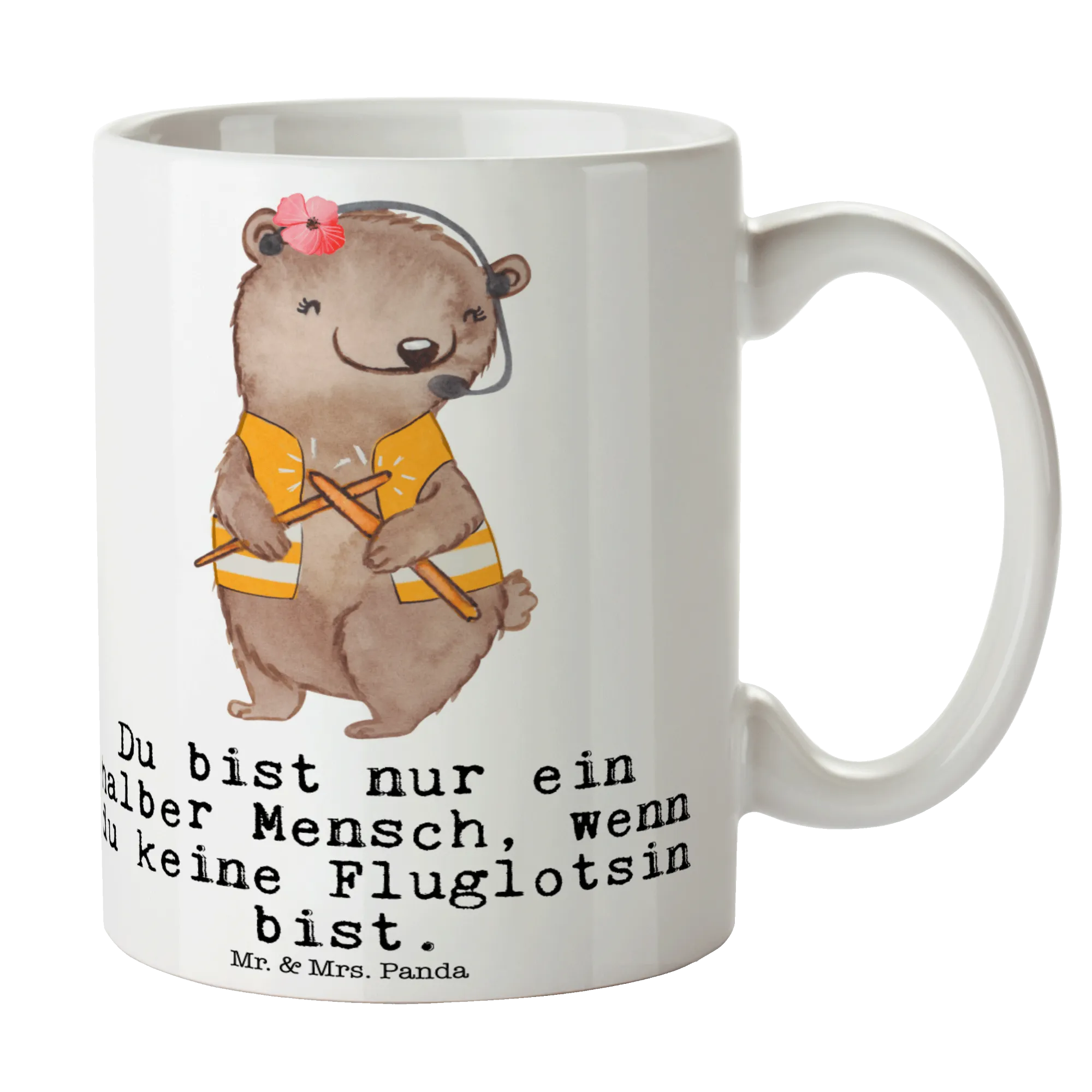 Die "Fluglotsin mit Herz" Tasse gehört zur kreativen Berufe Kollektion von Mr. & Mrs. Panda, die sich ideal anbietet, um Danke zu sagen oder einen besonderen Anlass zu feiern. Mit dieser Tasse drückst du Wertschätzung aus und zeigst, dass du an die harte Arbeit der Fluglotsen denkst. Die lustige Botschaft "Du bist nur ein halber Mensch, wenn du keine Fluglotsin bist" macht sie zu einem echten Hingucker und sorgt für Heiterkeit unter den Kollegen. Jeder Schluck aus dieser Tasse ist eine Hommage an die Herausforderungen, die Fluglotsen täglich meistern.