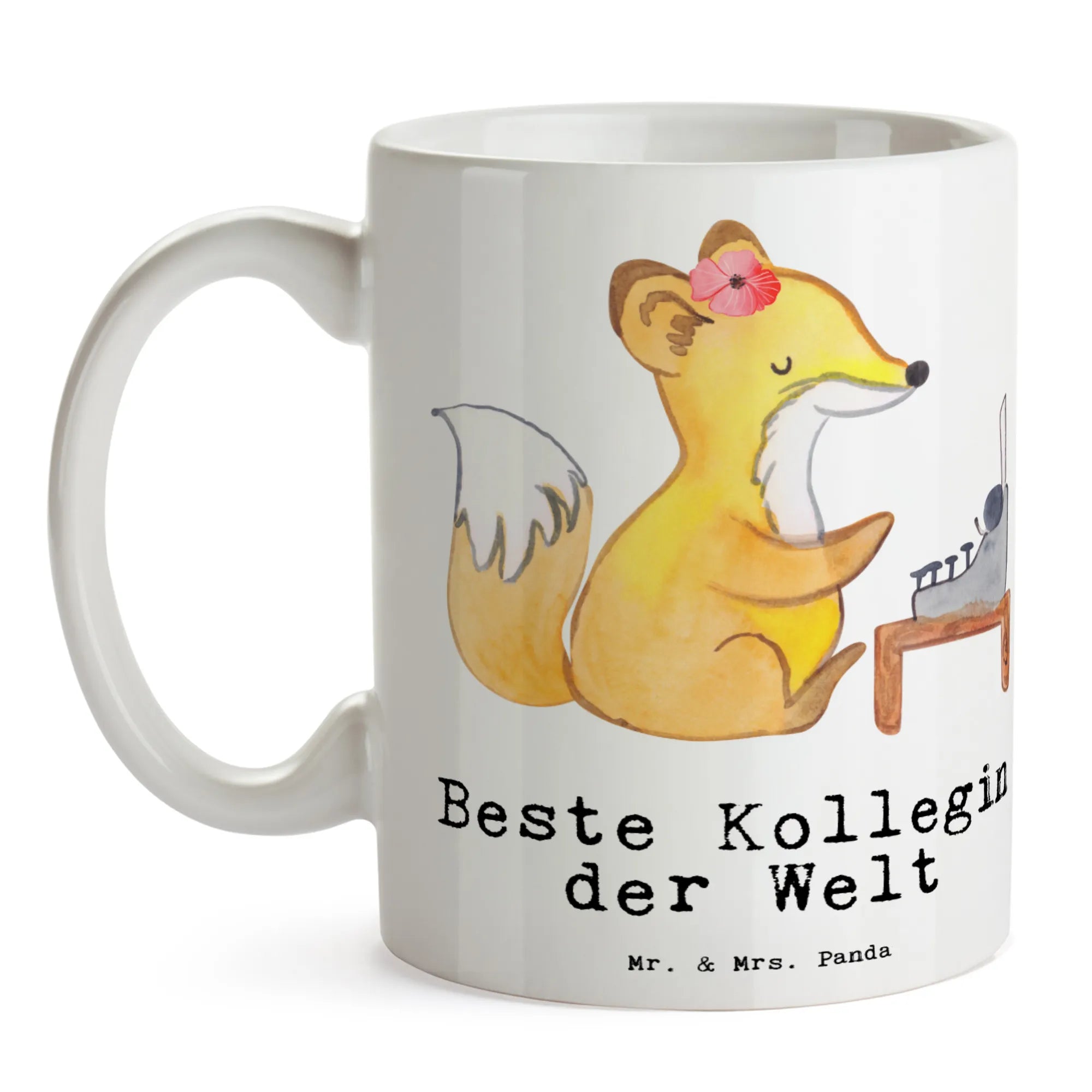 Du suchst das perfekte Geschenk für deine beste Kollegin? Dann ist die Tasse "Fuchs Beste Kollegin der Welt" aus der charmanten Beziehungen-Kollektion von Mr. & Mrs. Panda genau das Richtige! Diese wunderschöne Keramiktasse ist nicht nur ein toller Hingucker, sondern auch ein persönliches Andenken, das jeder Kollegin ein Lächeln ins Gesicht zaubert.