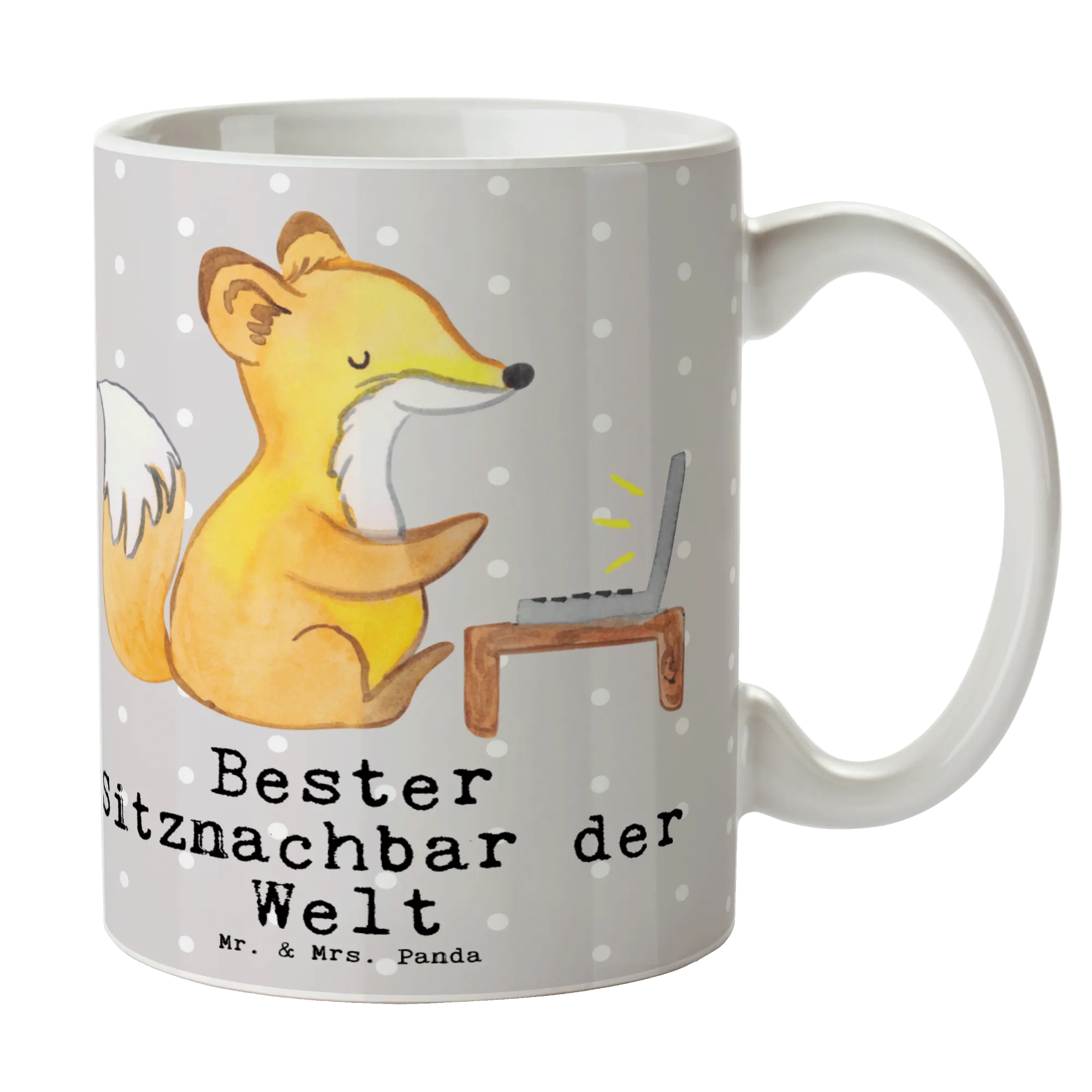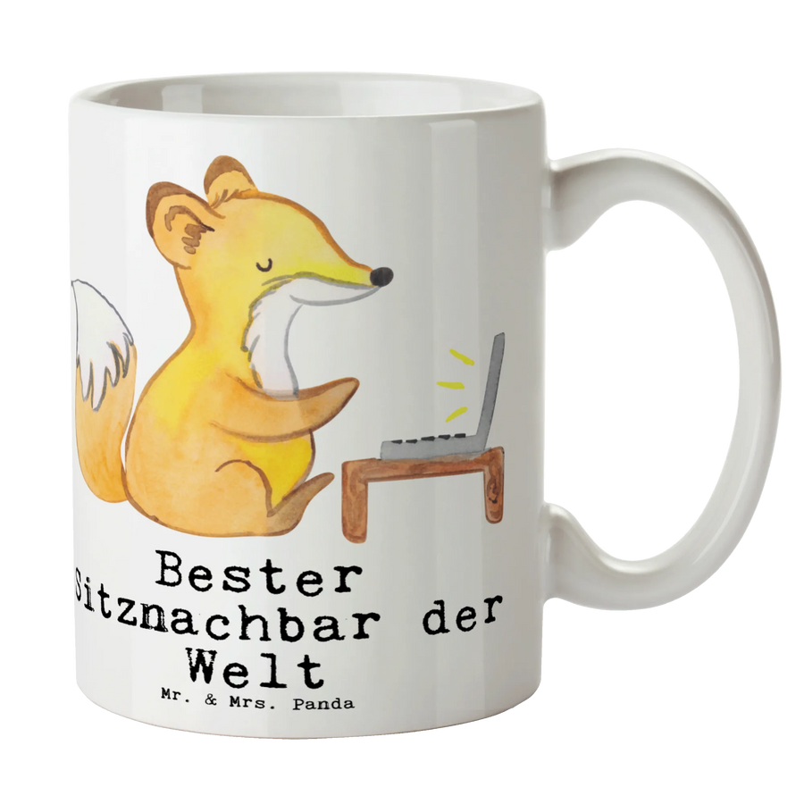 Die Fuchs Tasse "Bester Sitznachbar der Welt" von Mr. & Mrs. Panda ist das perfekte Geschenk für jeden, der in Universität, Hochschule oder im Büro einen besonderen Sitznachbar hat. Diese bezaubernde Tasse aus hochwertiger Keramik zeigt einen süßen, konzentrierten Fuchs, der an einer Schreibmaschine tippt.