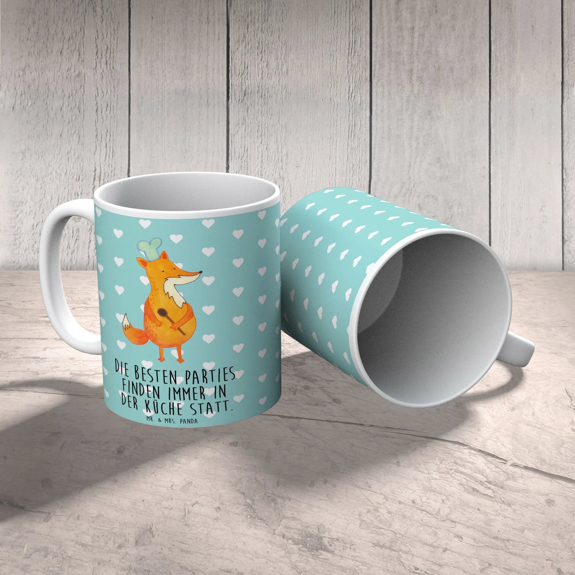 Tasse Fuchs Koch - mit Spruch - Keramik - Türkis Pastell
